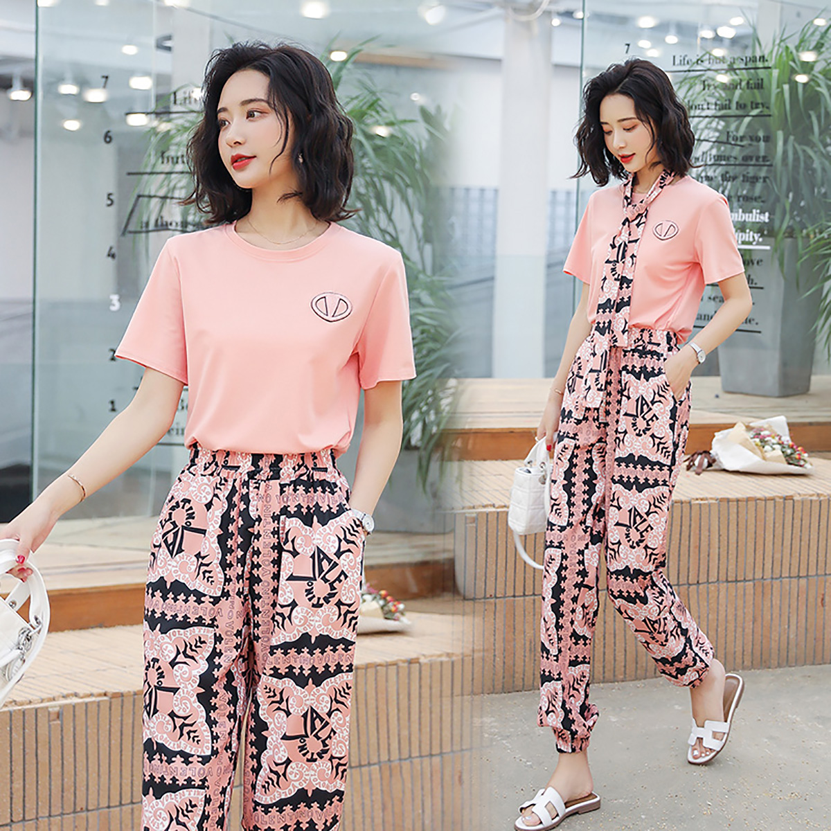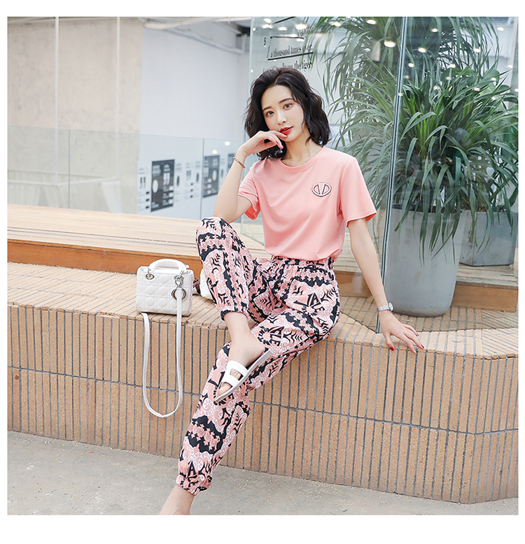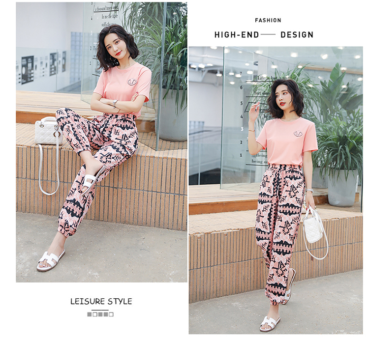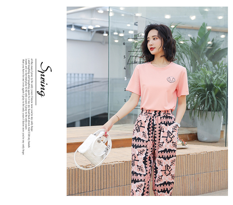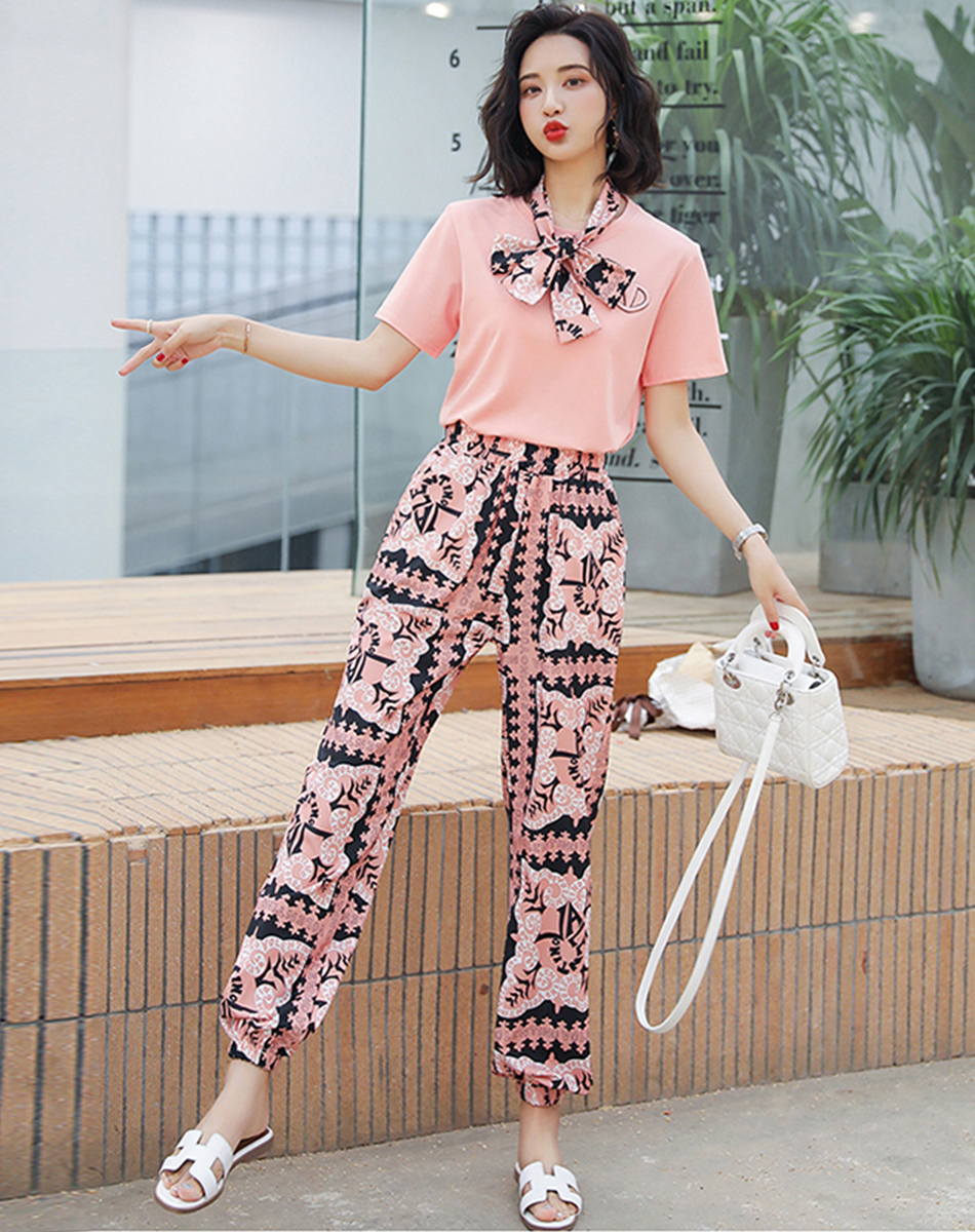 OLrain欧芮儿甜美约会必备粉色上衣裤子套装两件套