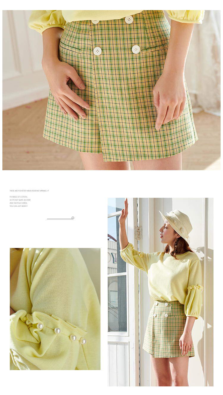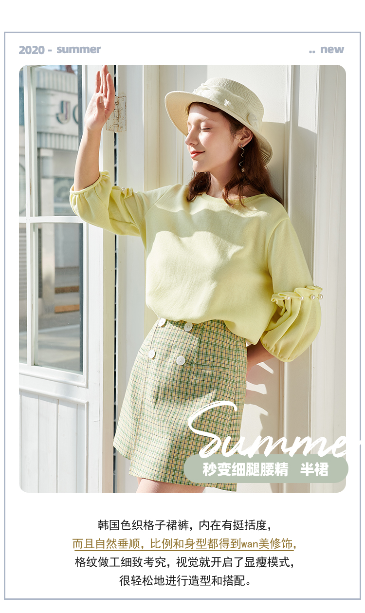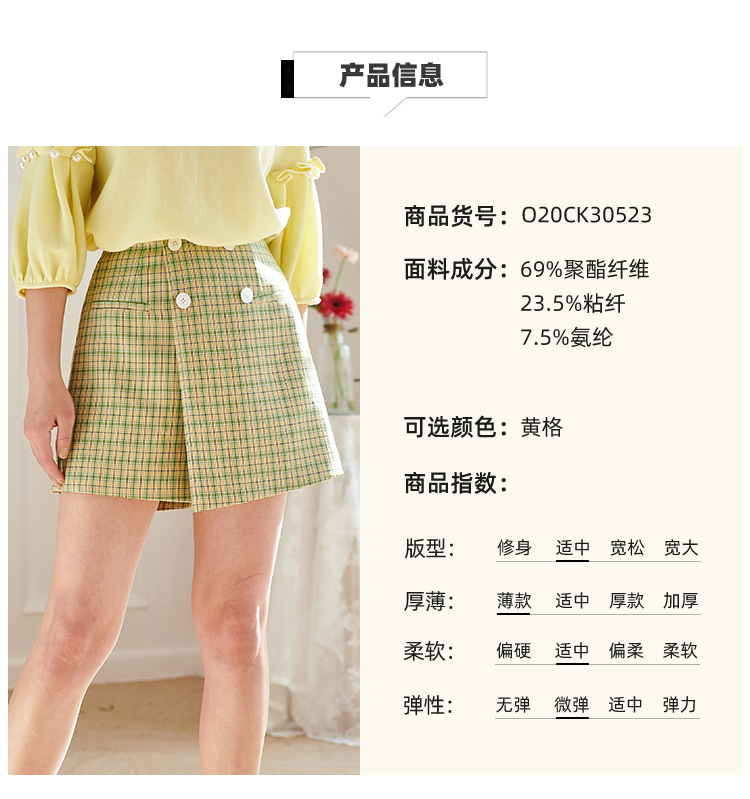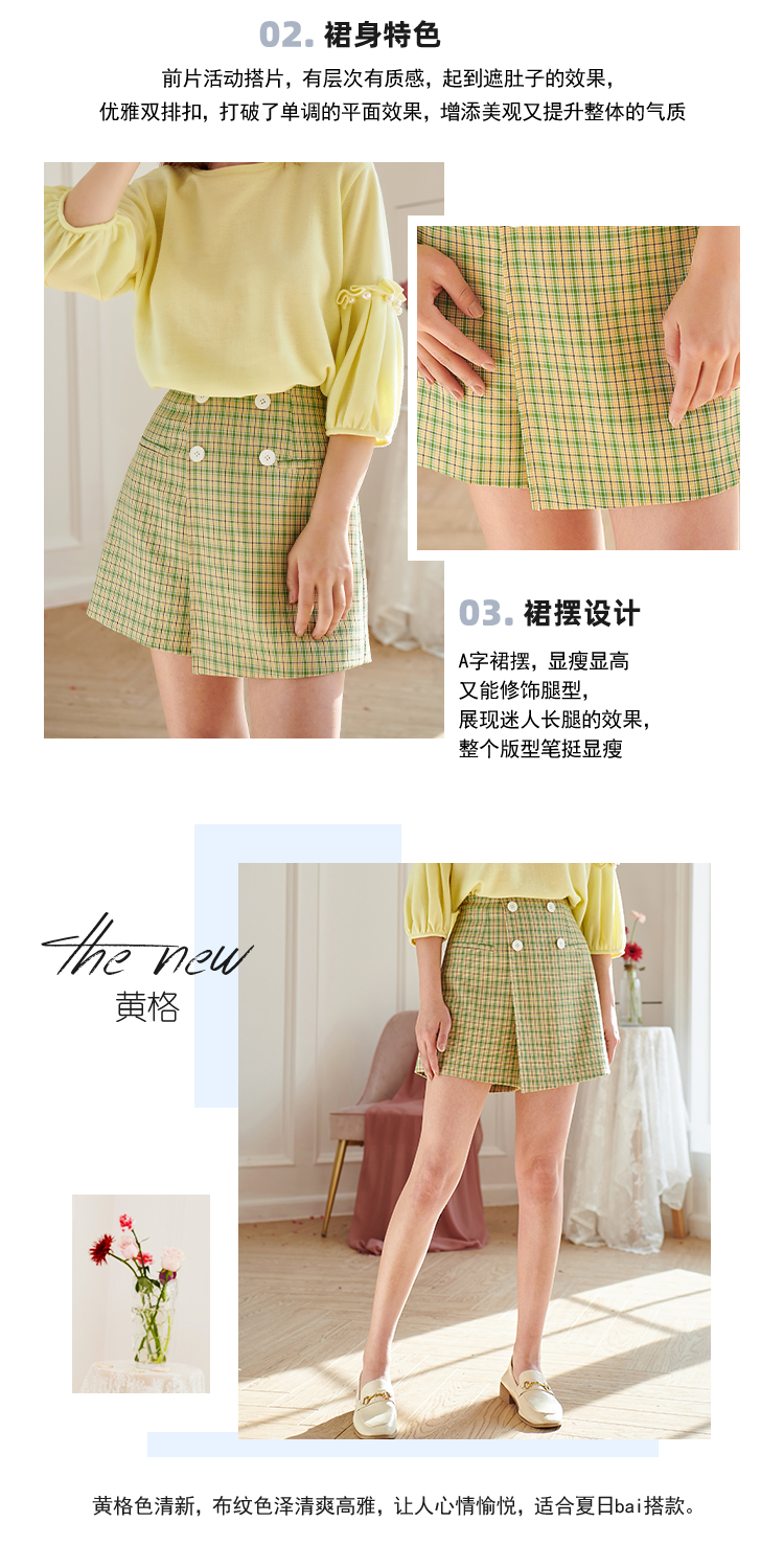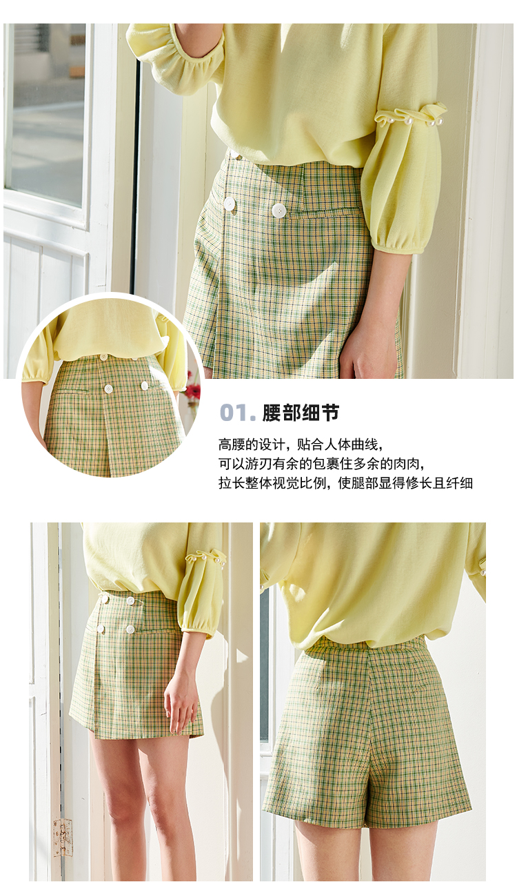 欧芮儿夏装新款高腰显瘦格子休闲短裙裤女宽松不规则时尚百搭