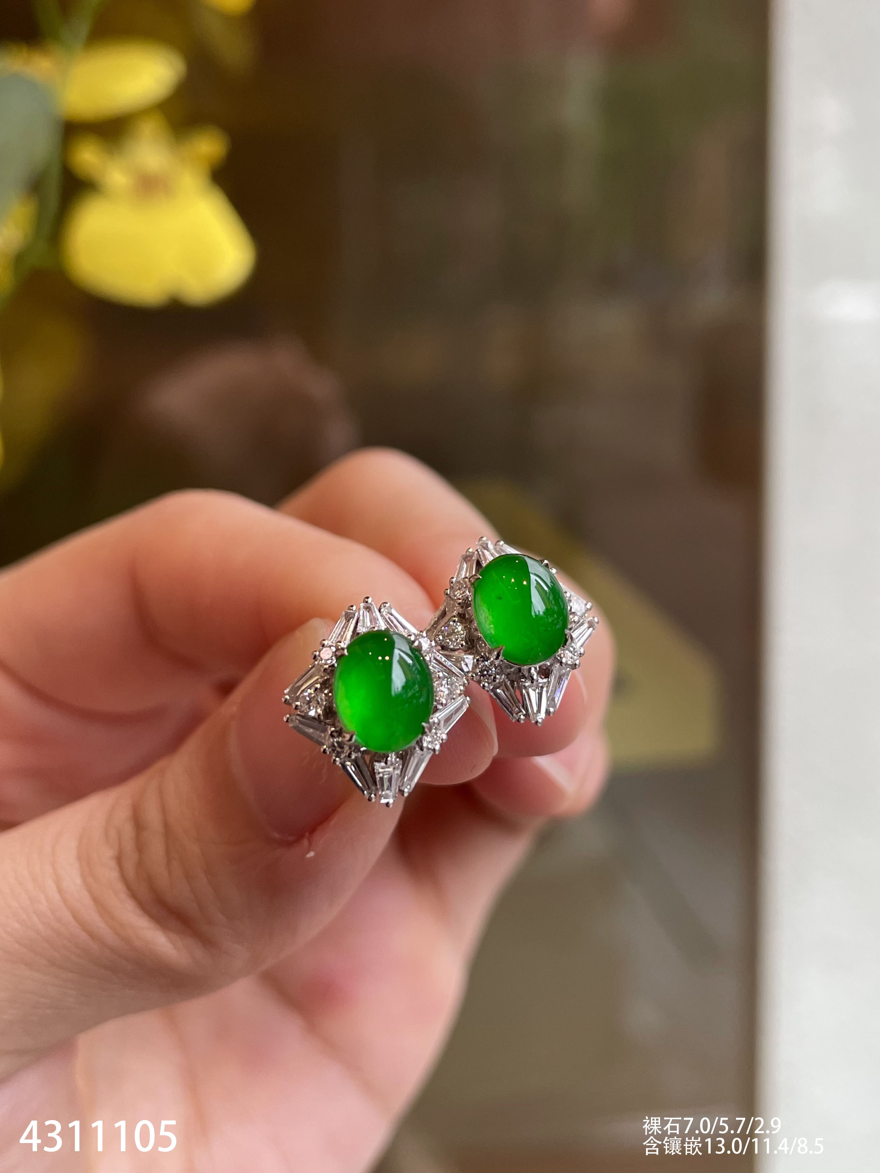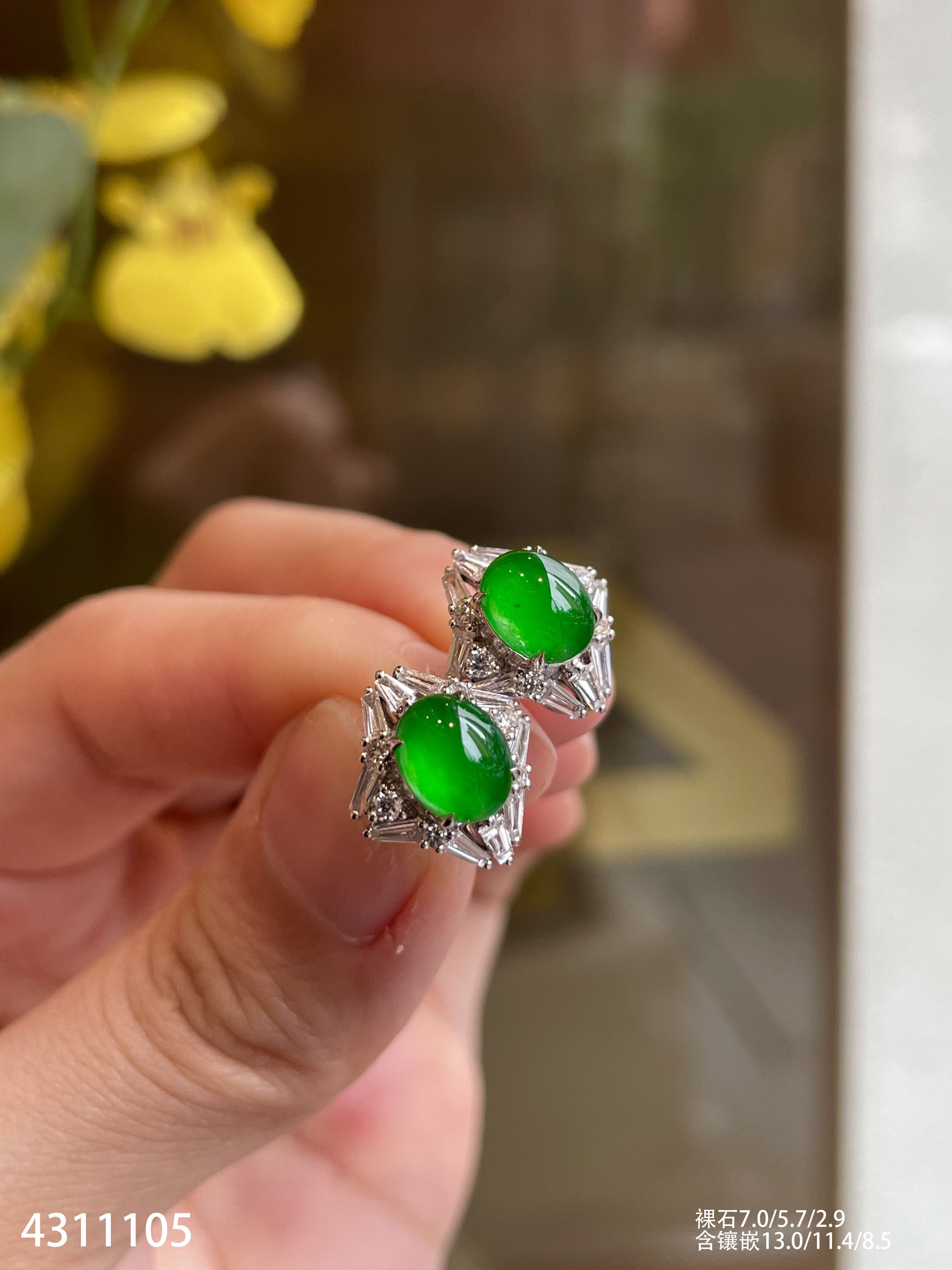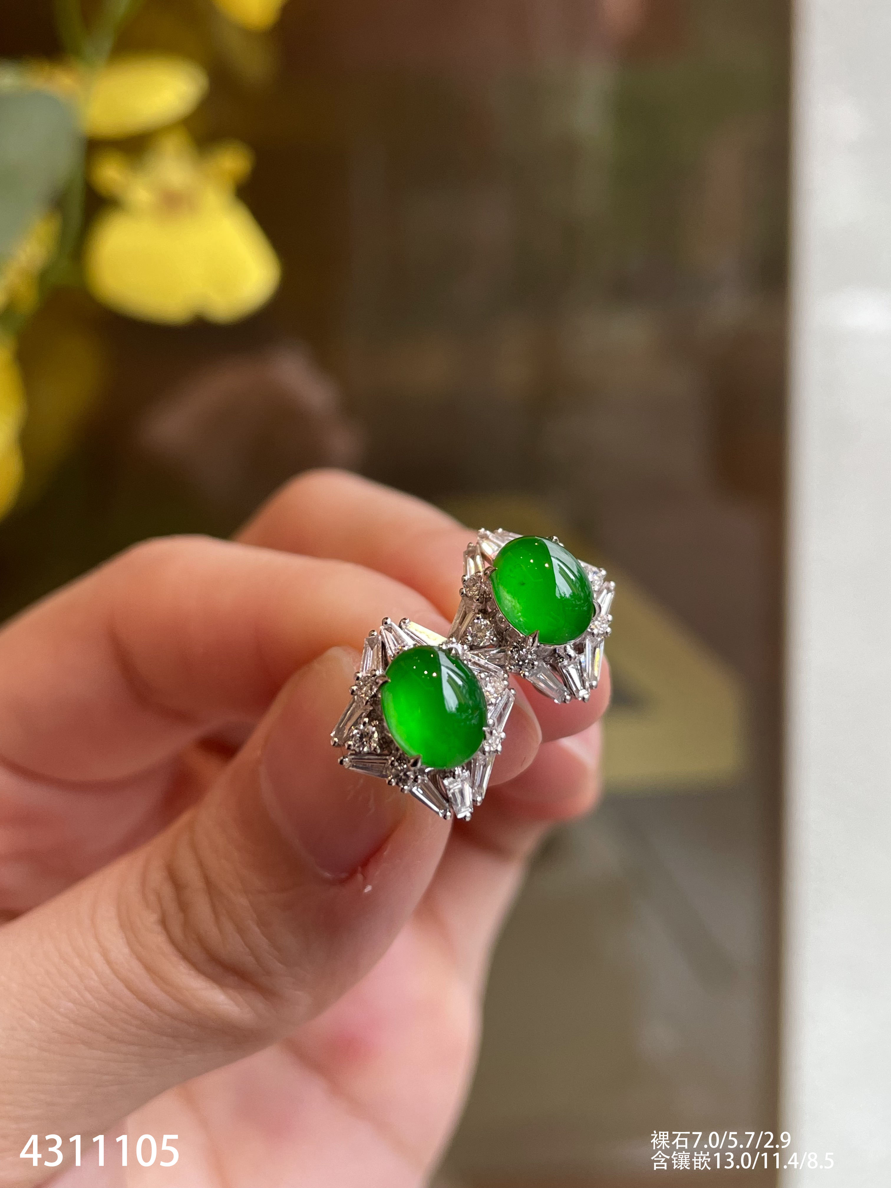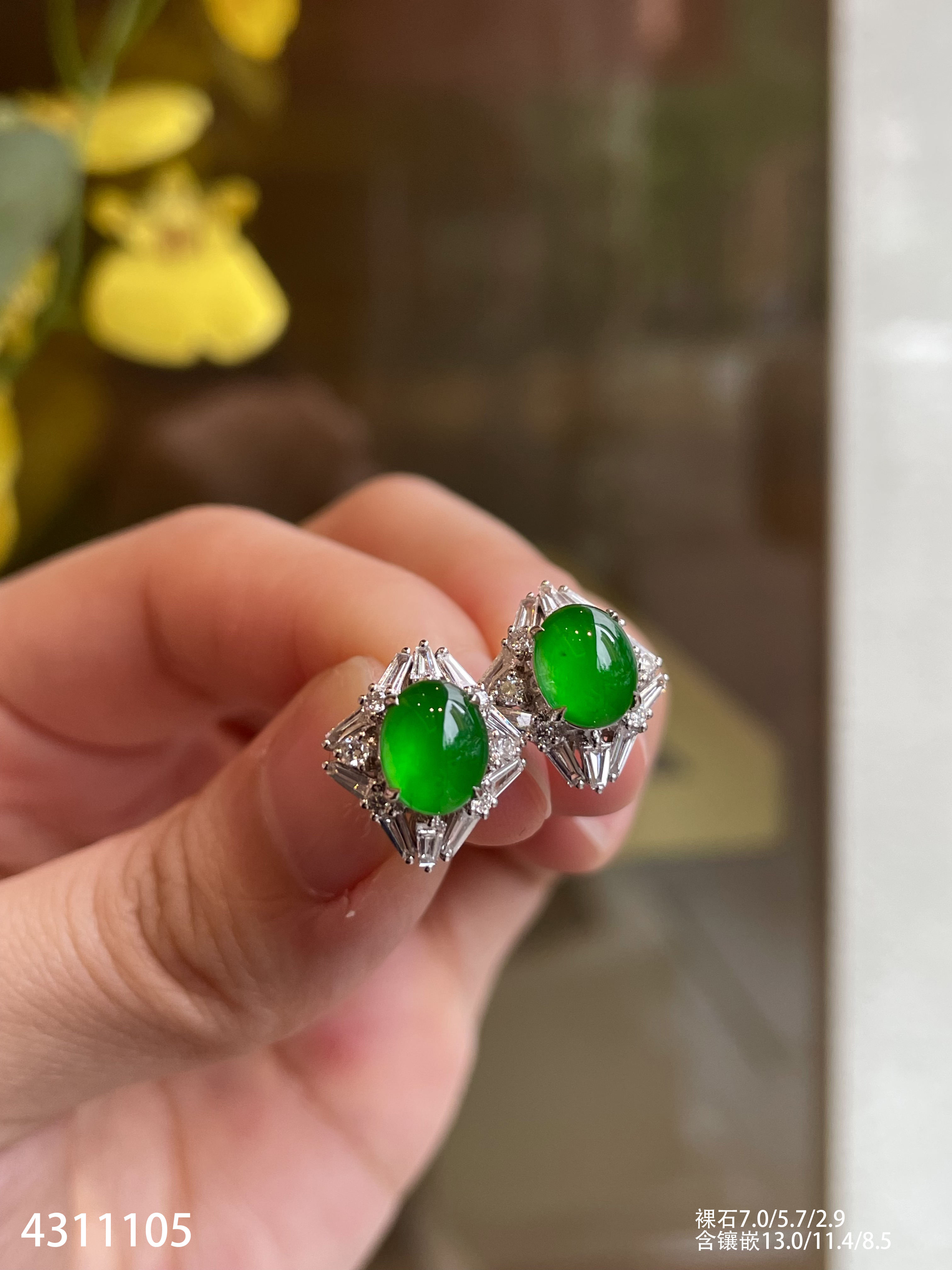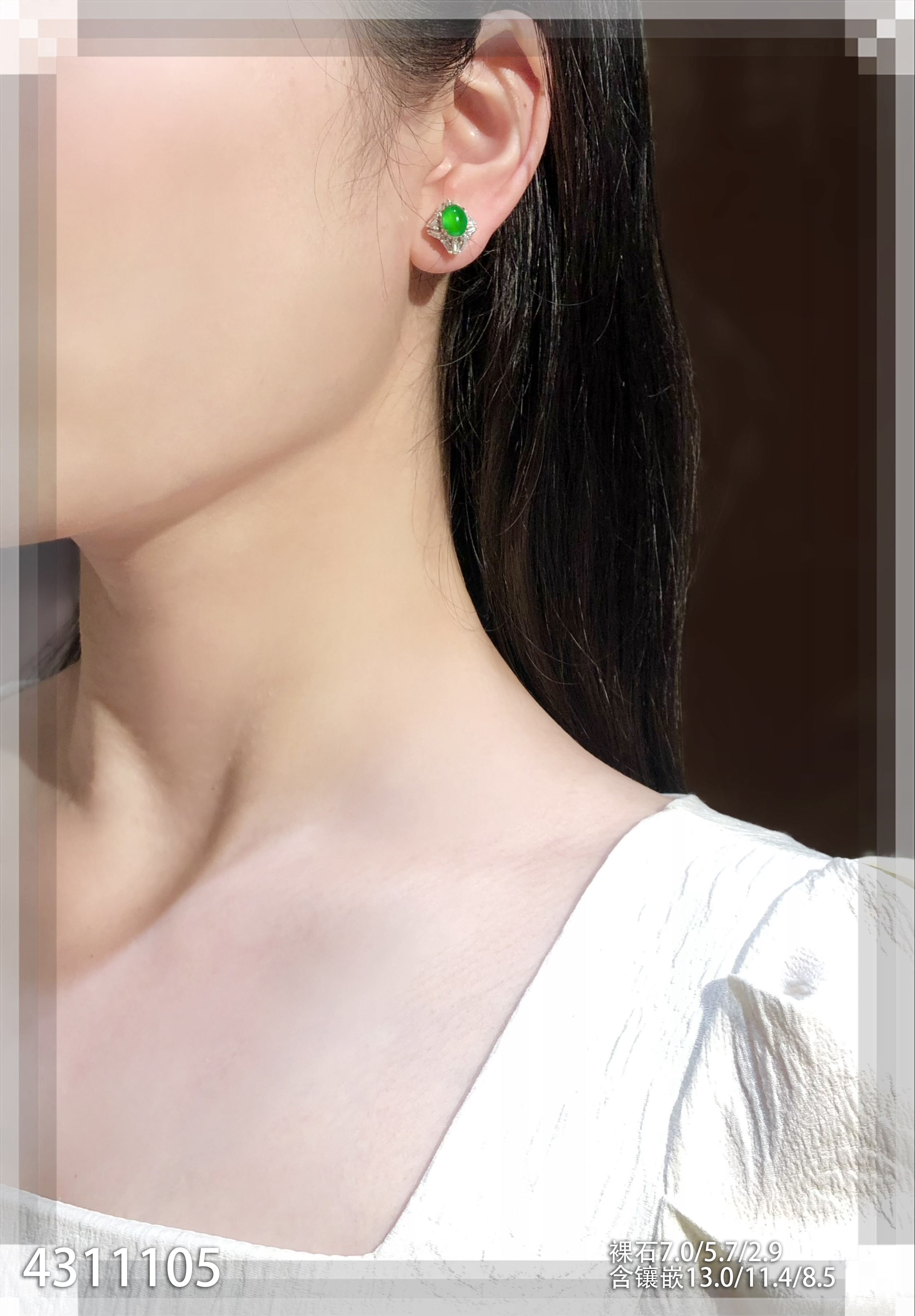 老坑玻璃种黄阳色调绿蛋耳钉 99999【4311105】