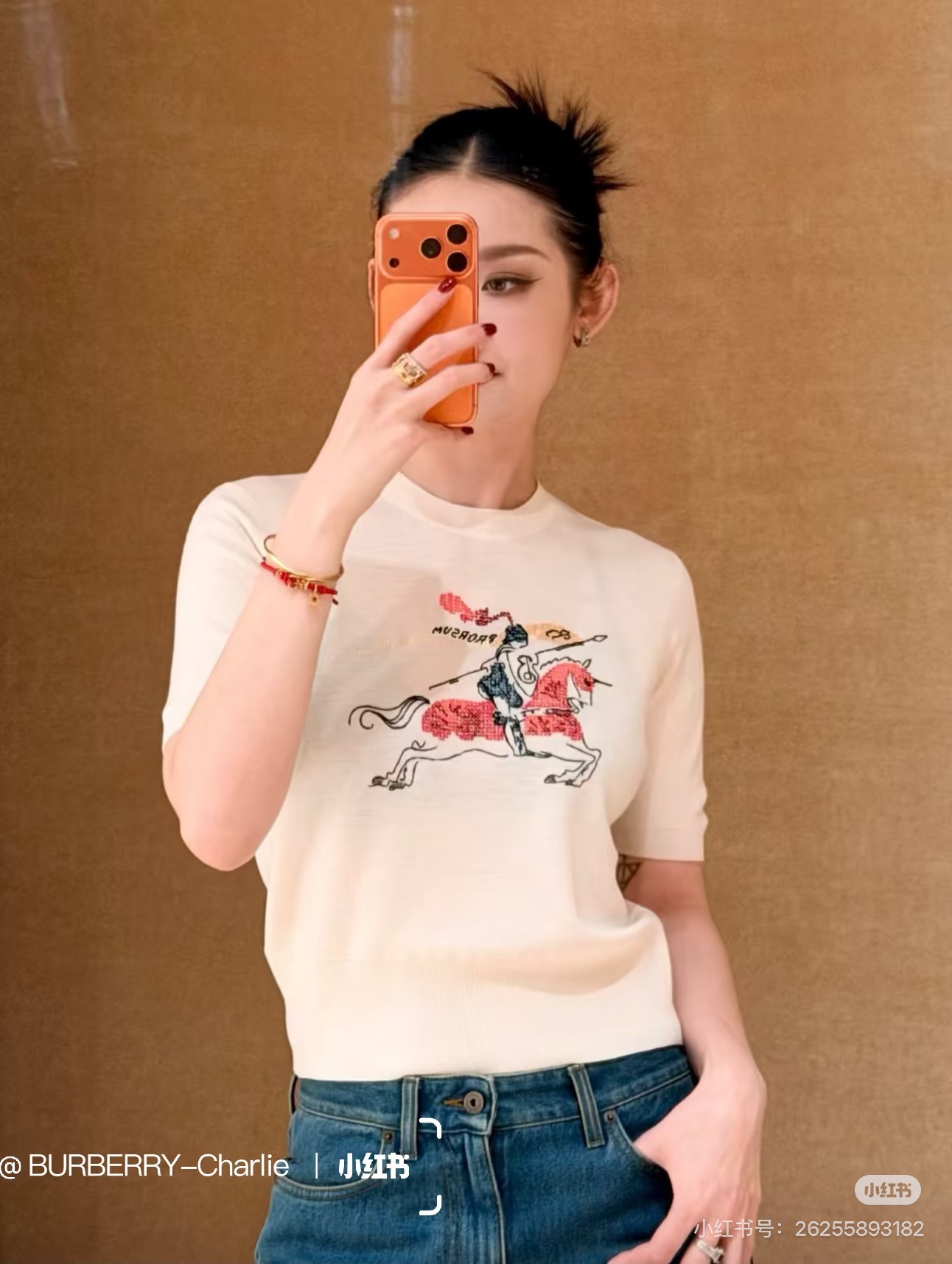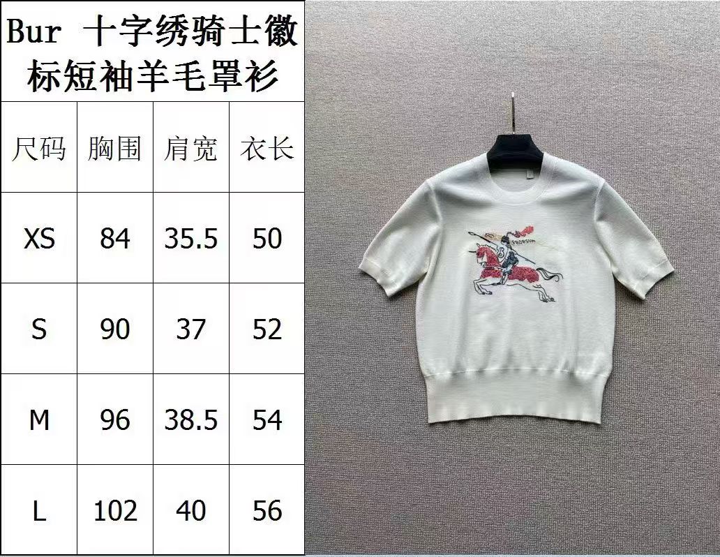 GW新上架1w+,柜里也刚到,bur十字绣骑士徽标短袖羊毛罩衫,100% 80支精纺羊毛,少量,手慢无~
