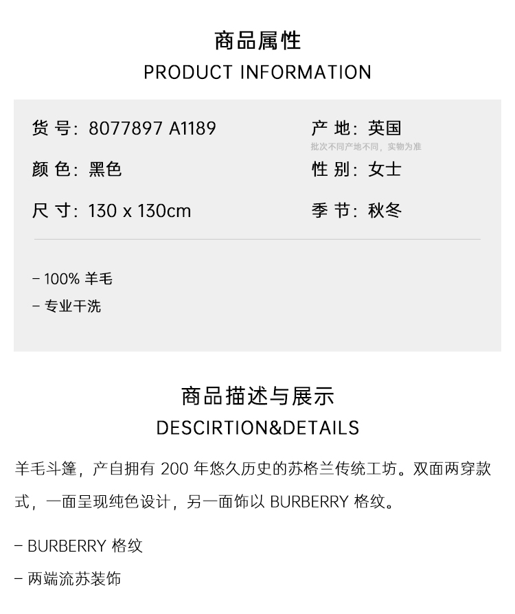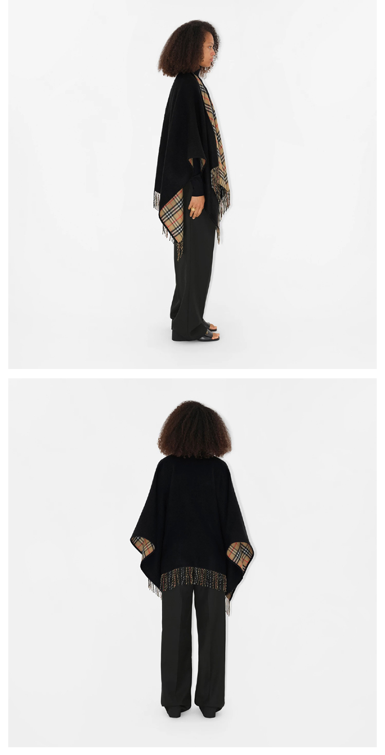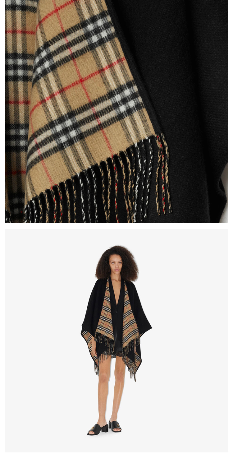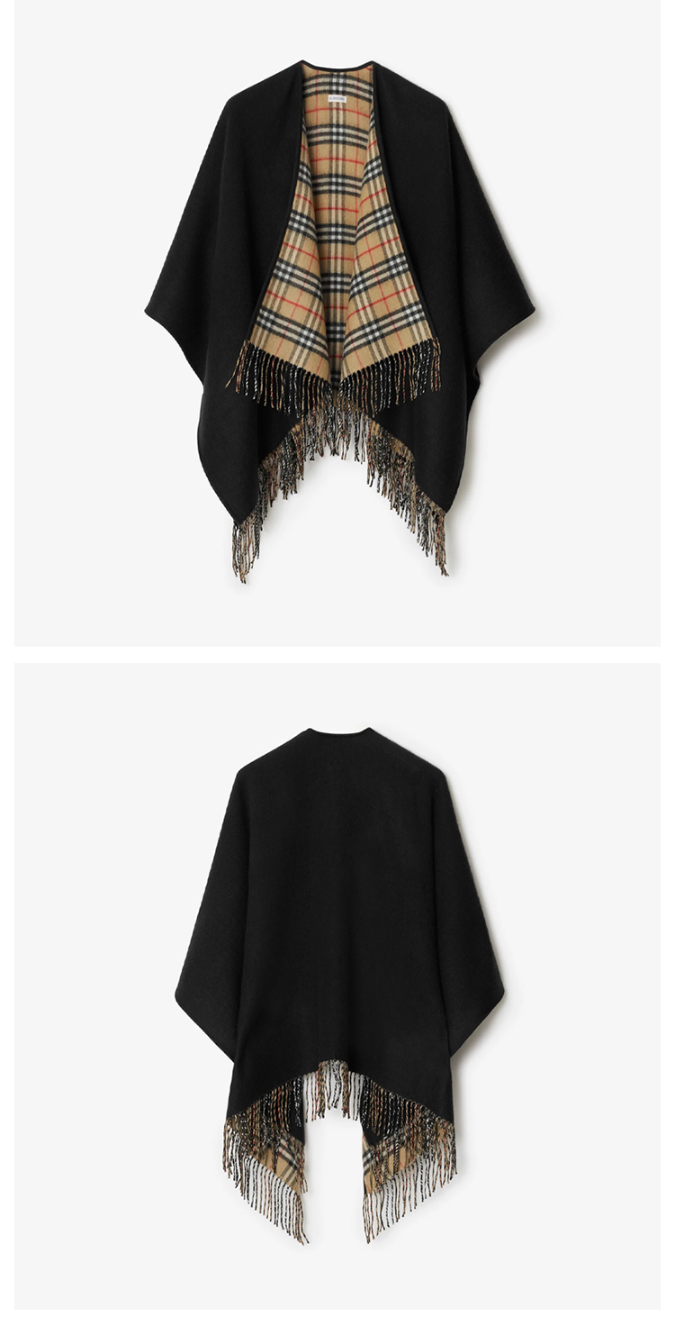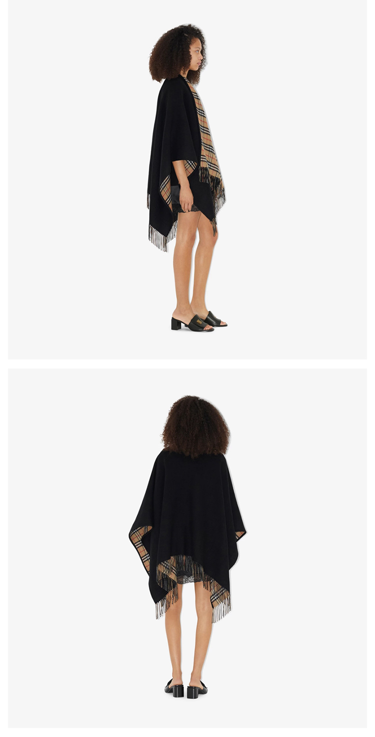 【一】BURBERRY 巴宝莉 女士双面两穿格纹羊毛披肩 黑色 8077897 A1189