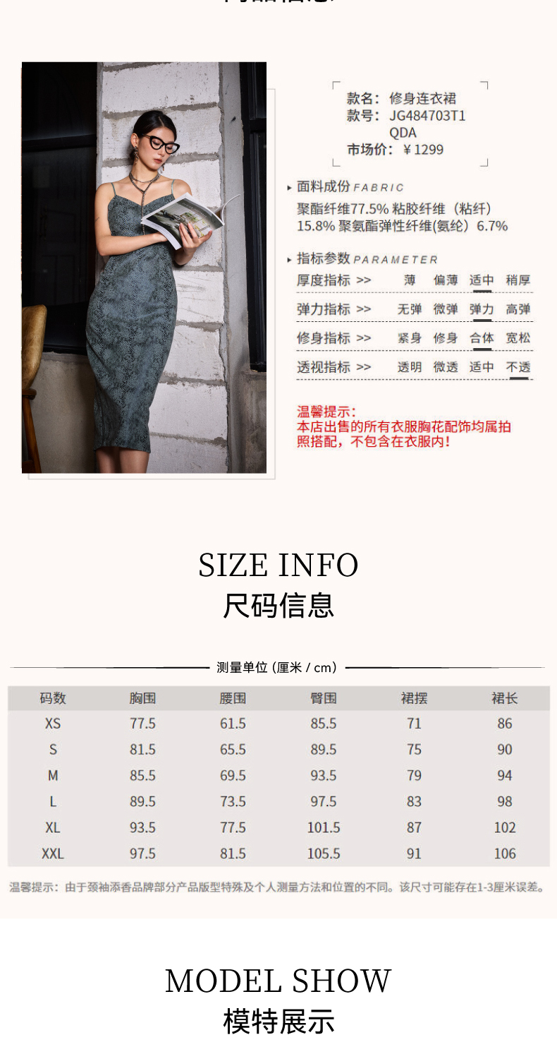 JG484703T1QD颈袖添香新款女时尚收腰印花流行修身气质职场女士连衣裙JG484703T2QD