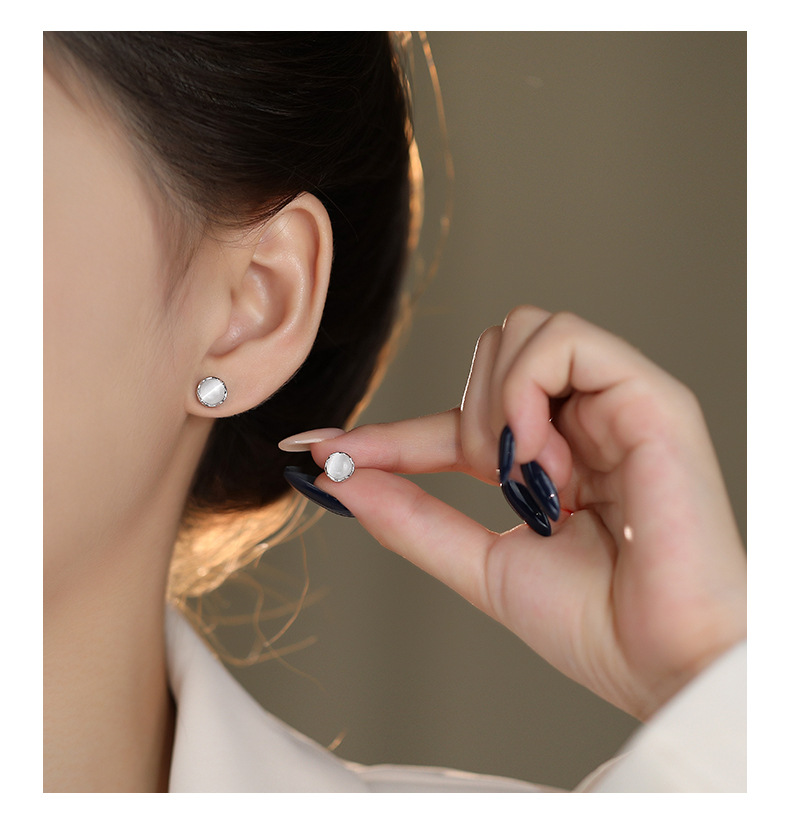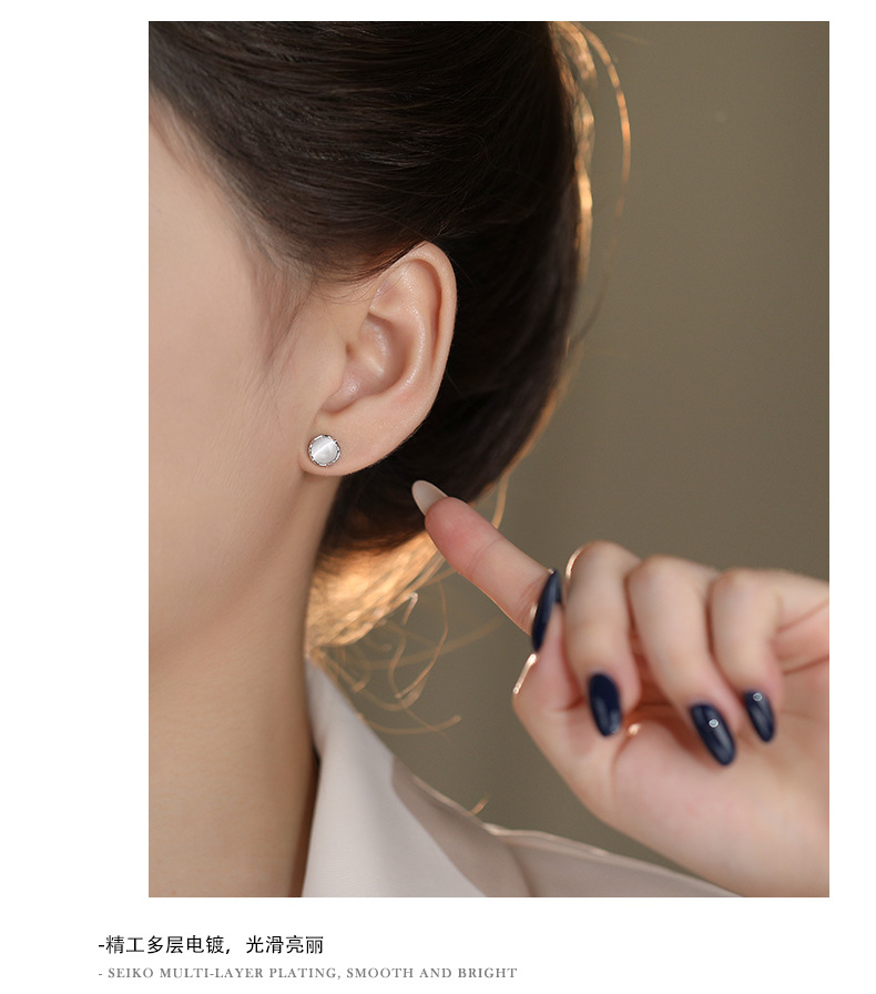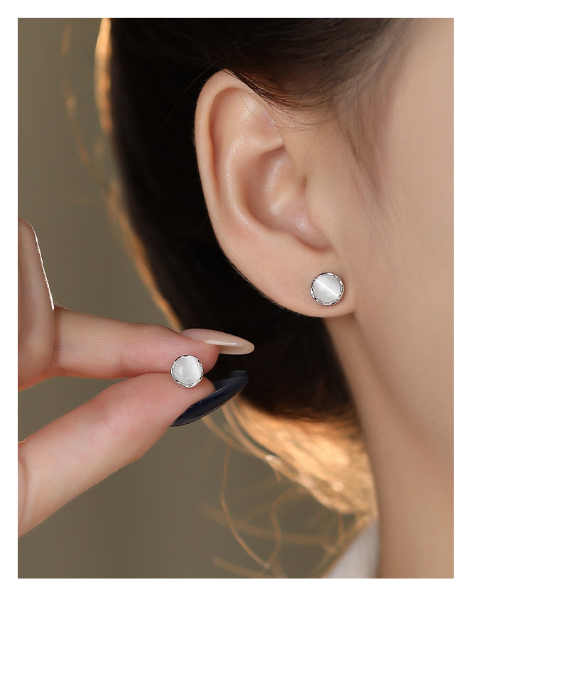 【含烟】S999纯银白猫眼石耳钉【YXS-E5619】