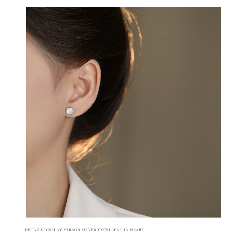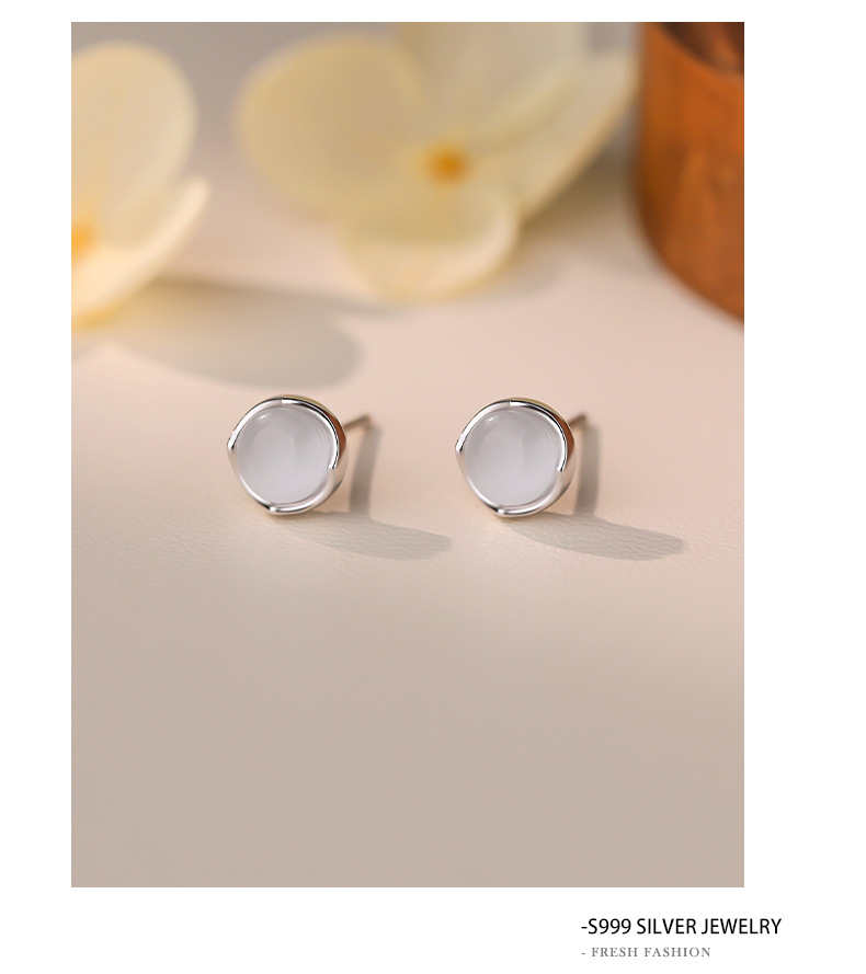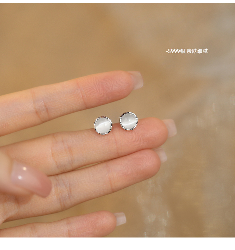 【含烟】S999纯银白猫眼石耳钉【YXS-E5619】 商品图1