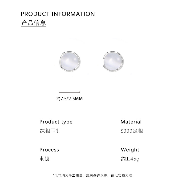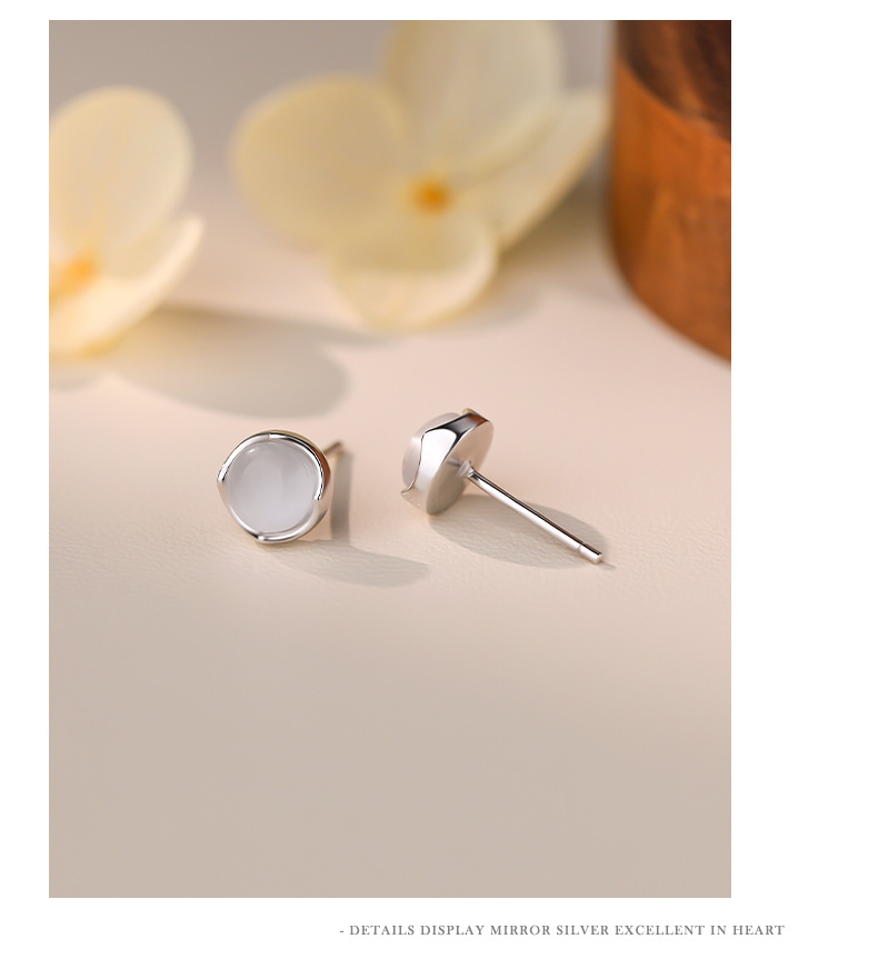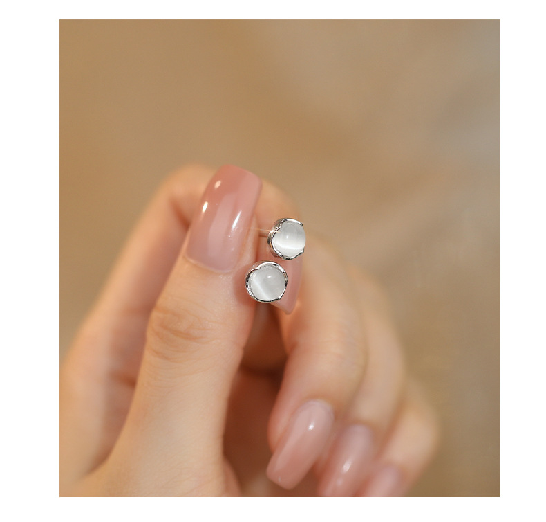 【含烟】S999纯银白猫眼石耳钉【YXS-E5619】 商品图4
