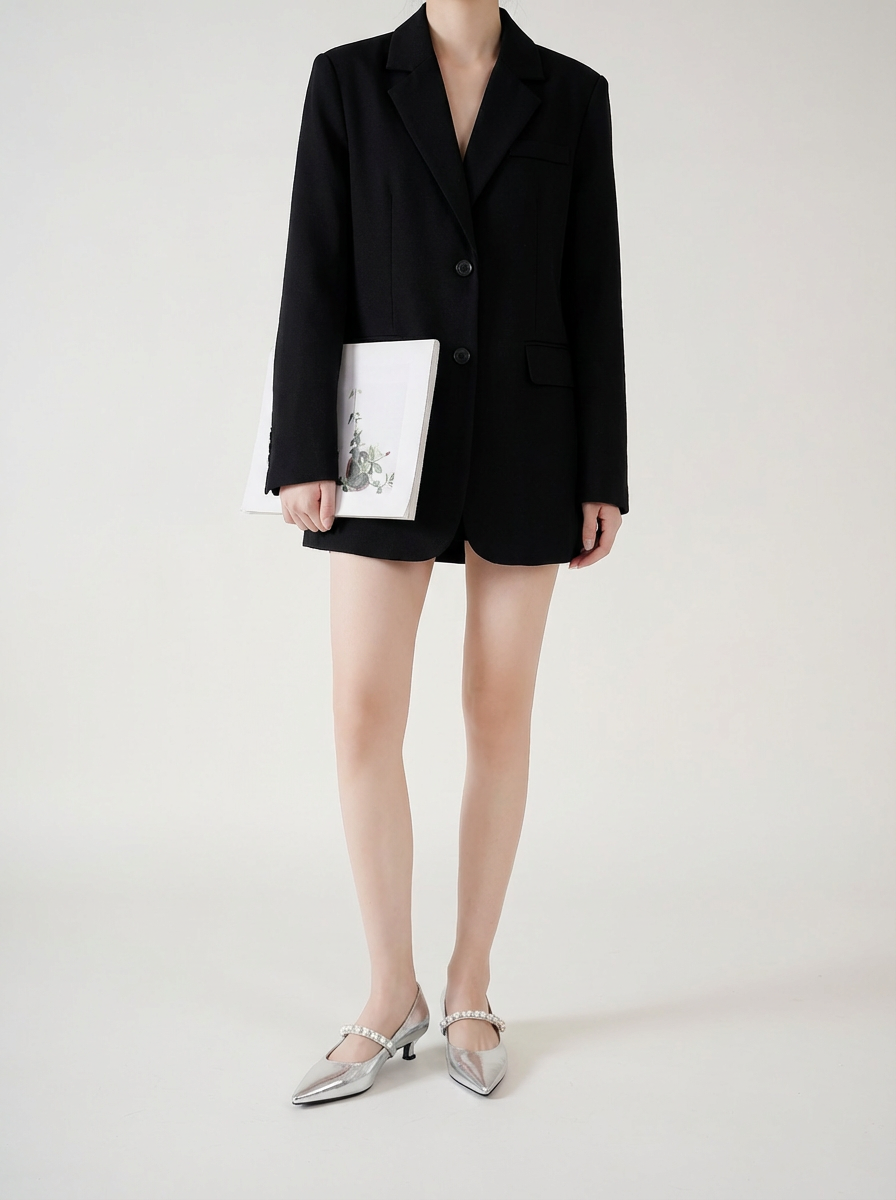 西村名物2025年秋季新款优雅珍珠饰扣小尖头舒适低跟精致浅口单鞋U25CE30341