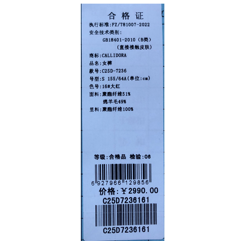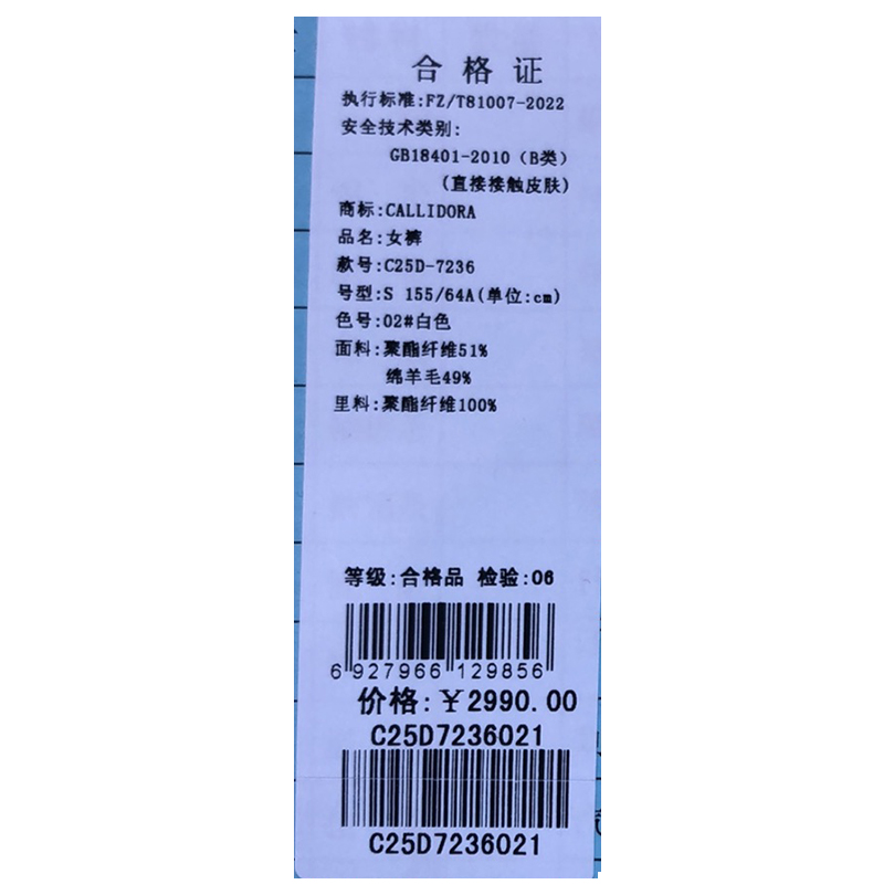 卡莉朵拉长裤C25D7236