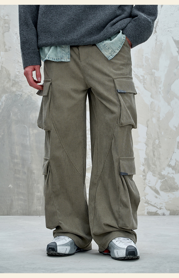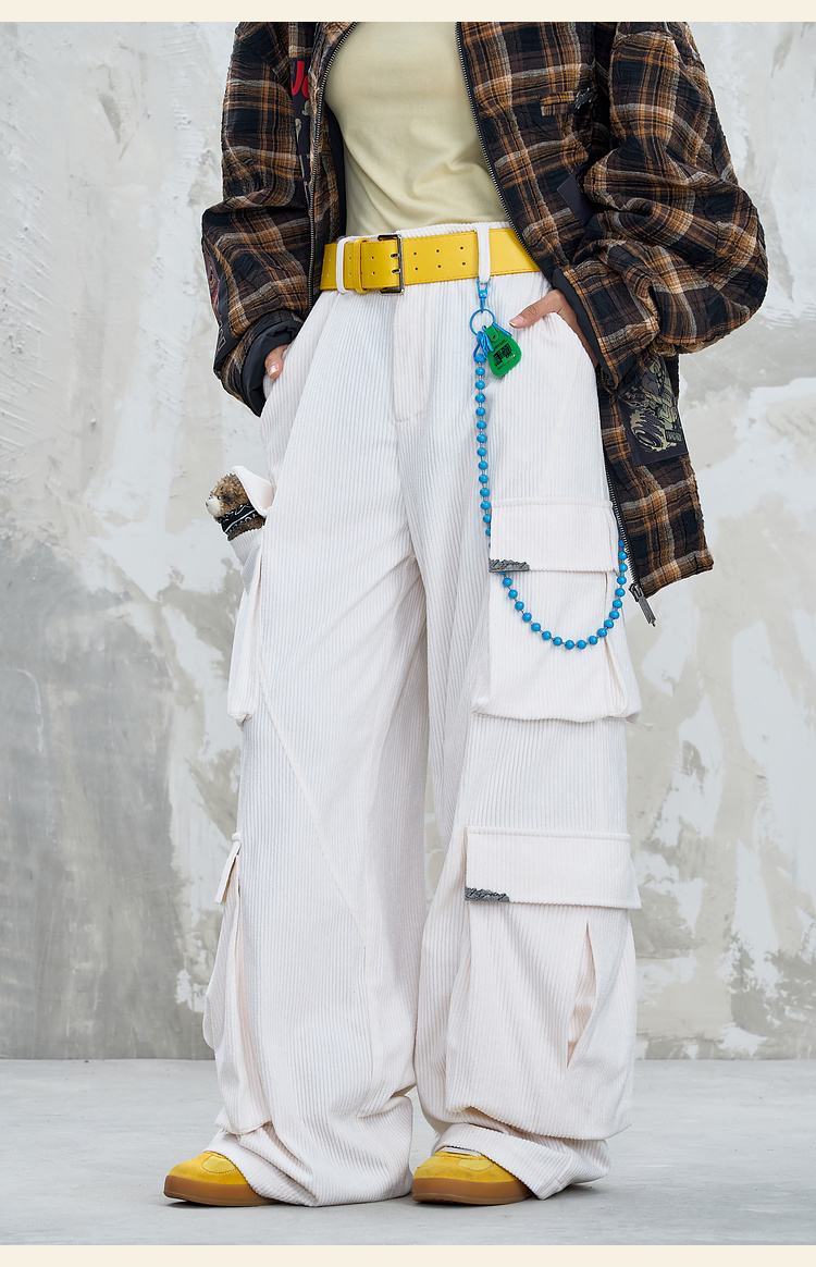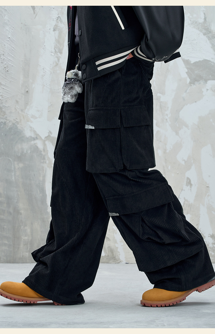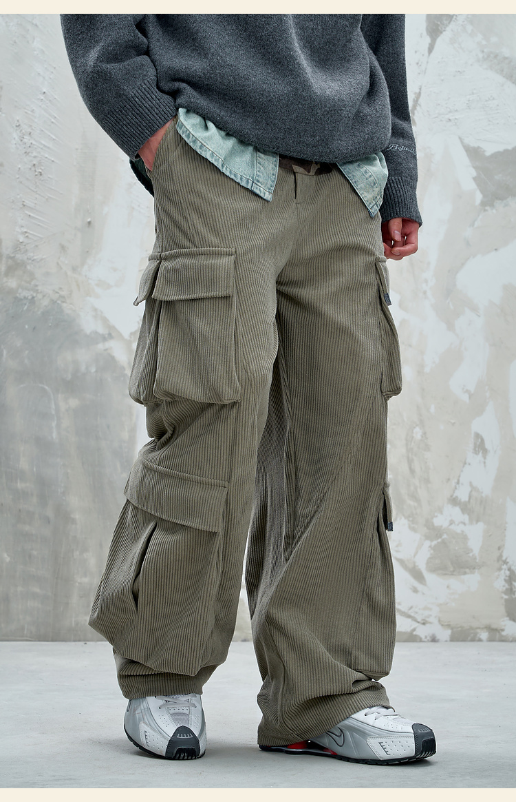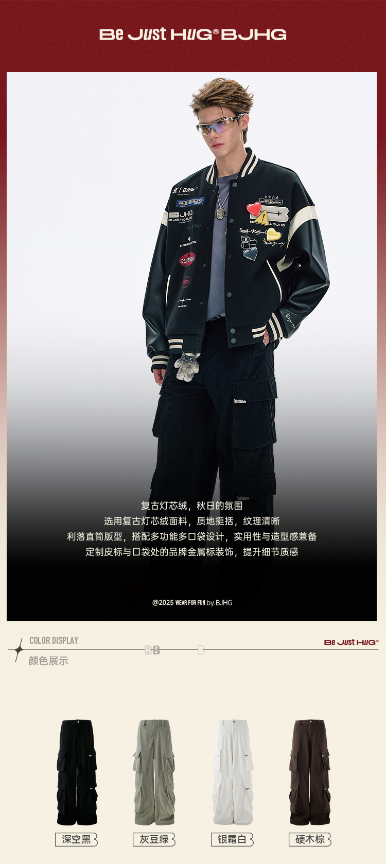 BJHG不计后果灯芯绒休闲裤子男款秋季潮牌美式工装设计感直筒裤女