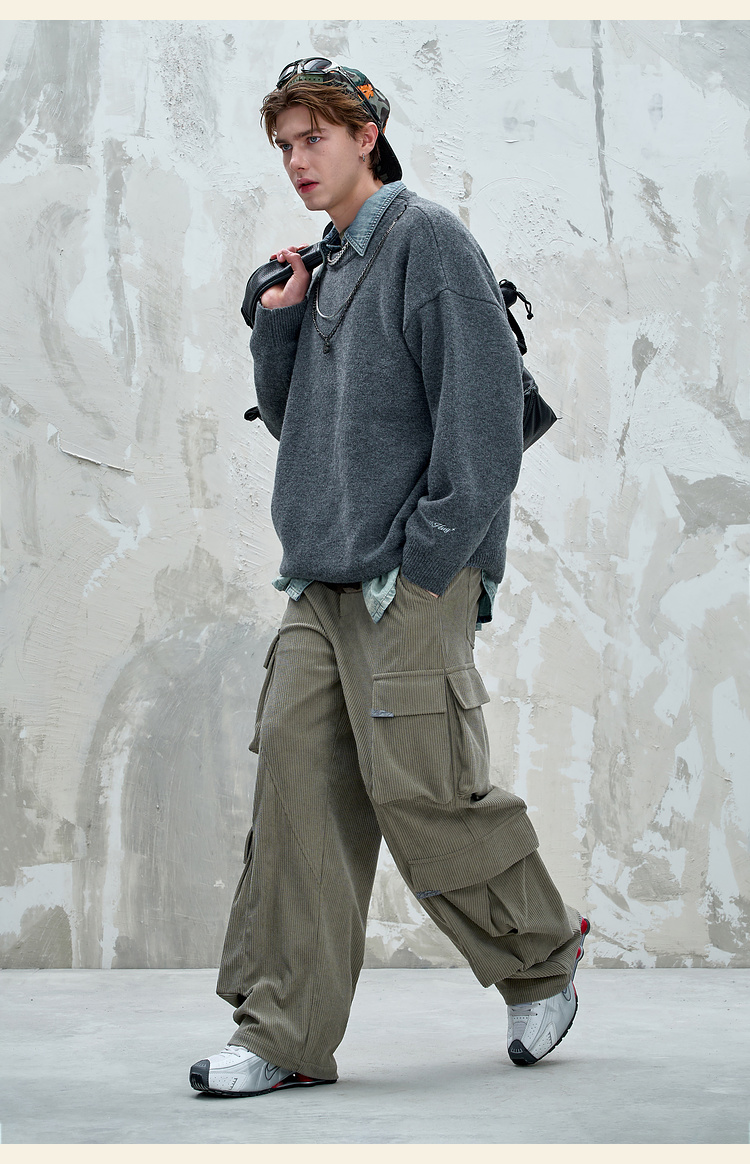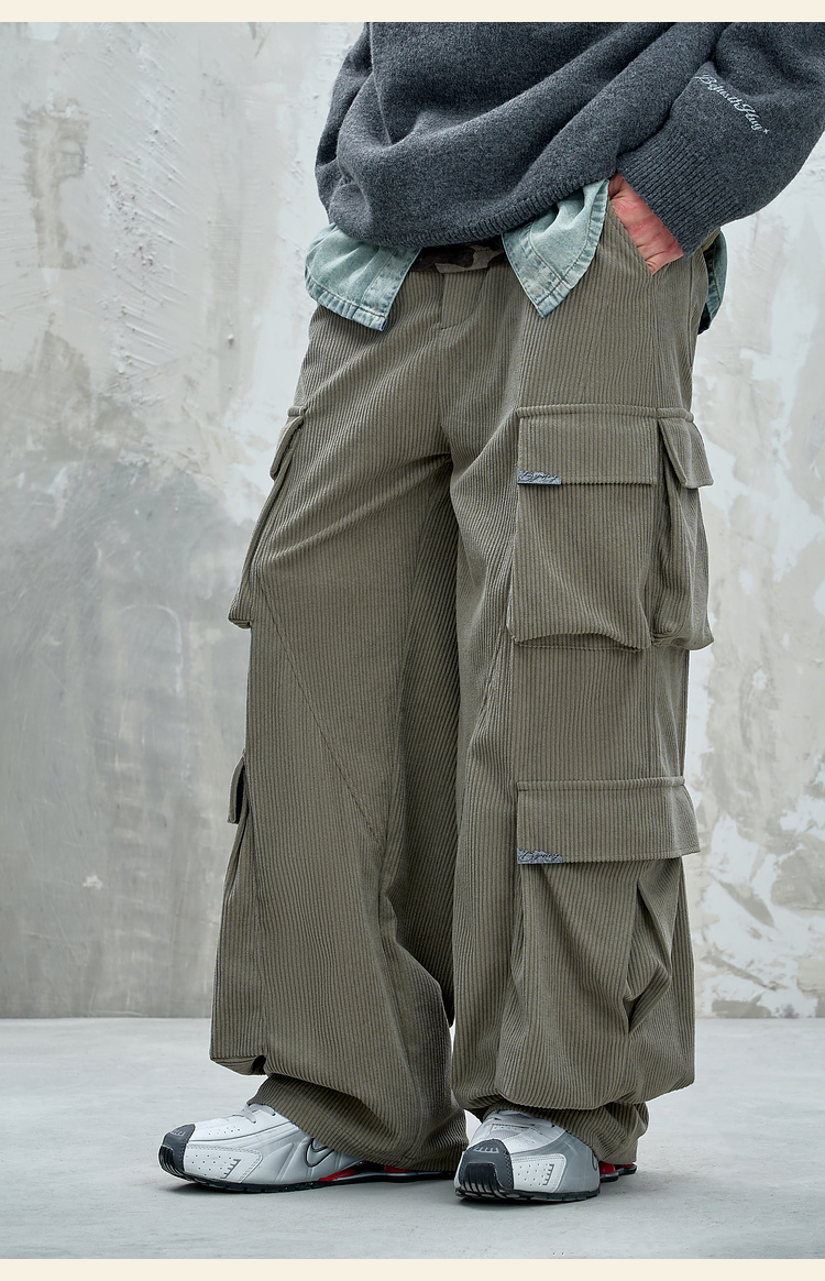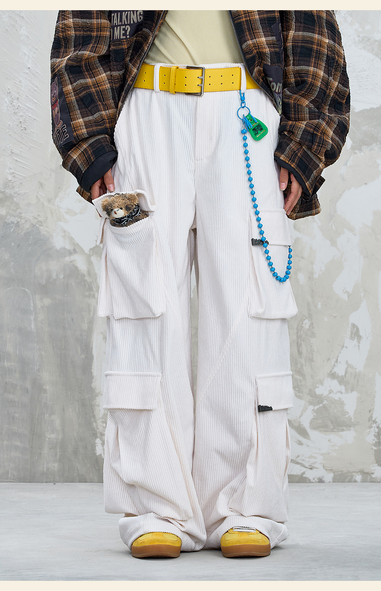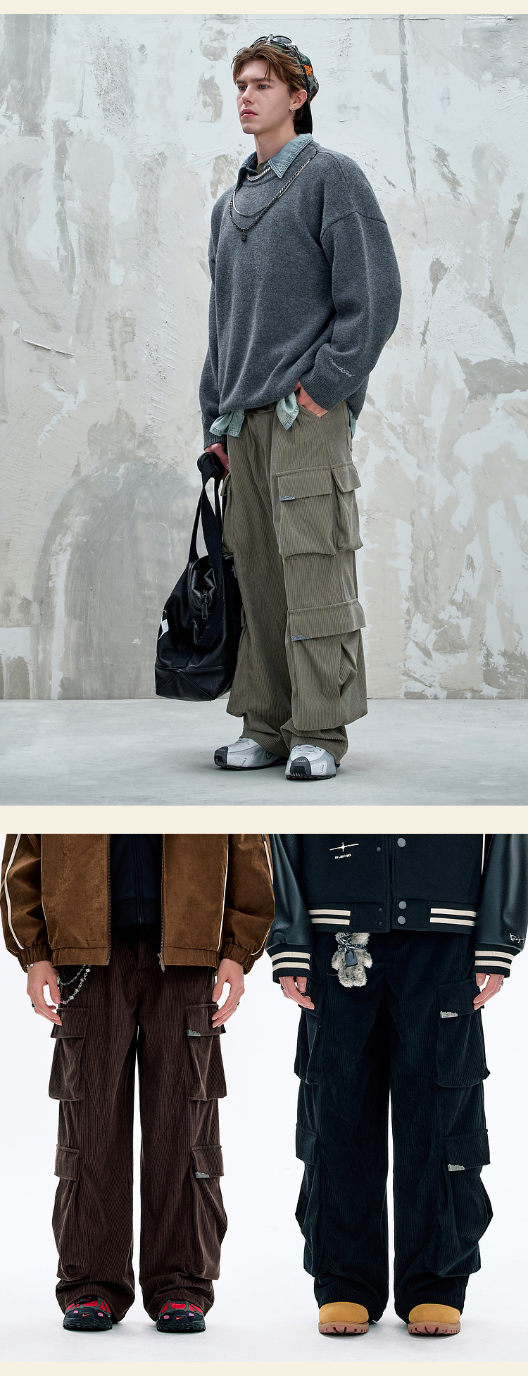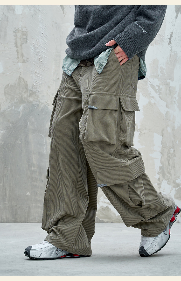 BJHG不计后果灯芯绒休闲裤子男款秋季潮牌美式工装设计感直筒裤女
