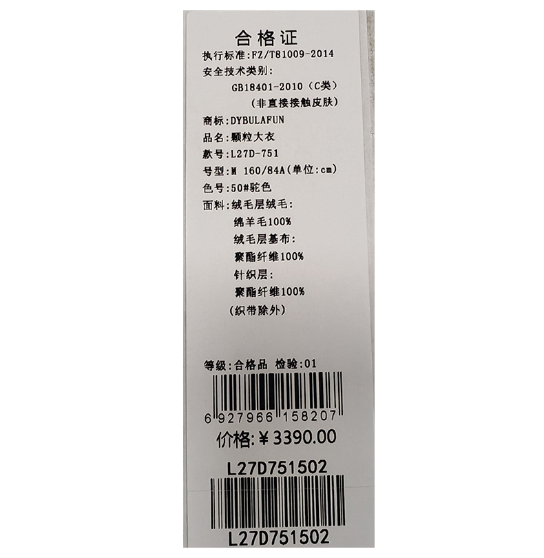 戴布拉芬呢大衣L27D751