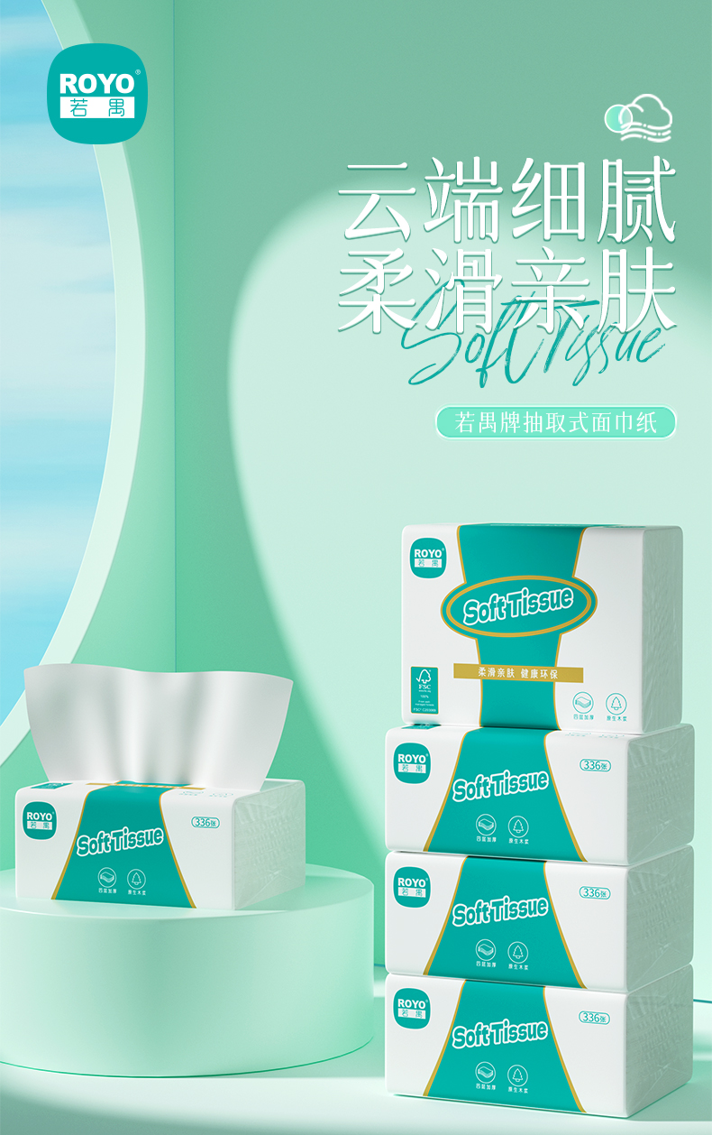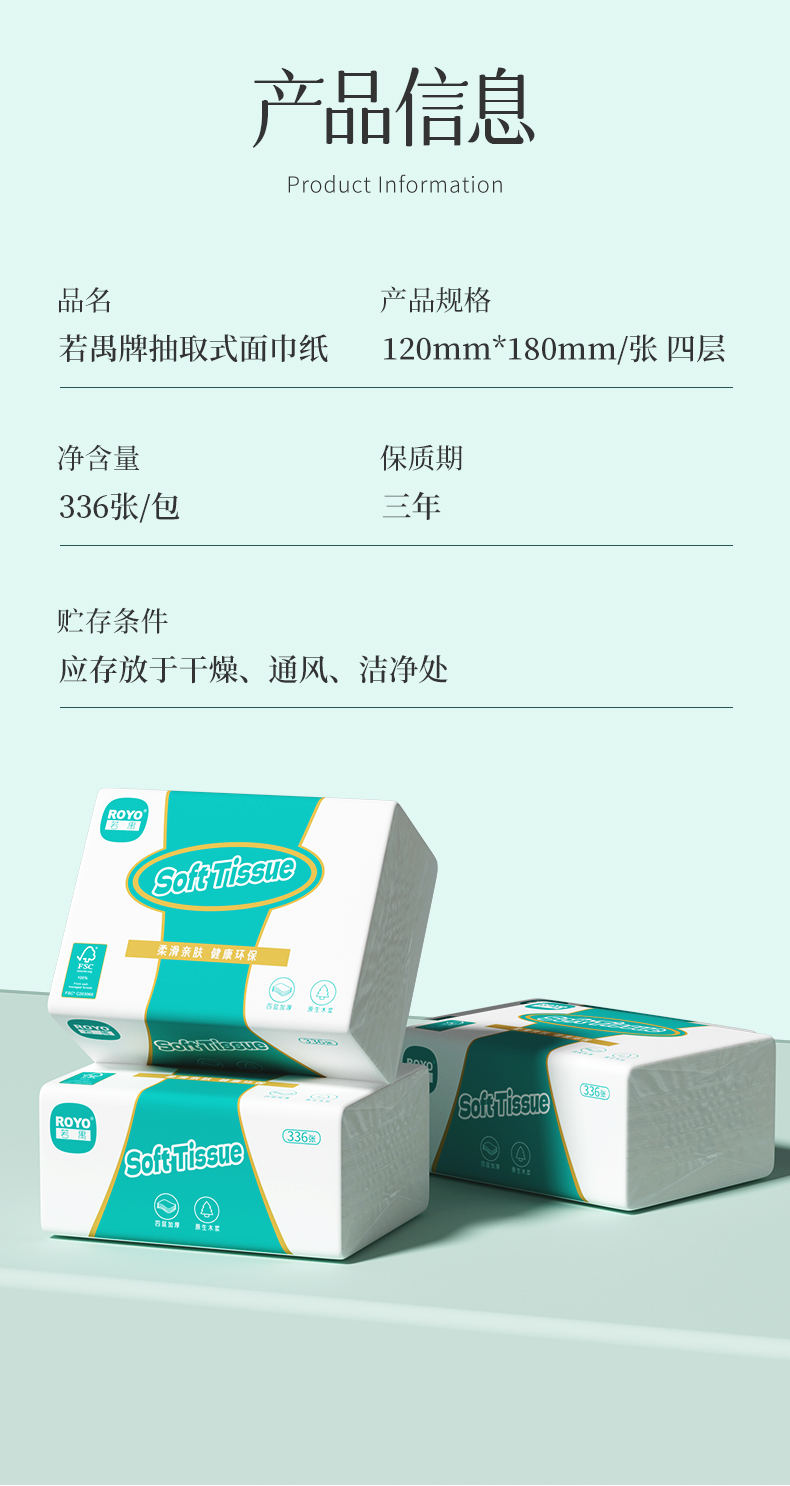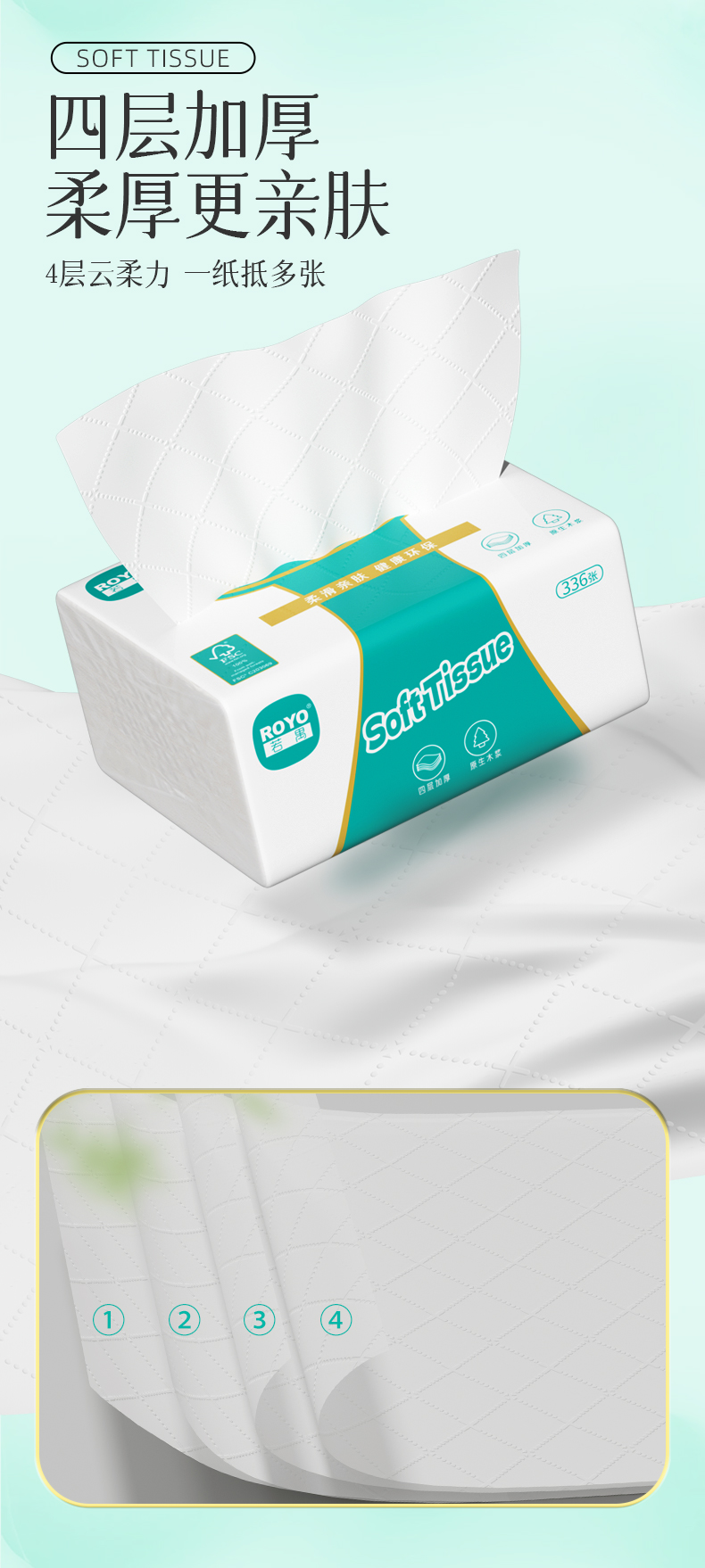 若禺抽纸4层336张软抽纸餐巾纸原生木浆卫生纸抽纸1件88包R026-B88