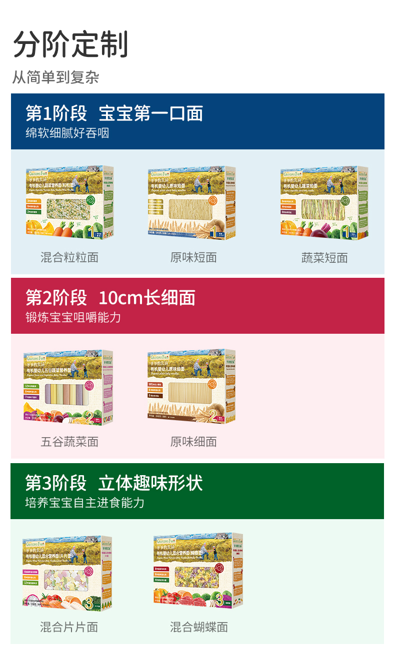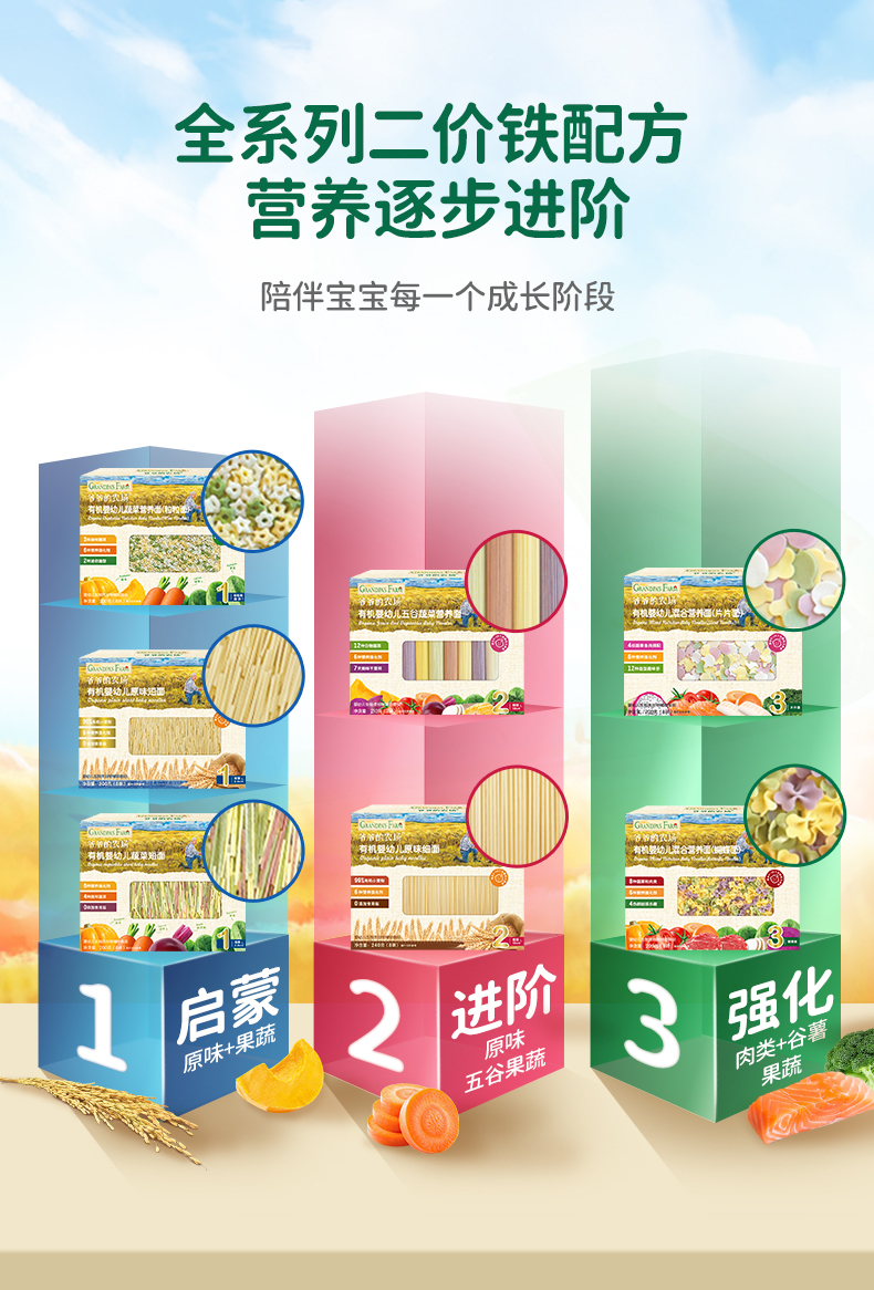 【云优选】6月+ | 爷爷的农场宝宝有机高铁面条婴幼儿有机辅食营养儿童细碎面多口味