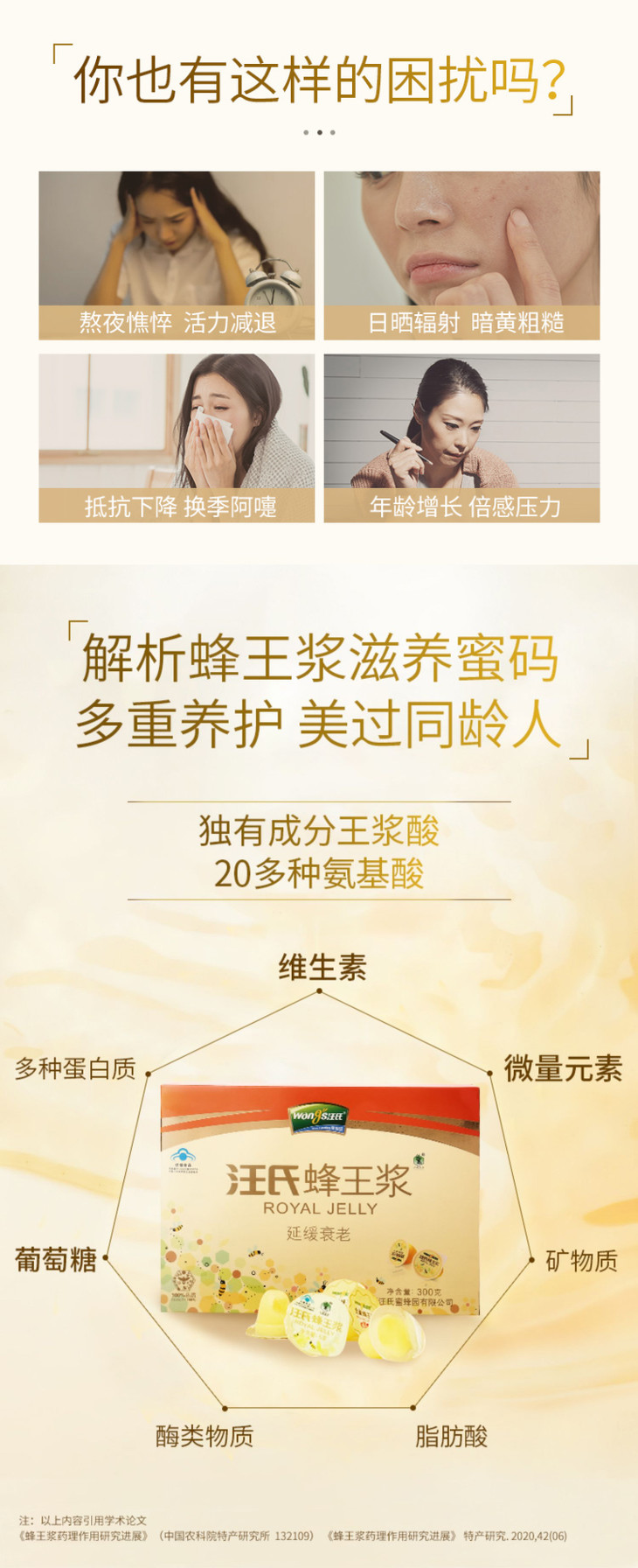 【超值推荐】汪氏甄品蜂王浆蜂皇浆 王浆酸含量≥2.2% 300g/盒(1盒送90g洋槐蜜,2盒送超值福利)