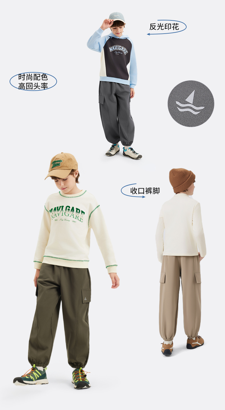 【纳维凯尔】【加绒】【140-175】男童复合摇粒绒百搭工装裤