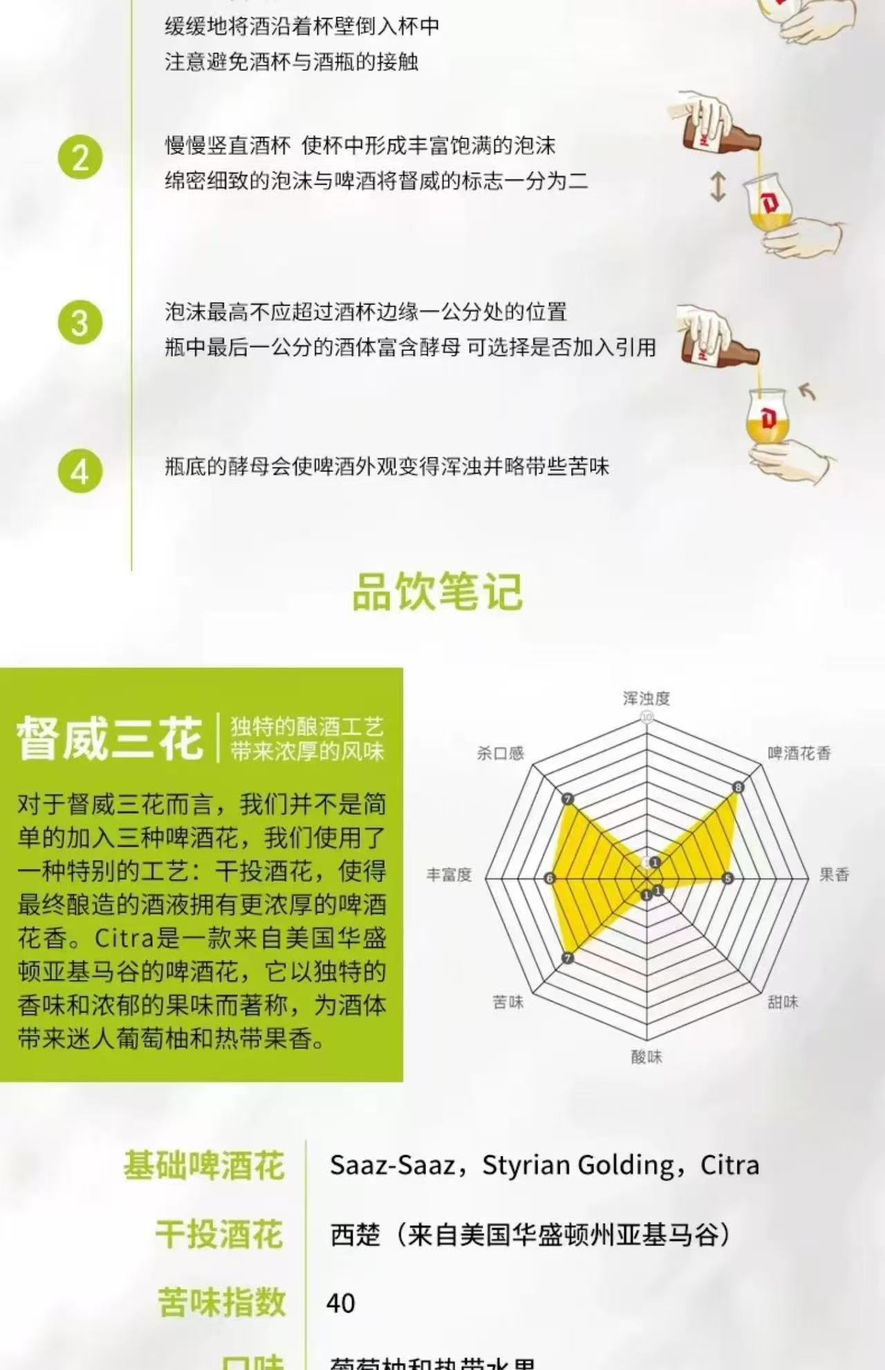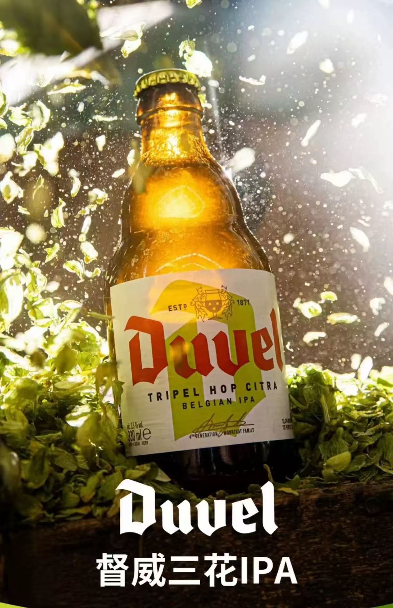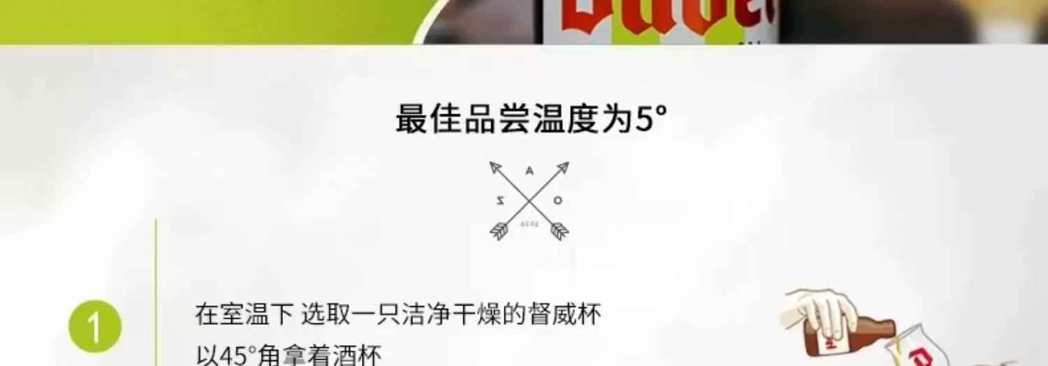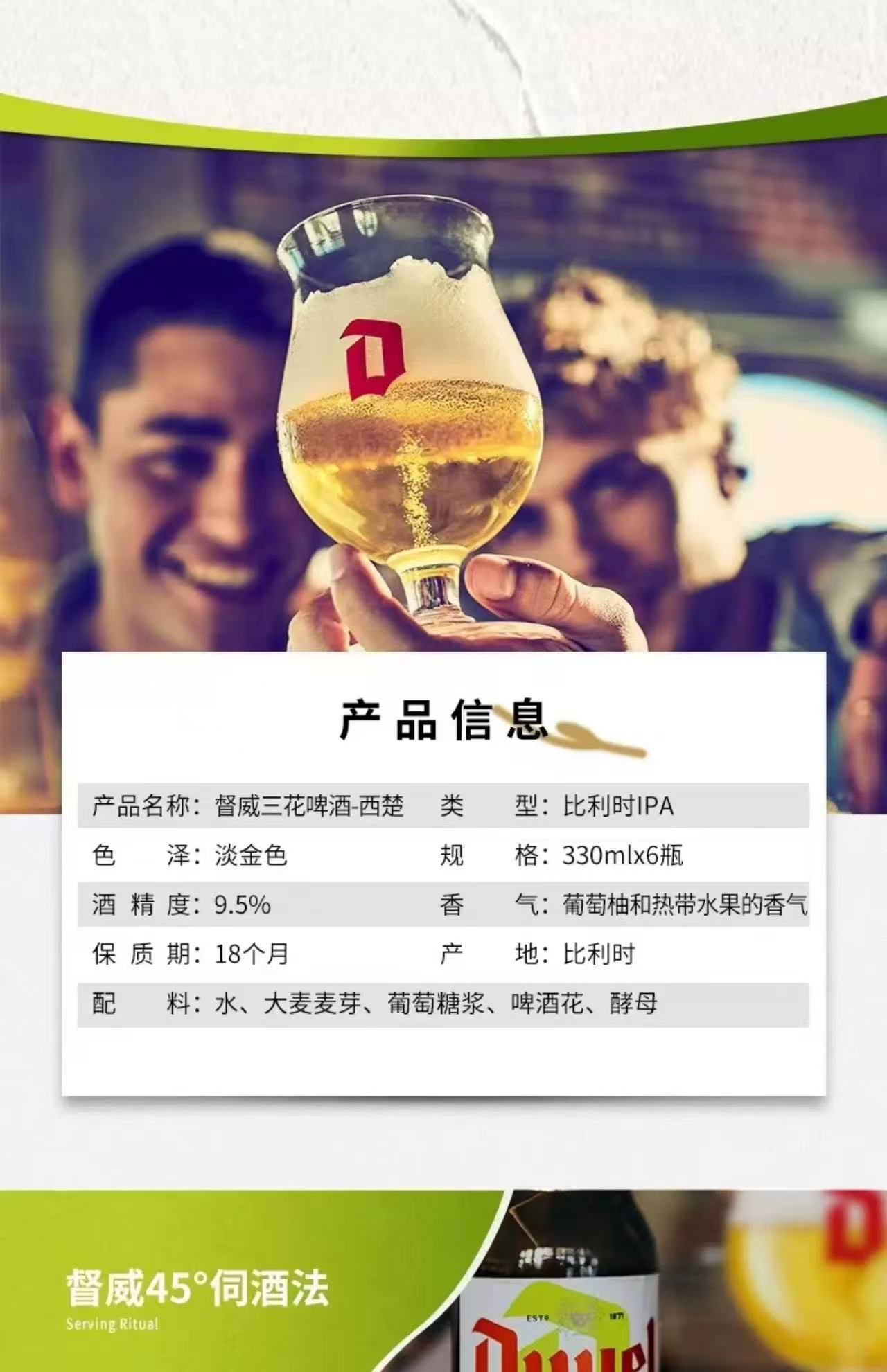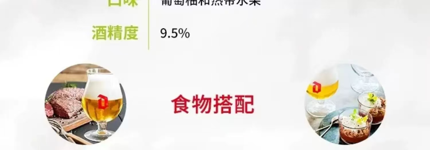 比利时督威三花啤酒 酒精度:9.5° 麦芽度:18.9°