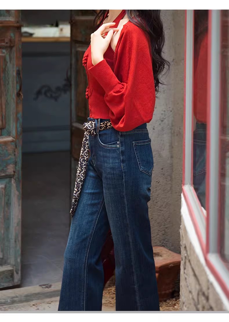 【门店同款】ENJOY秋季豹纹腰带喇叭裤 165443854