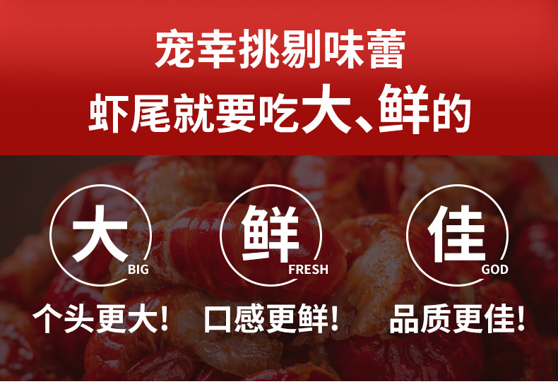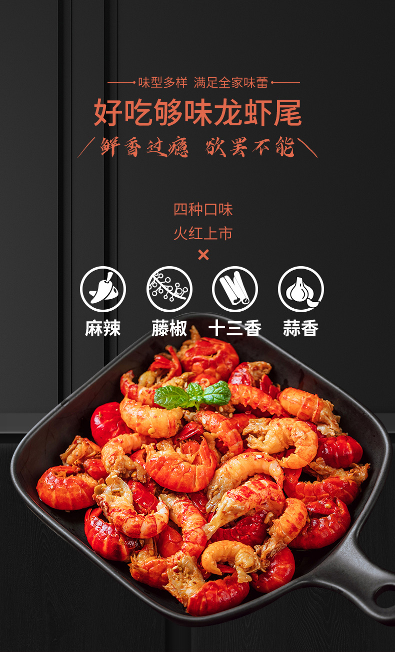 渔人小胖吮指龙虾尾 肉 口嫩鲜爽多汁 壳軟腮浄腹美 鲜香过瘾多囗味可选 25 分享0g/盒(每盒约30-36粒)