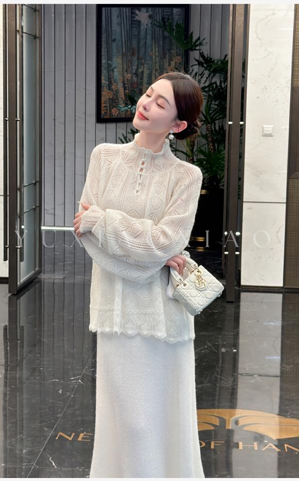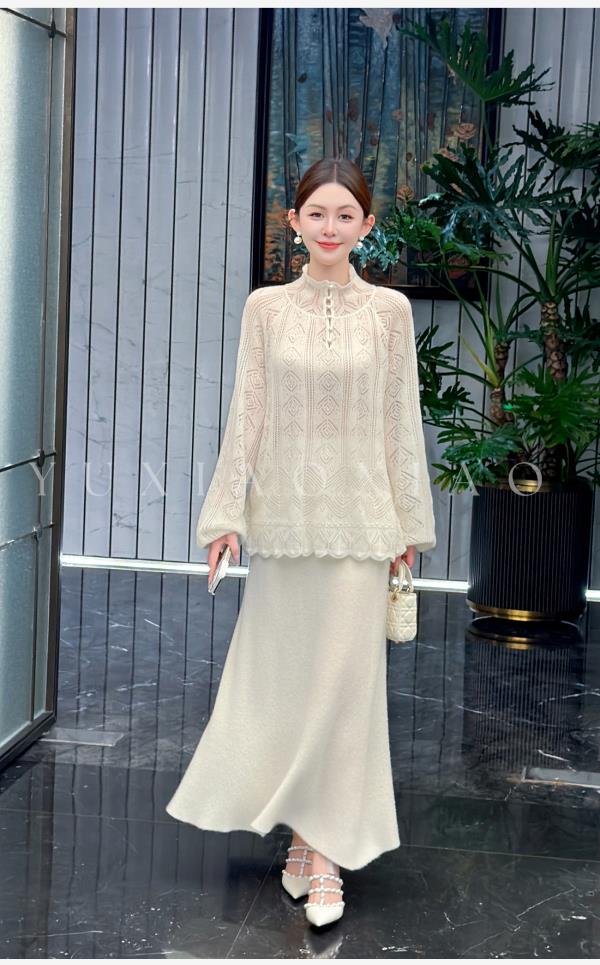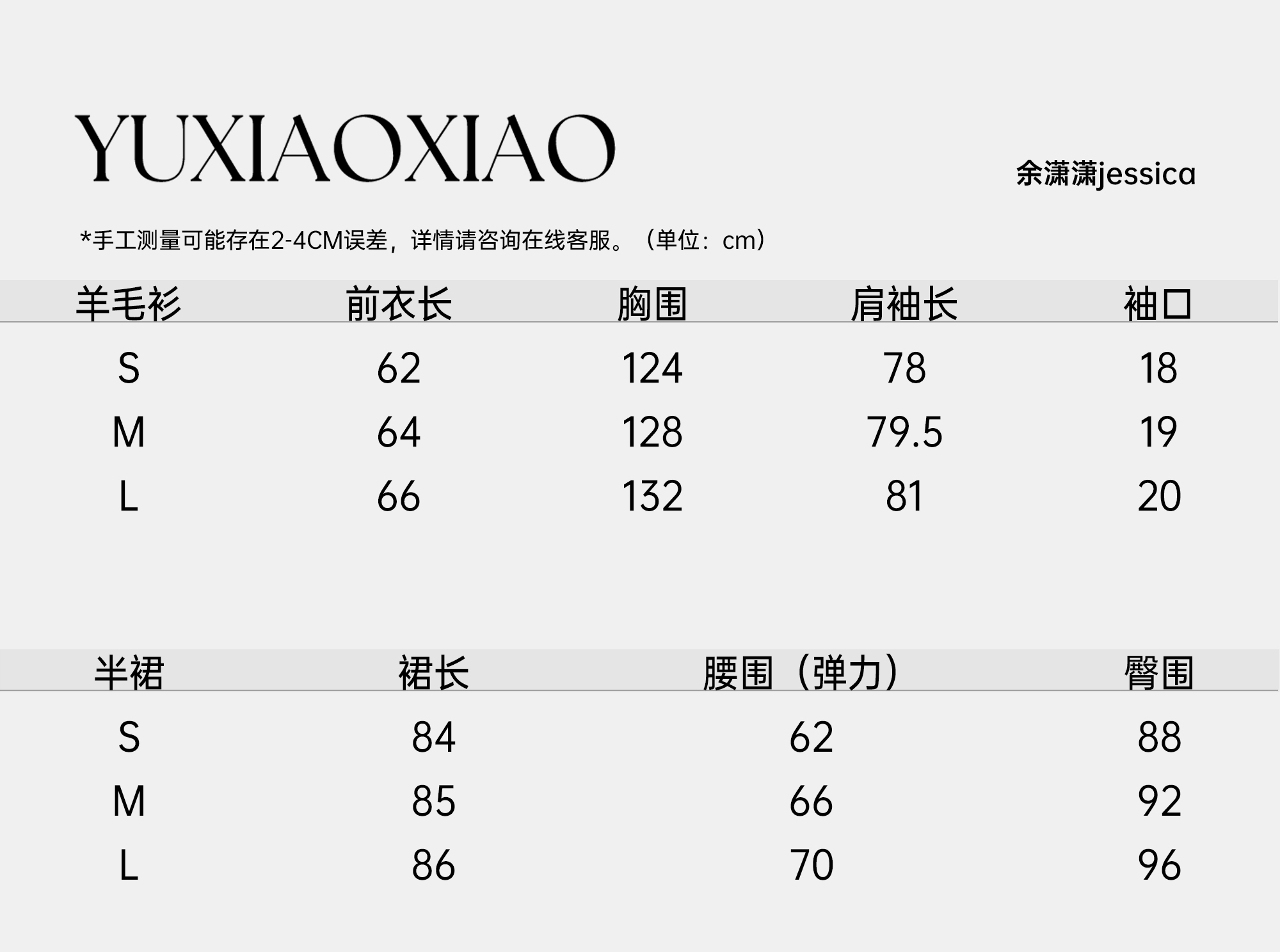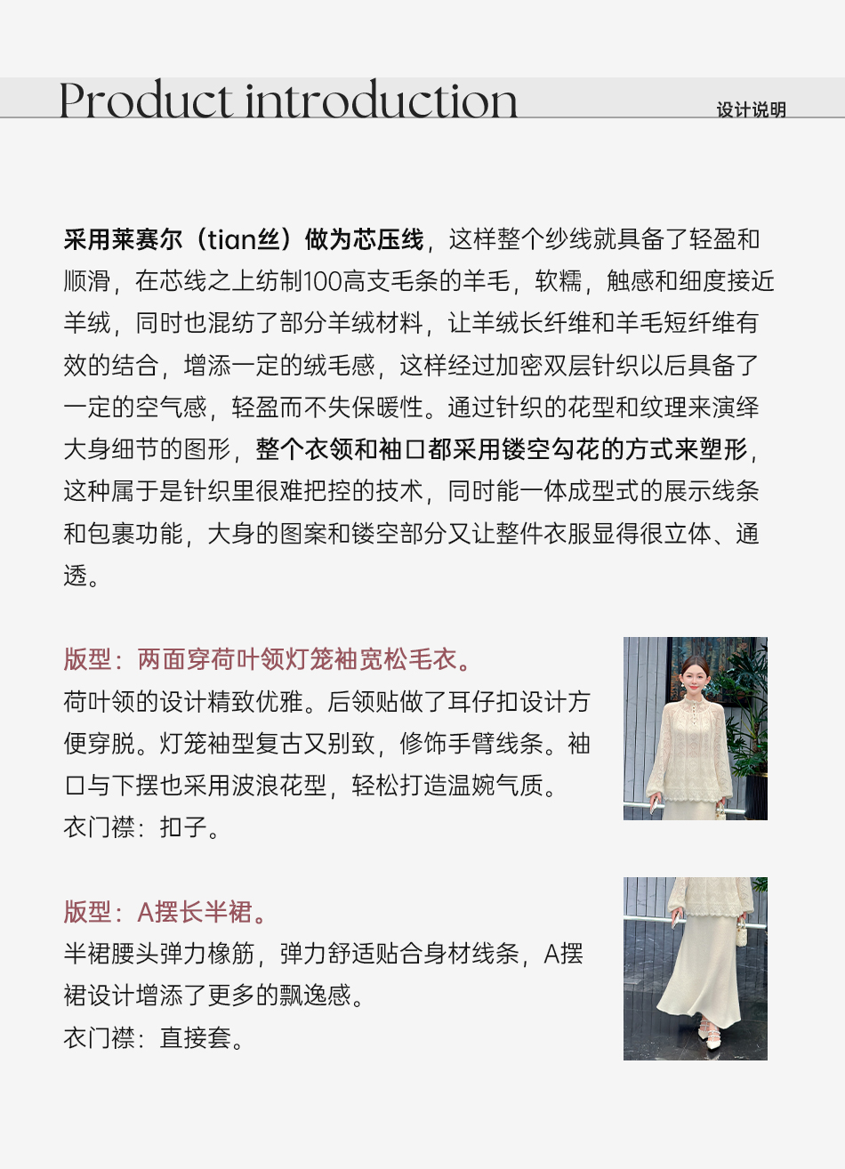 余潇潇【安妮假日】羊绒羊毛天丝混纺两面穿荷叶领毛衣&A摆长半裙