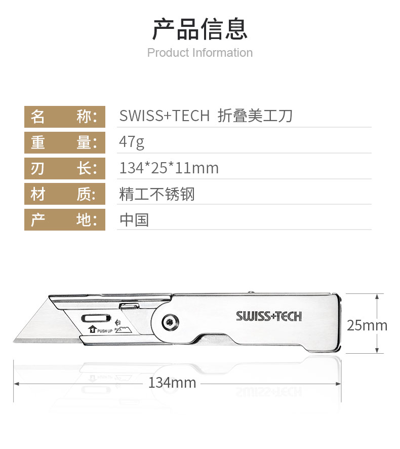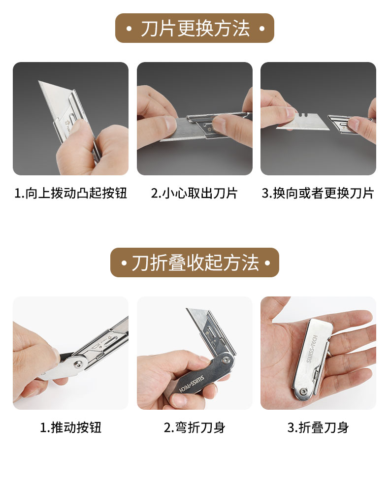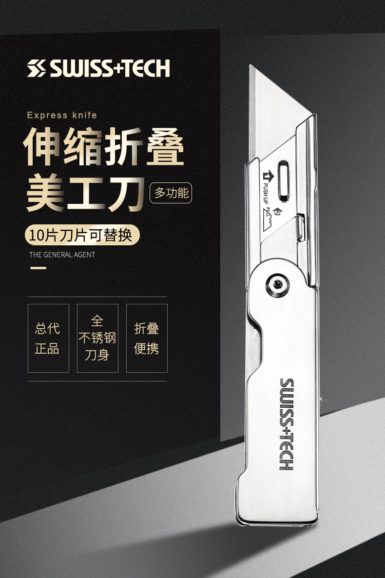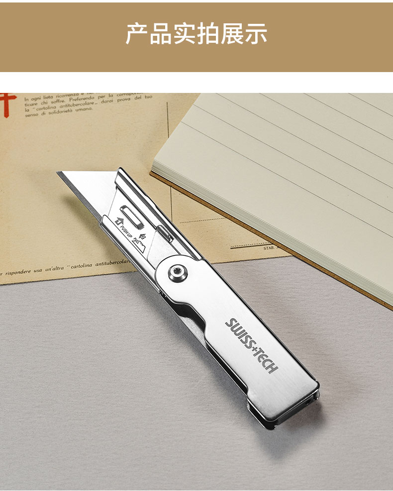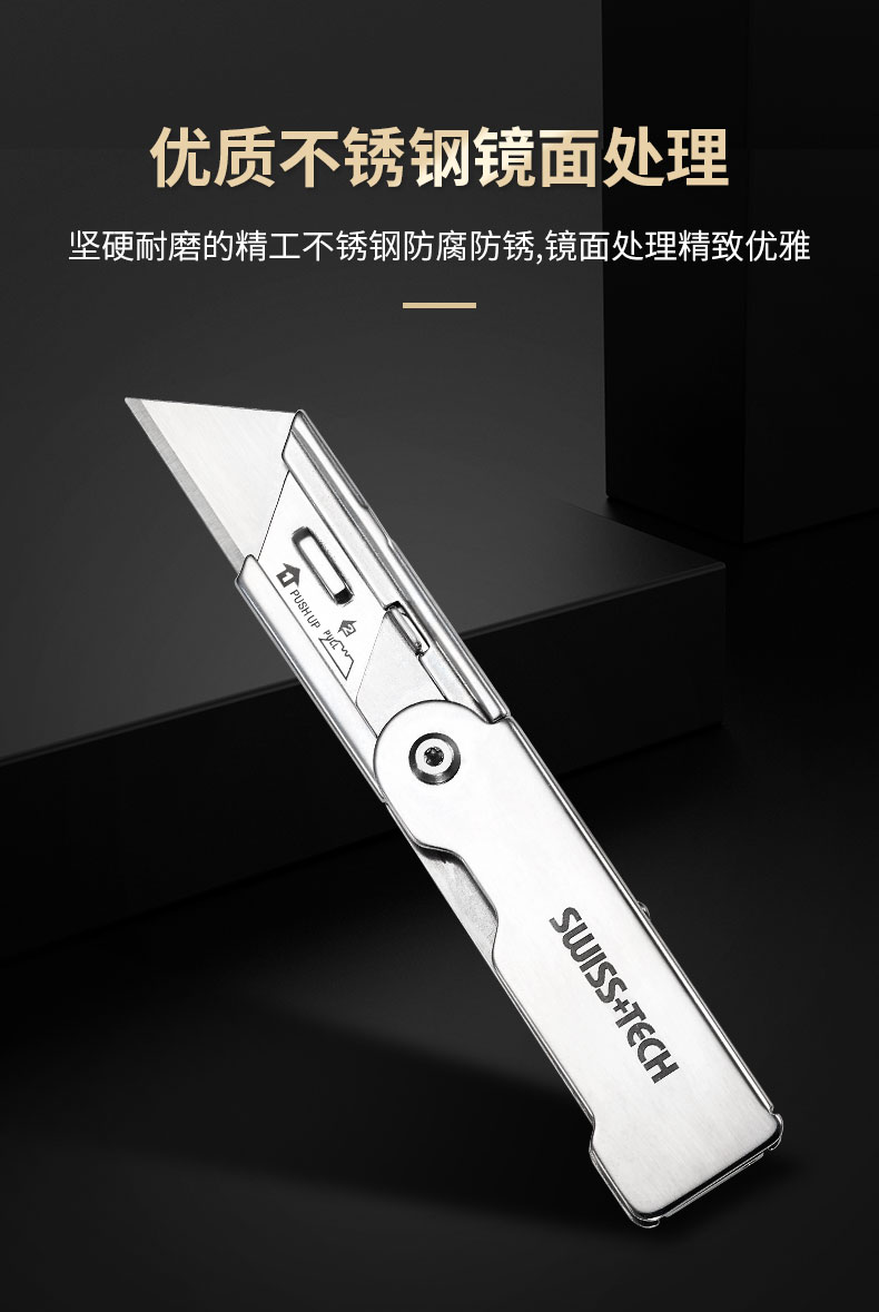 瑞士科技SWISS+TECH 折叠美工刀拆箱快递刀裁纸壁纸刀户外钥匙链