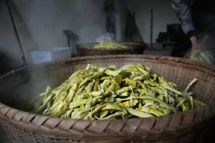 人工去根 只留最嫩的部分,洗净挑选,放在大锅笼屉上,撒上少量食盐,加上山泉水烧煮,健康又美味