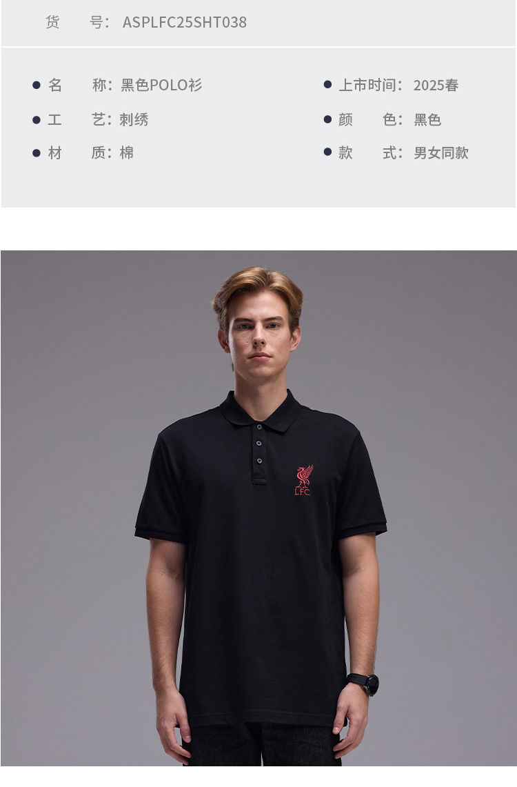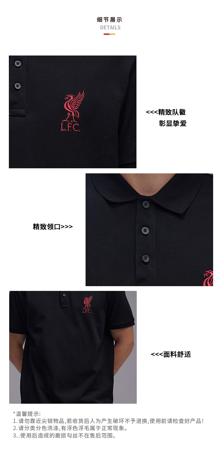 【官方正版】利物浦俱乐部 | 简约黑色POLO衫商务休闲短袖舒适透气
