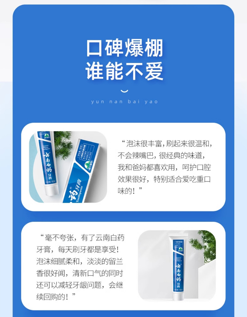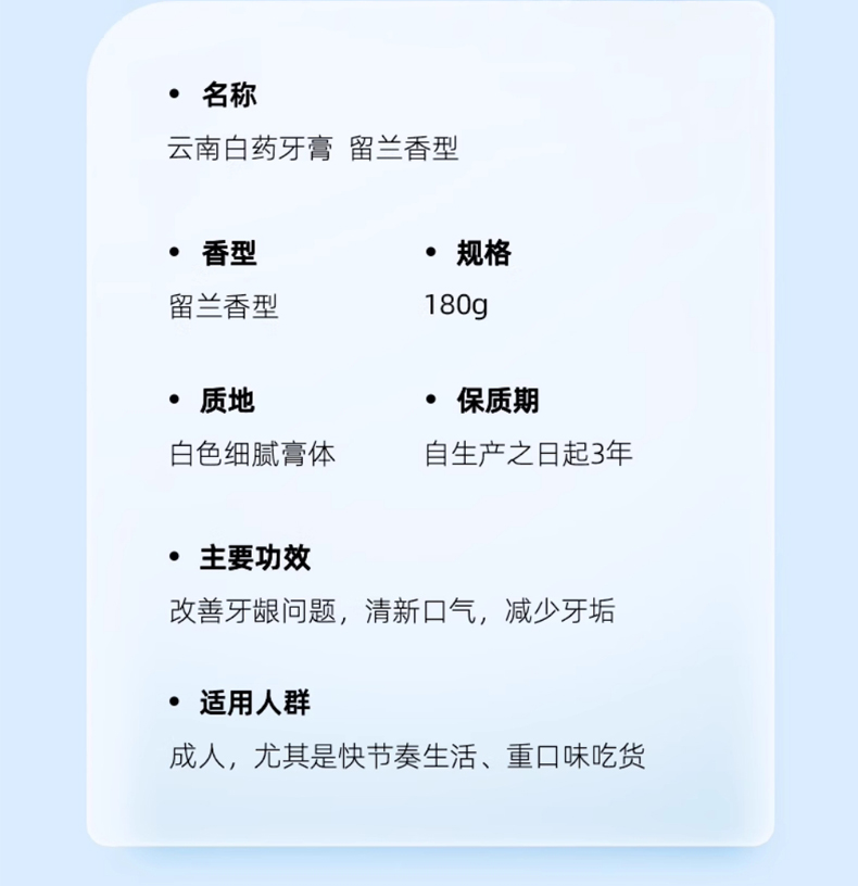 【官方正品】云南白药牙膏留兰香型经典款120g改善口腔问题维持口腔健康