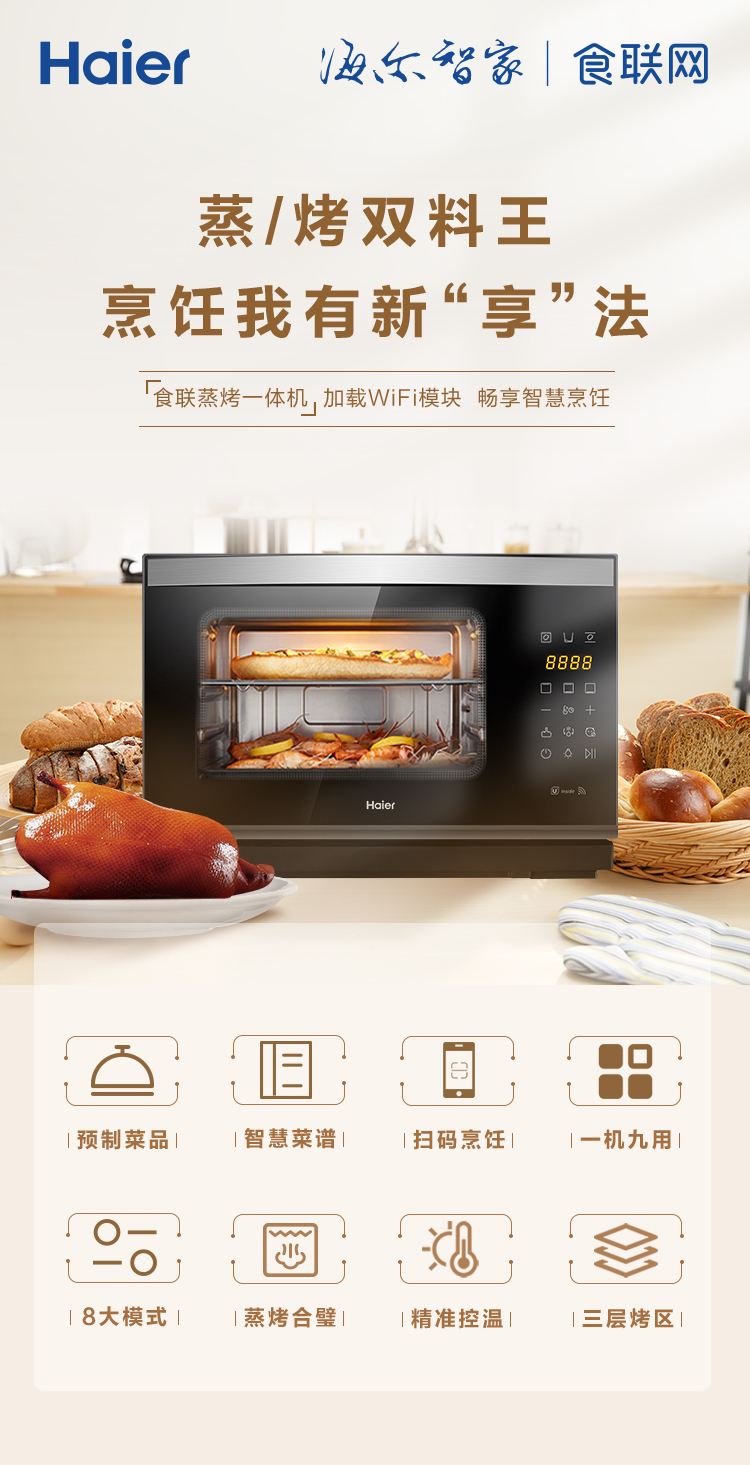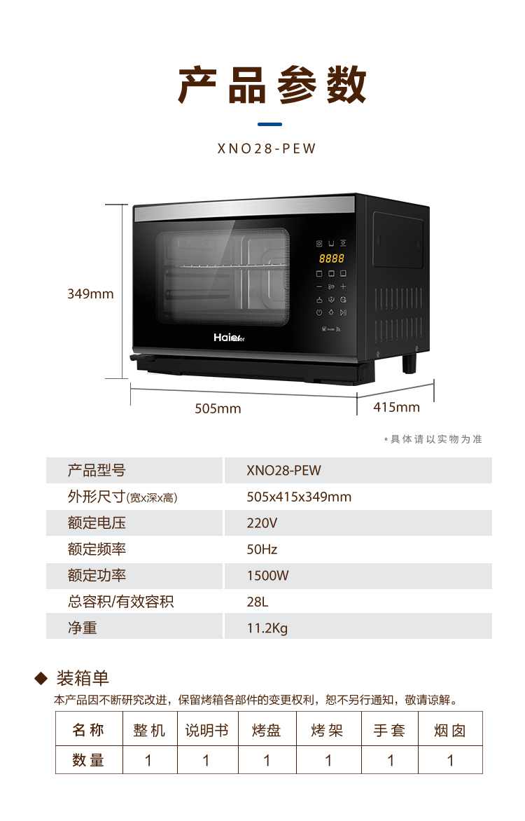 海尔 家用台式大容量电烤箱28升智能微蒸烤一体机 XNO28-PEW