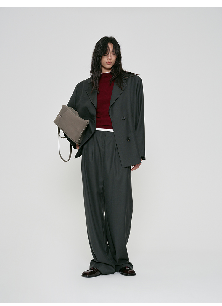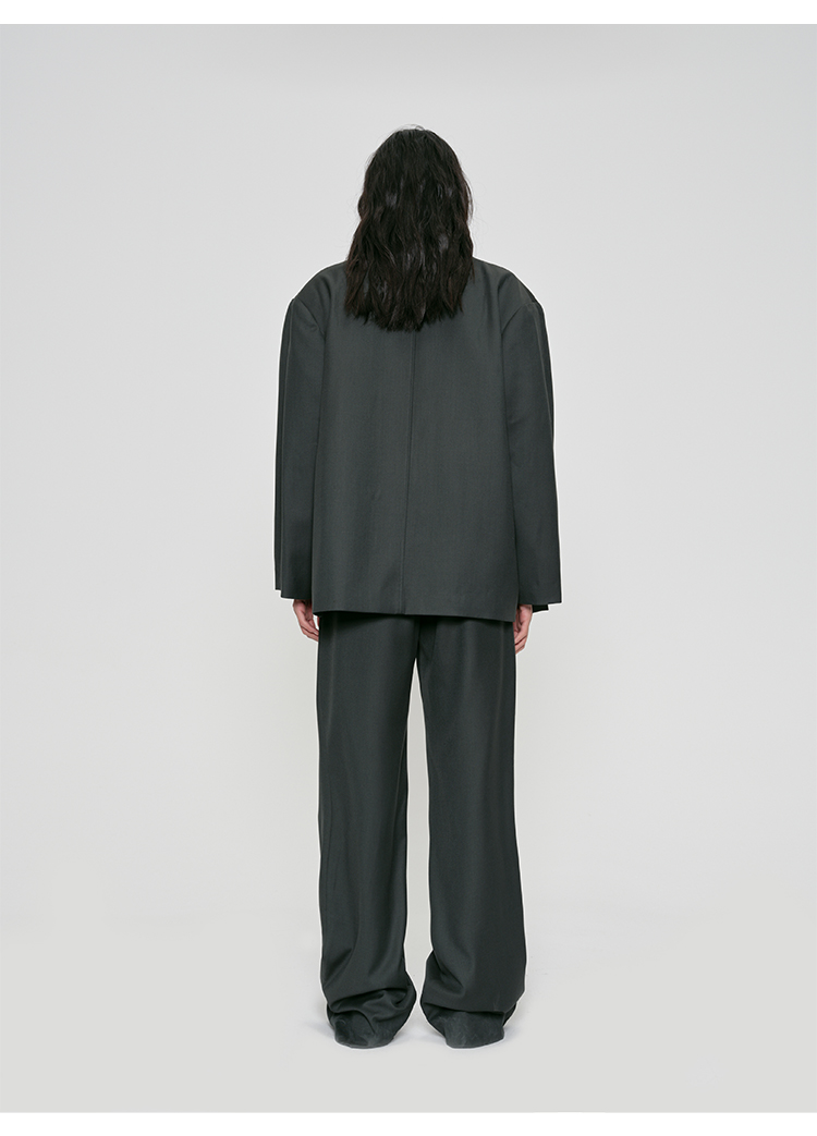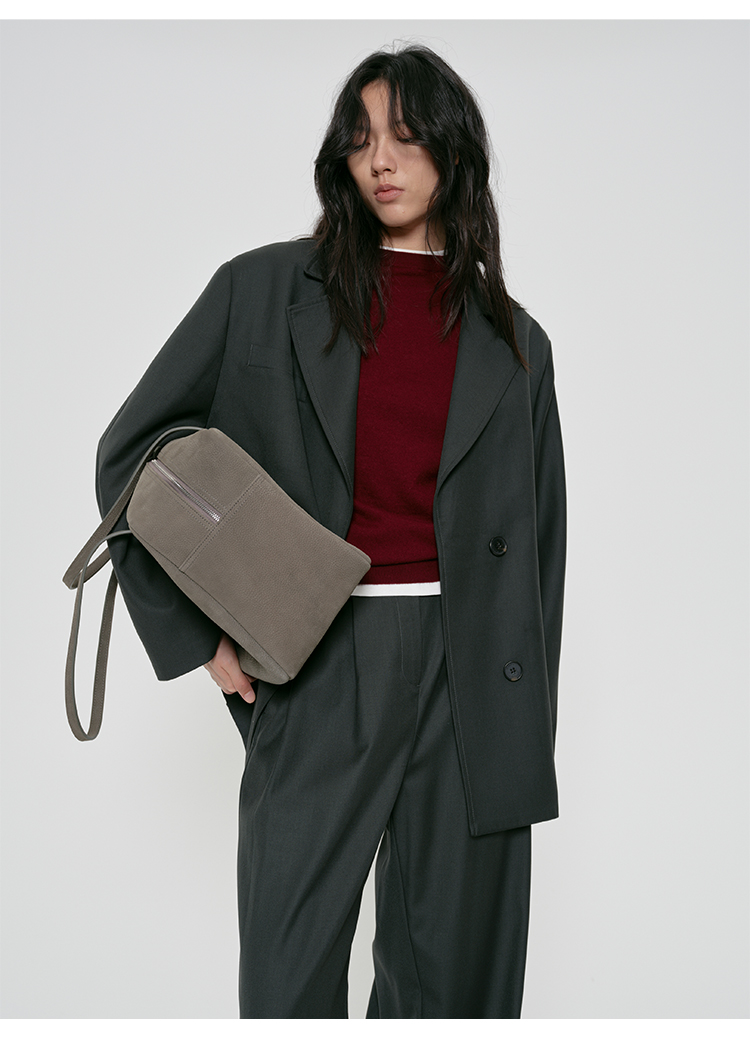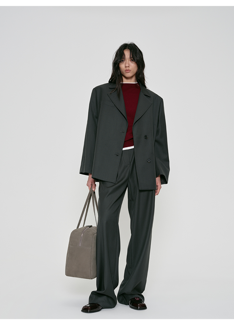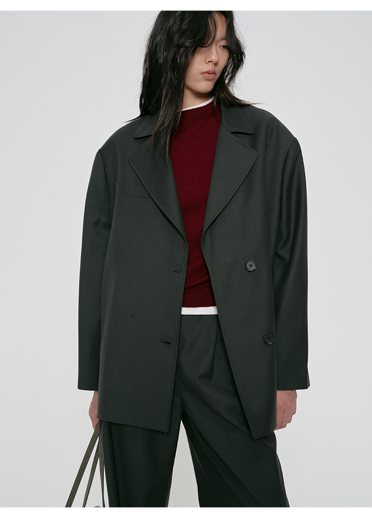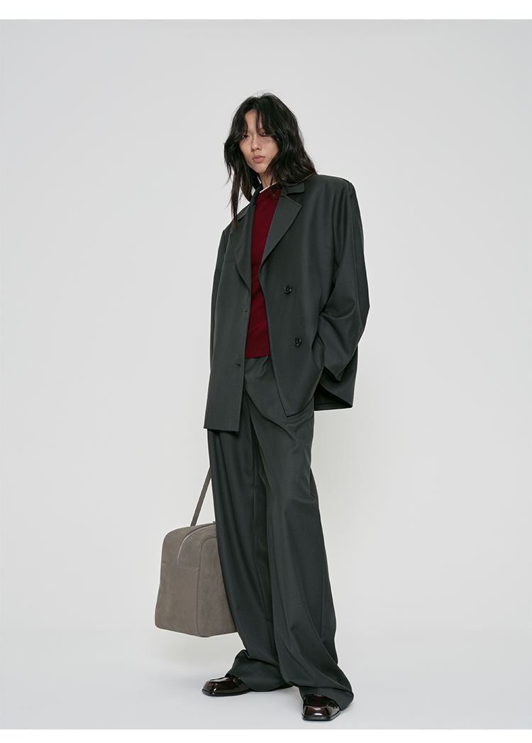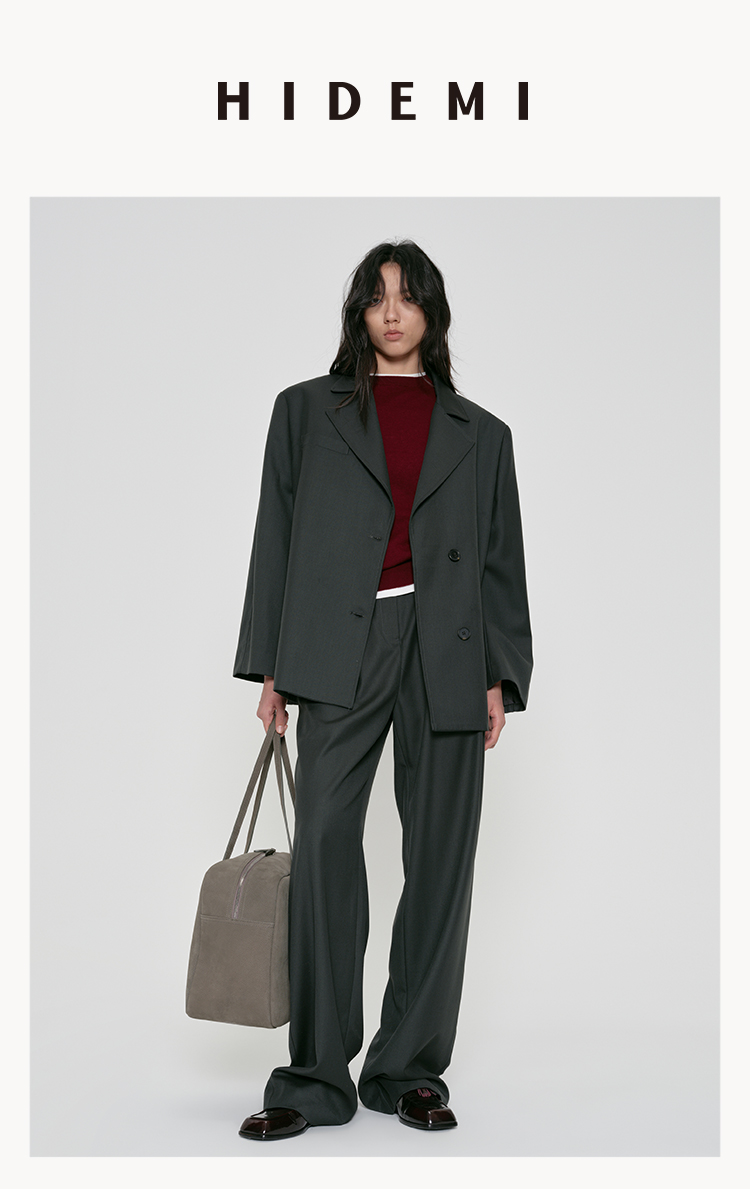 HIDEMI 莫兰迪灰蓝色极简廓形宽肩垫肩设计感甄选可再生纤维高翻领复古男朋友式西装