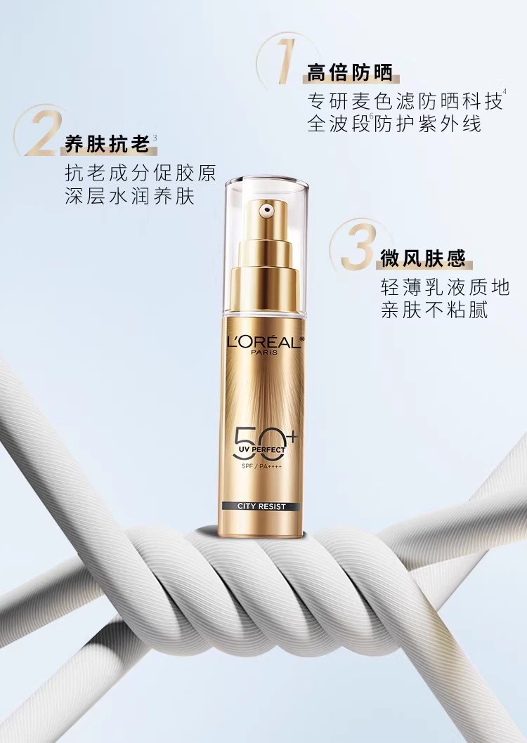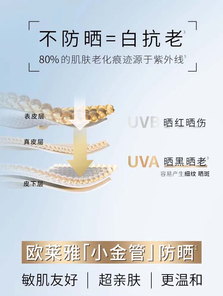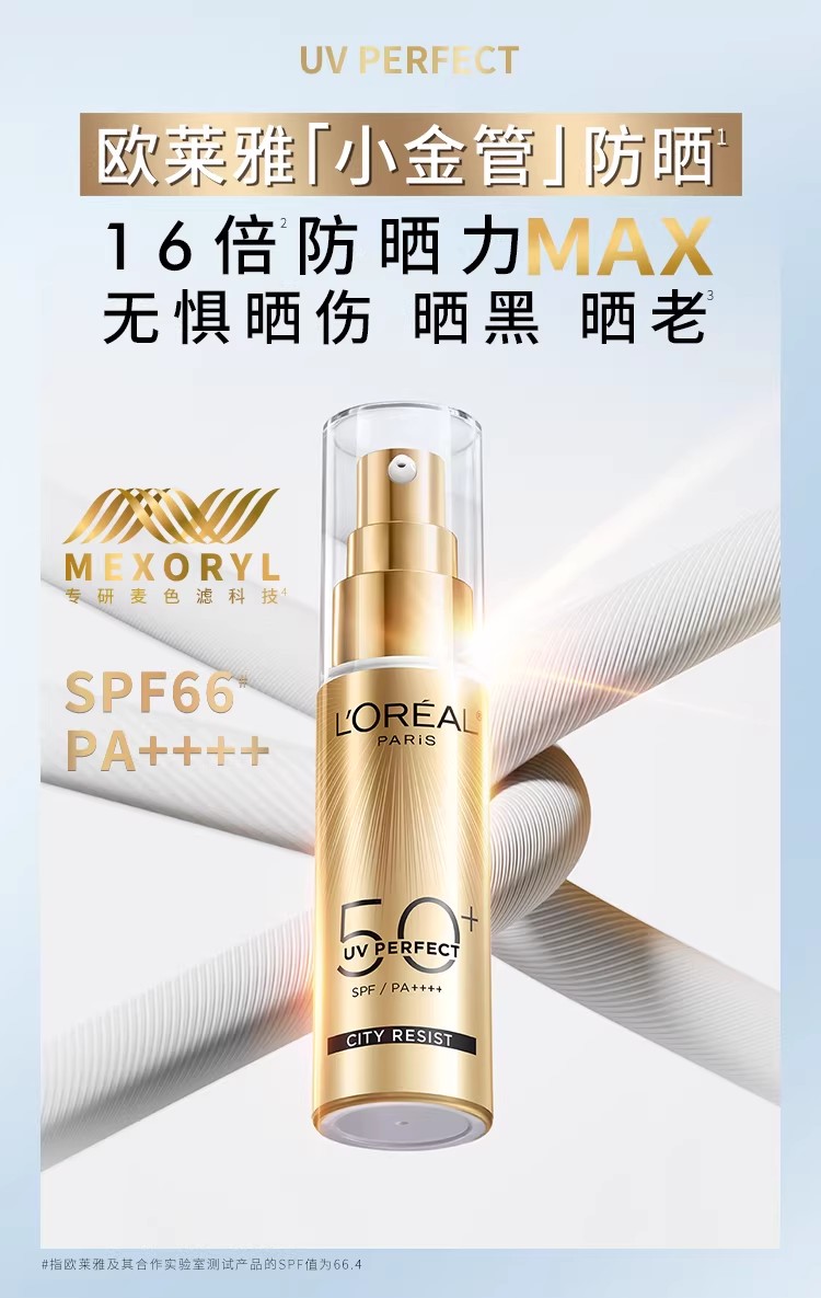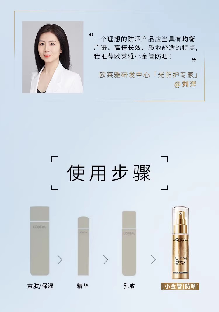 欧莱雅小金管防晒霜30ml隔离霜面部防晒乳敏感肌多重防护防紫外线SPF50+PA++++