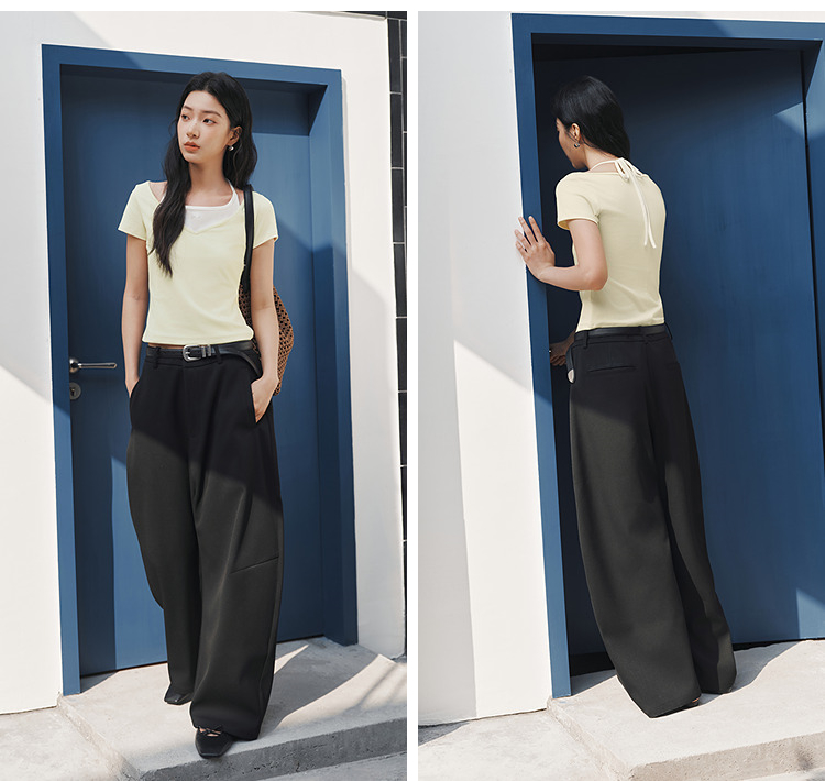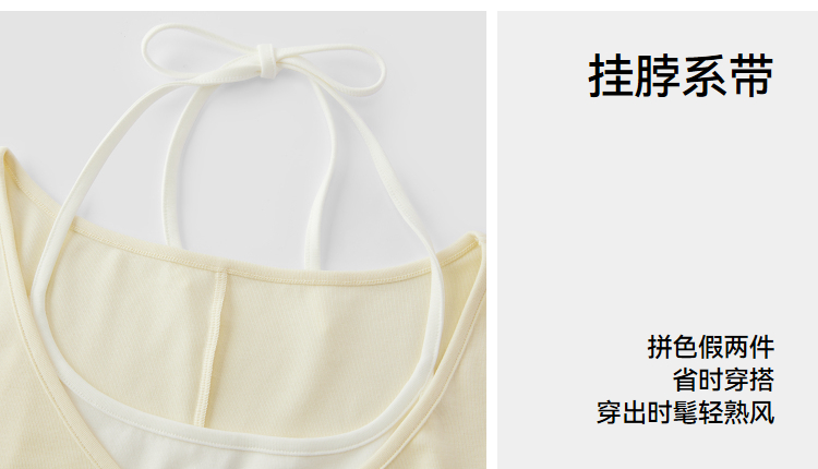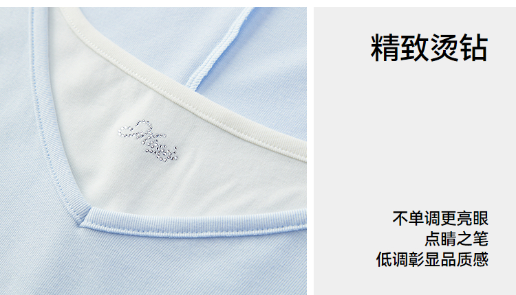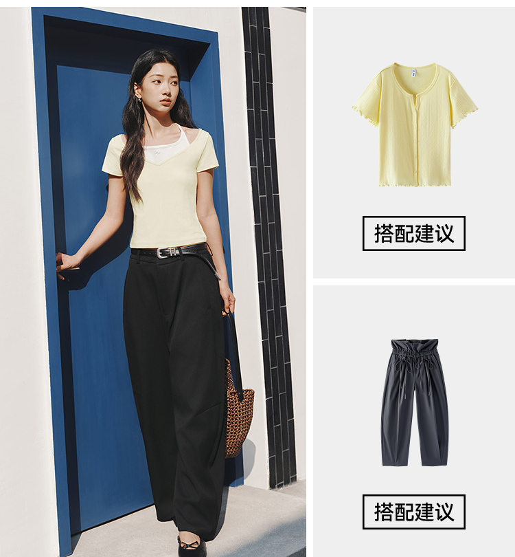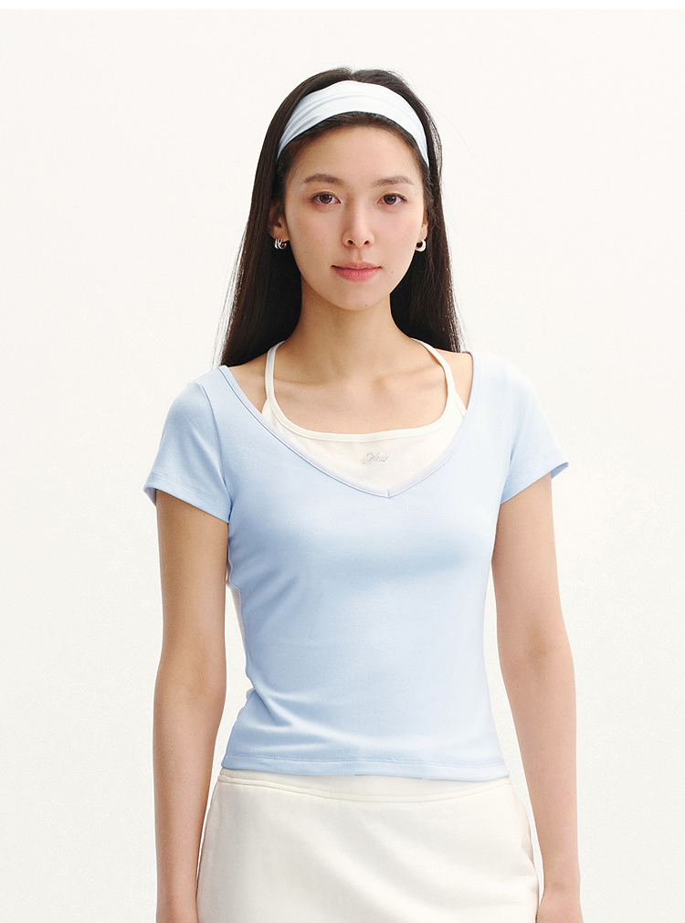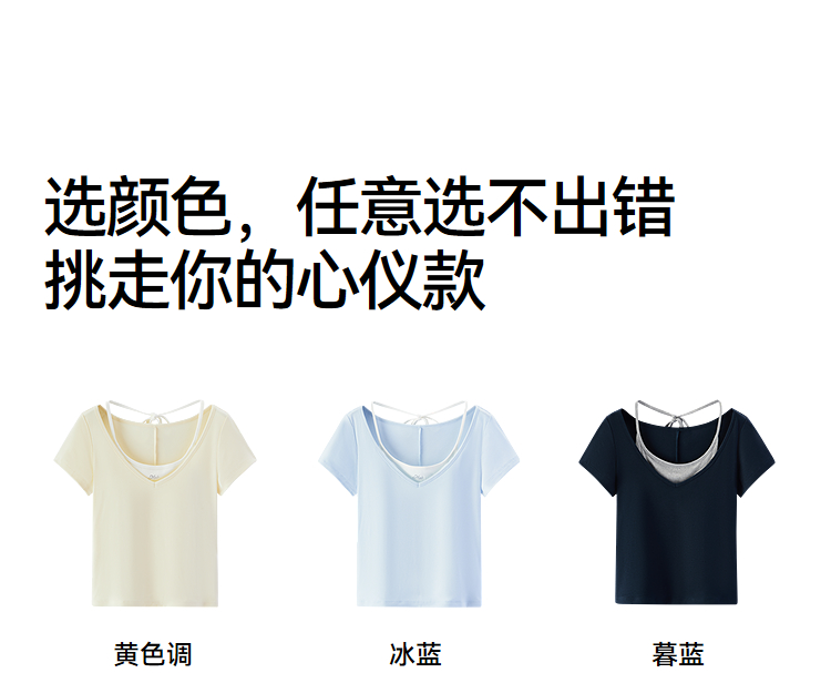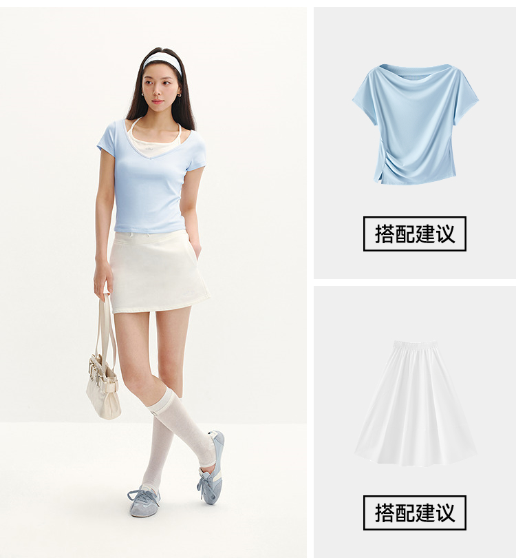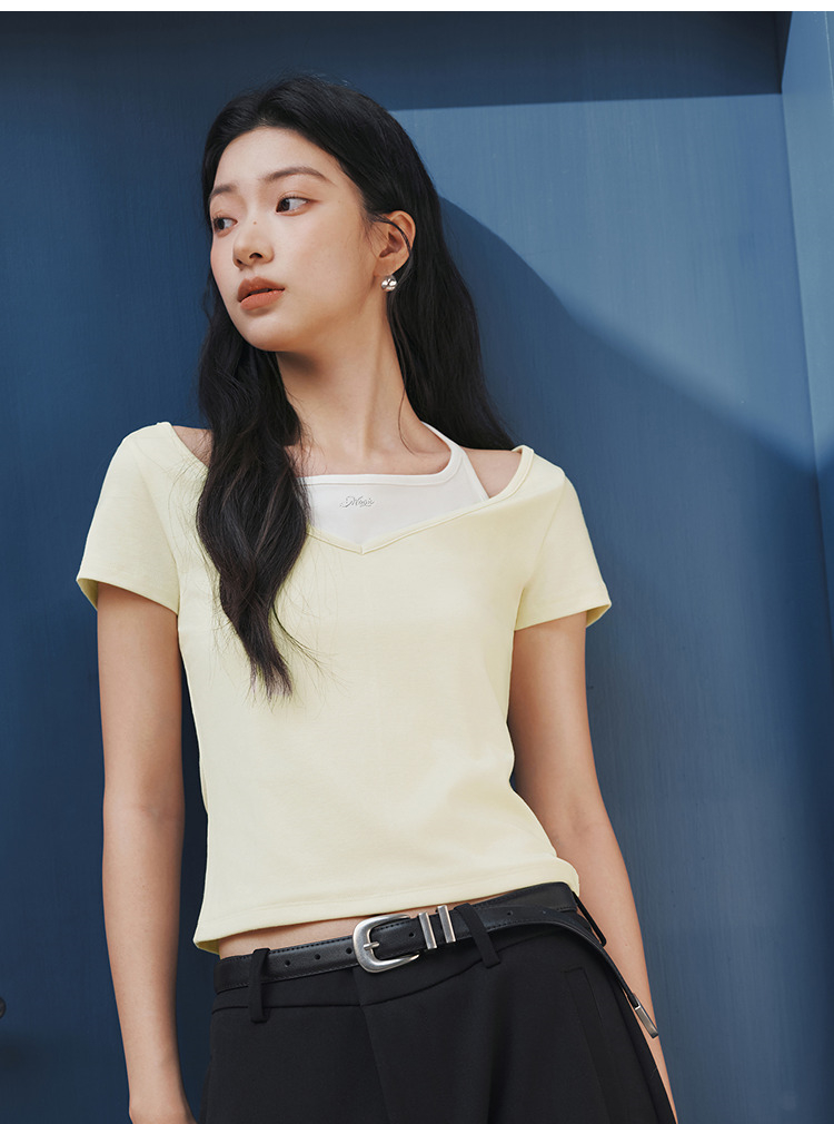 森马短袖T恤女夏季短款挂脖V领假两件蝴蝶结紧身烫钻2026新款上衣