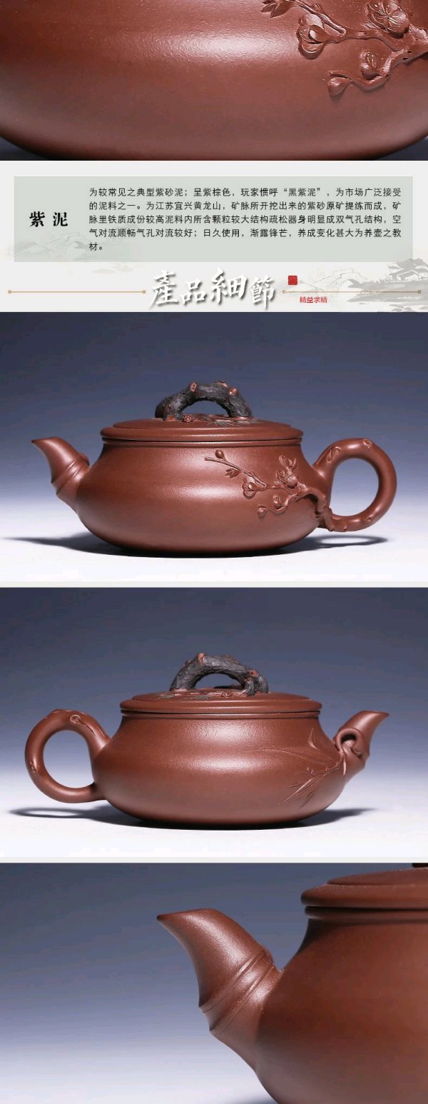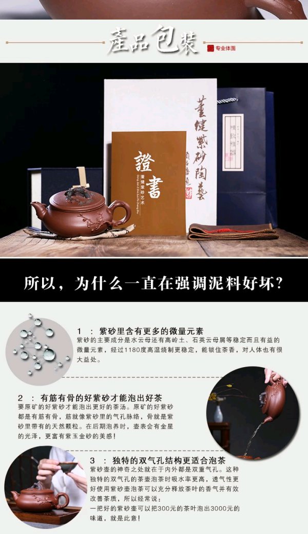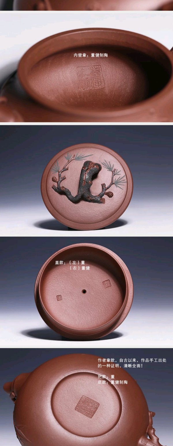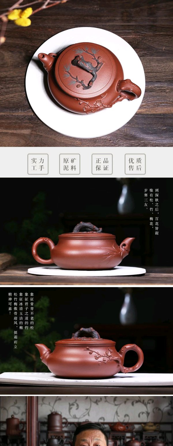 岁寒三友 紫砂壶茶壶全纯手工宜兴名家收藏精品大口茶具泡茶壶国工董健原矿紫泥310ml紫泥