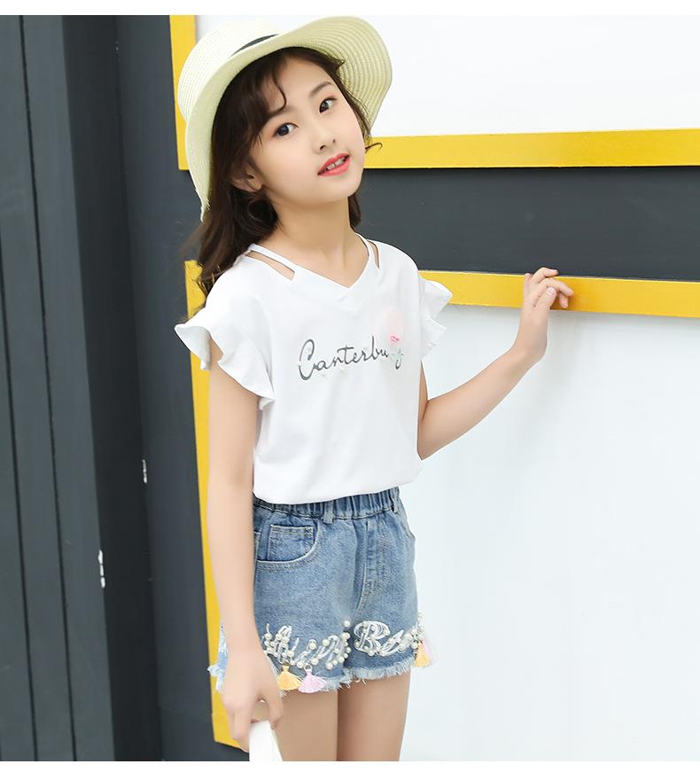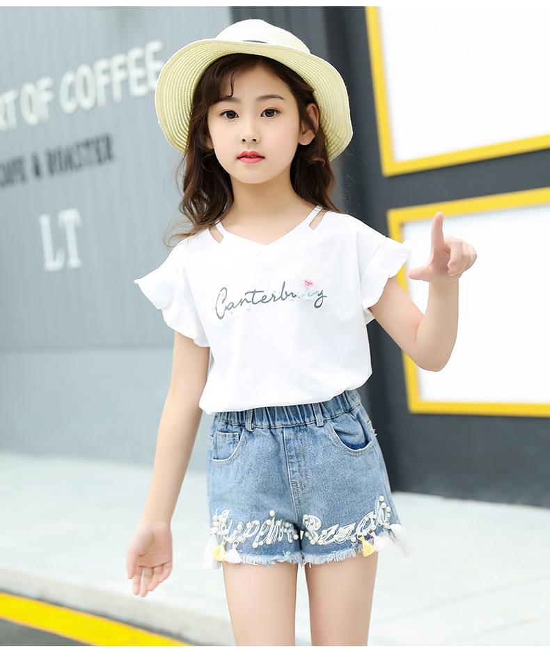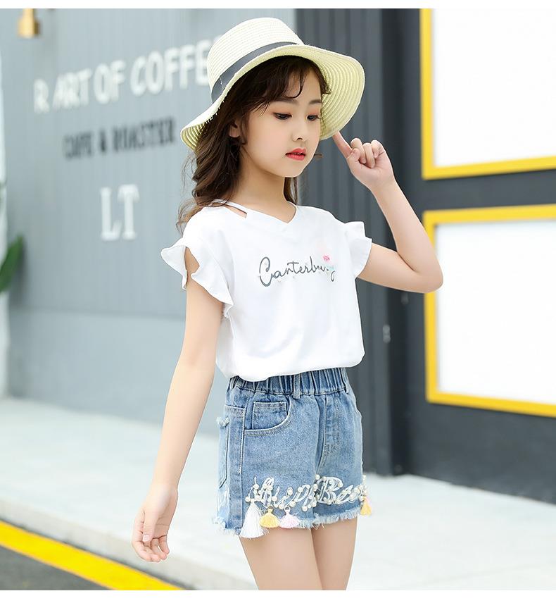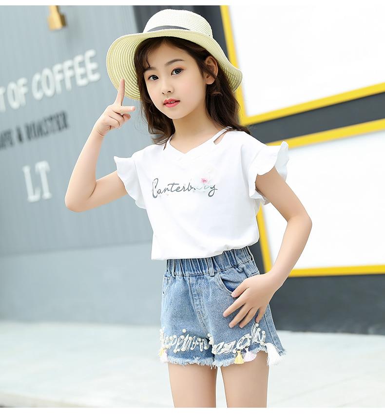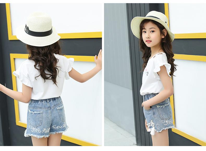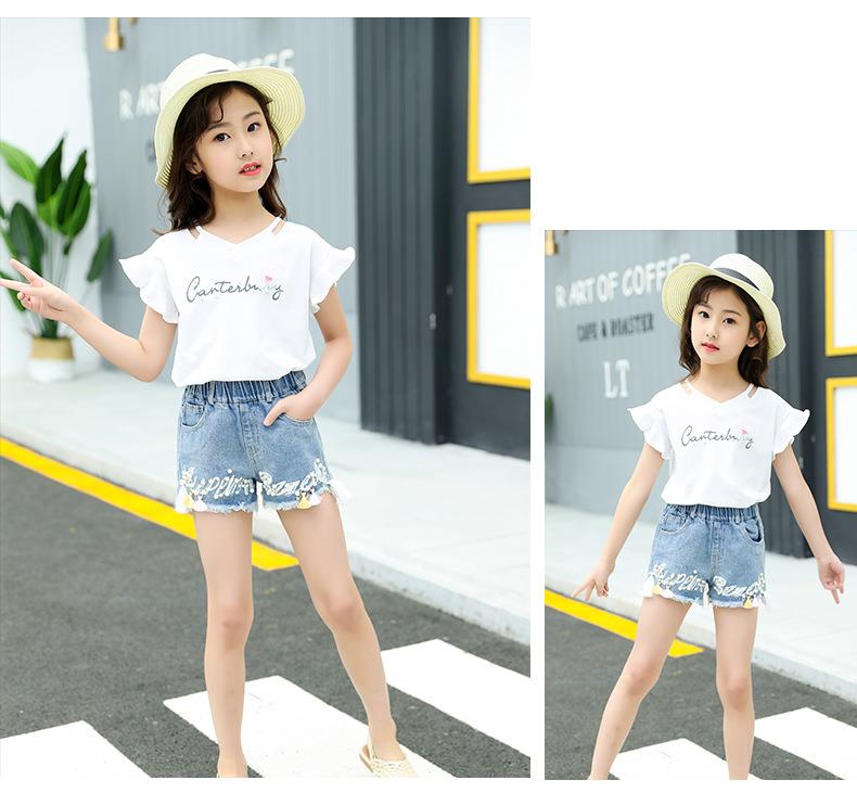 女童套装夏装2023新款中大儿童洋气两件套小女孩跨境网红牛仔短裤