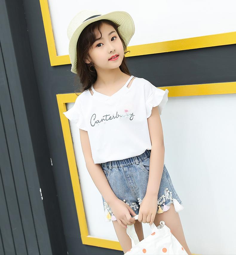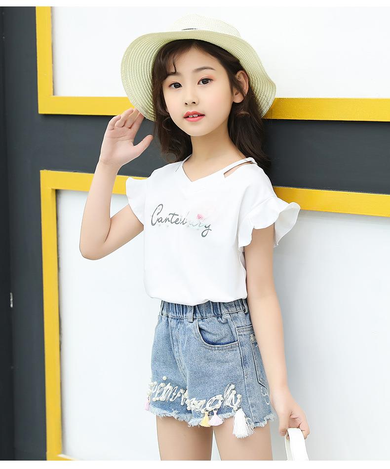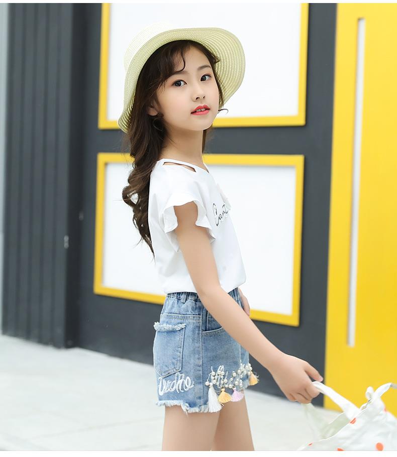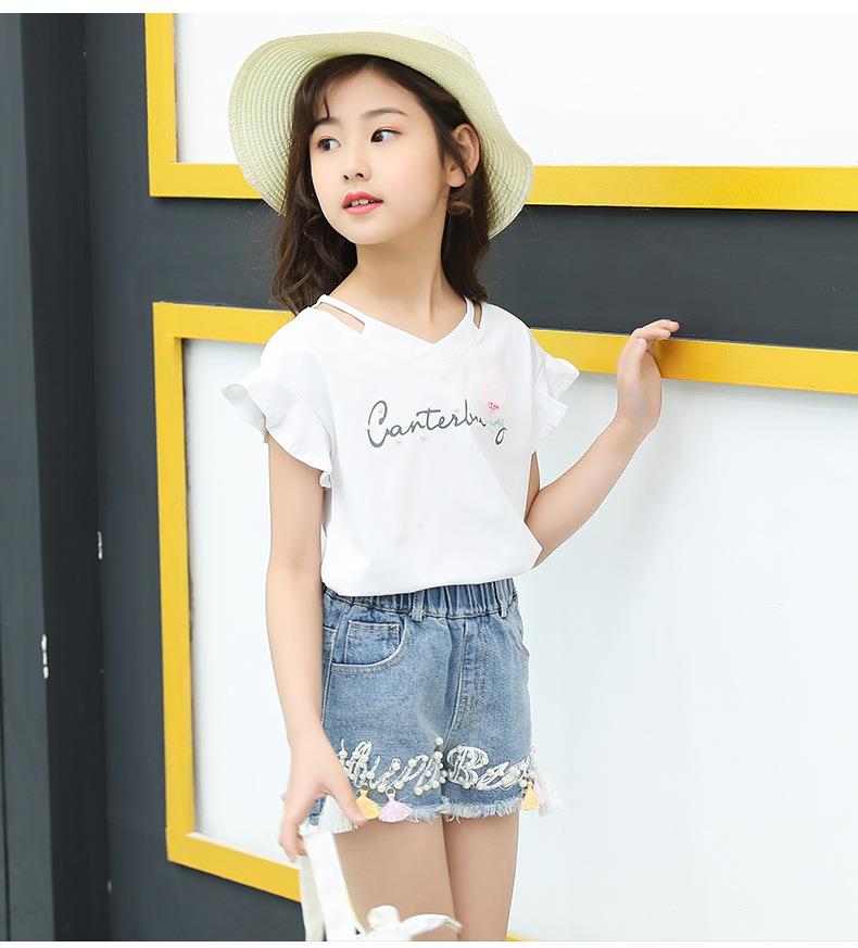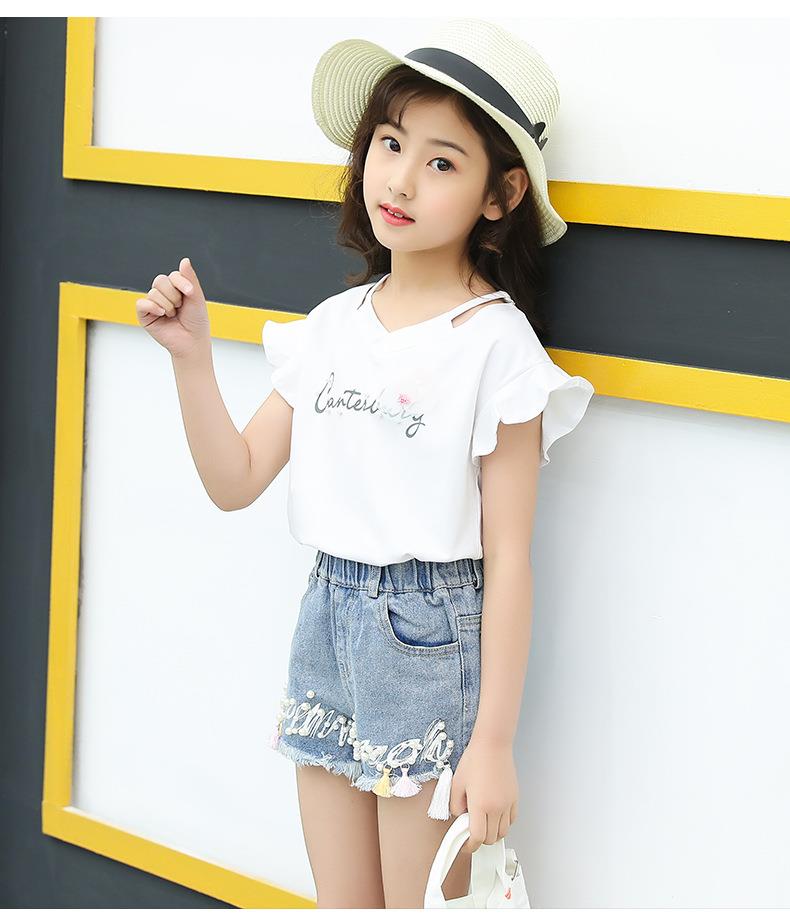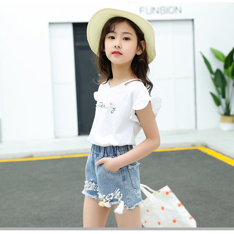 女童套装夏装2023新款中大儿童洋气两件套小女孩跨境网红牛仔短裤