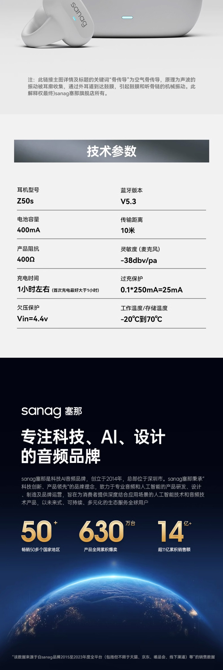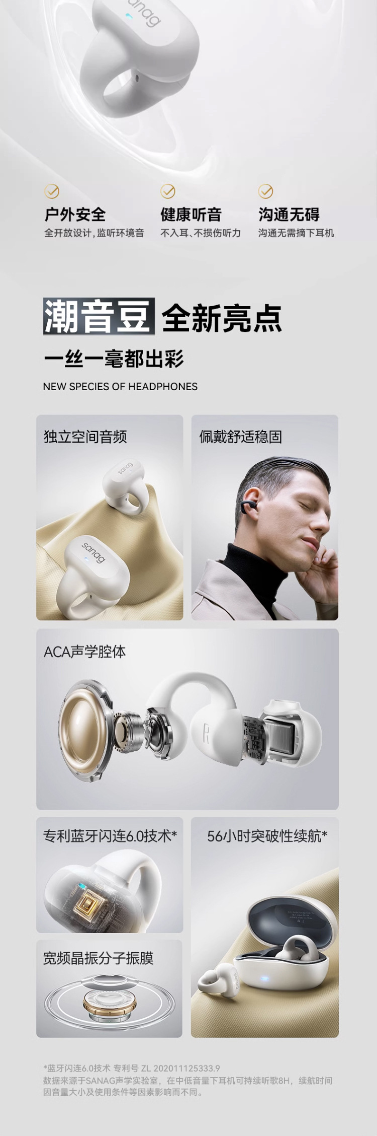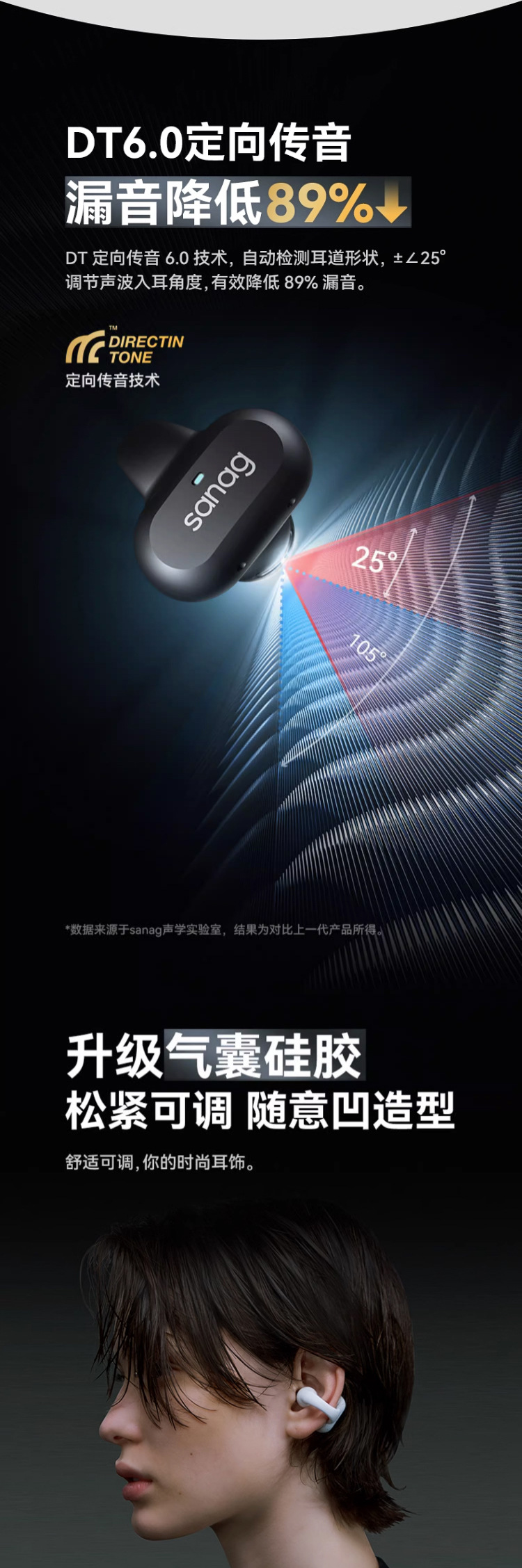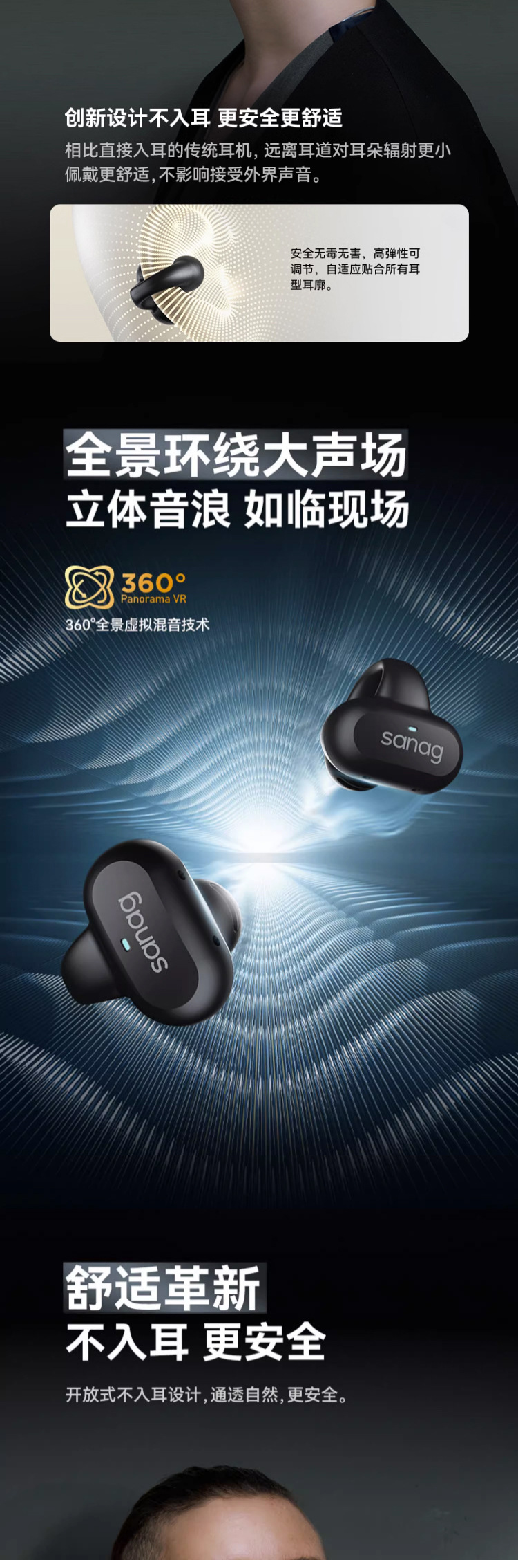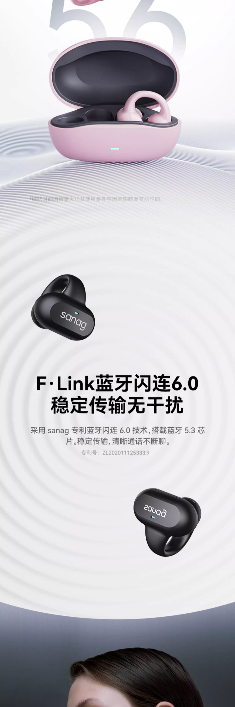 【气囊硅胶设计!亲肤贴耳,】SANAG塞那Z50SPRO旗舰版骨传导真无线夹式耳机蓝牙耳机双耳。ry