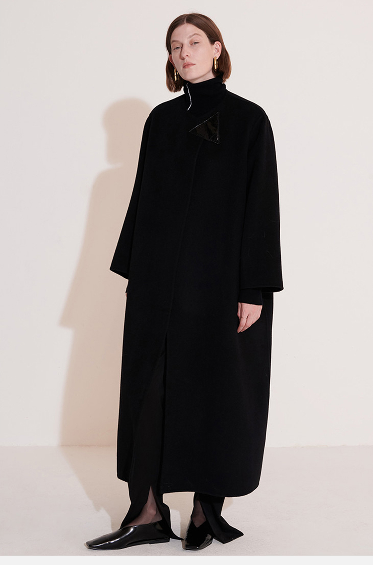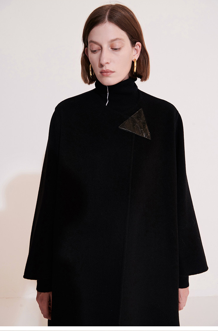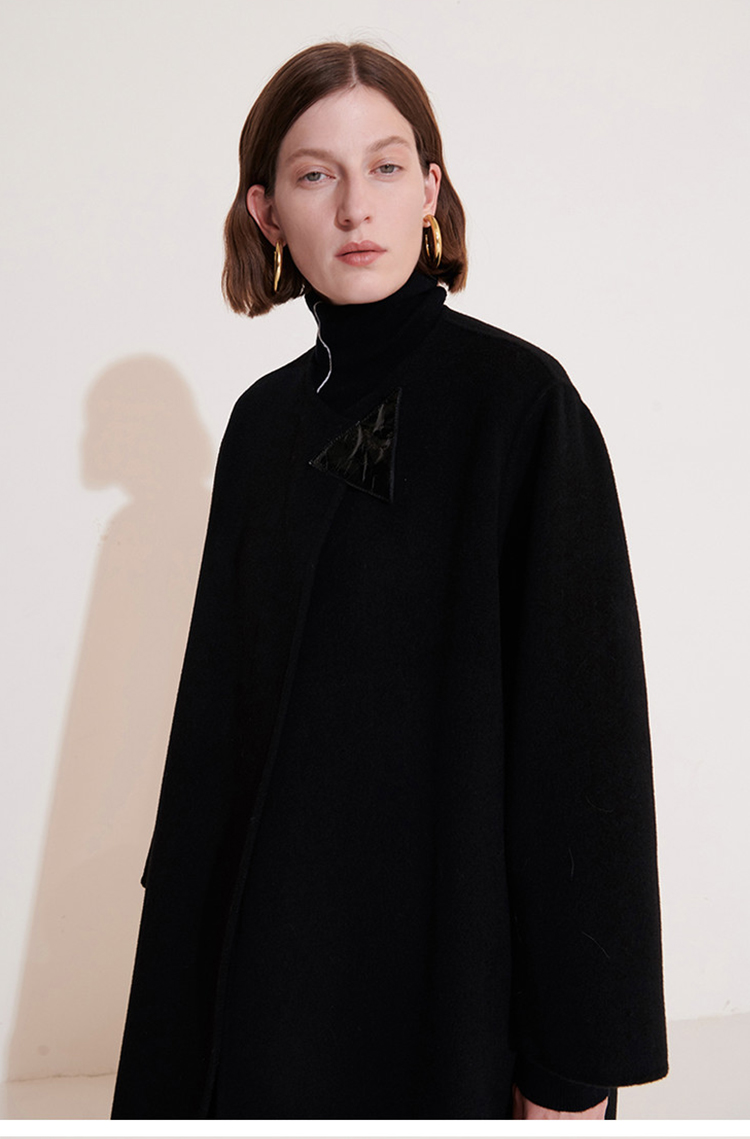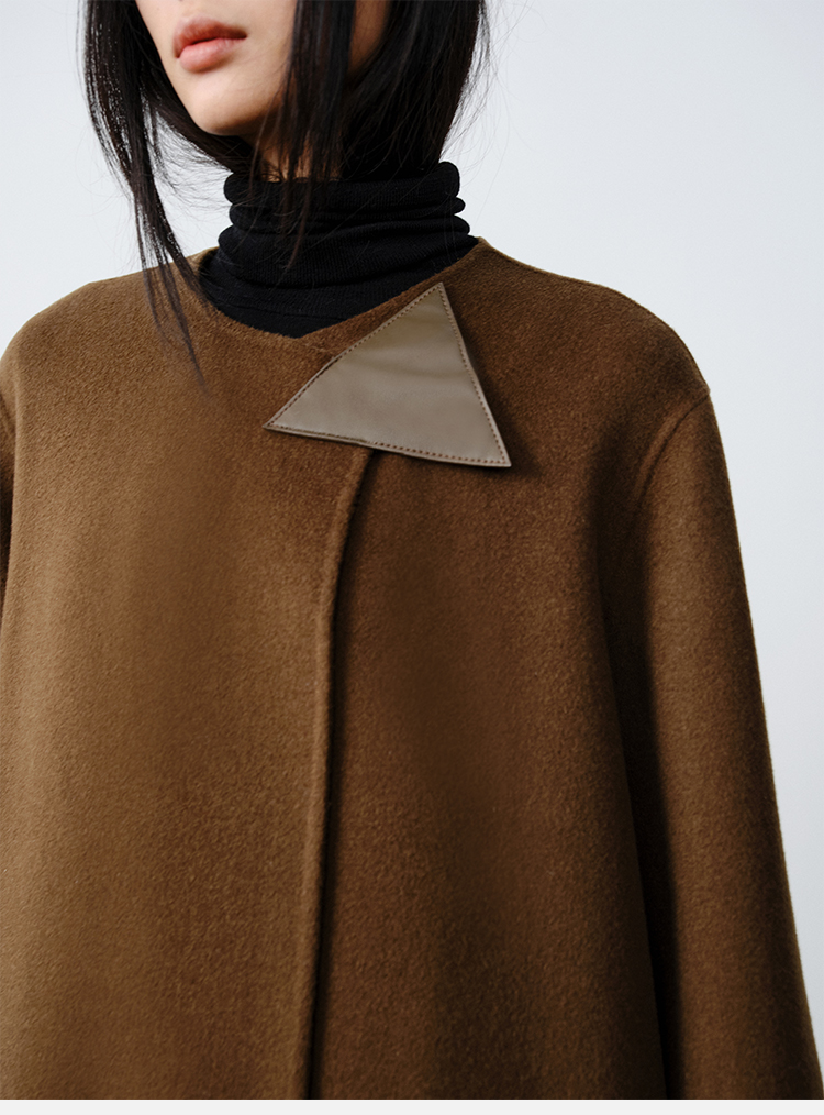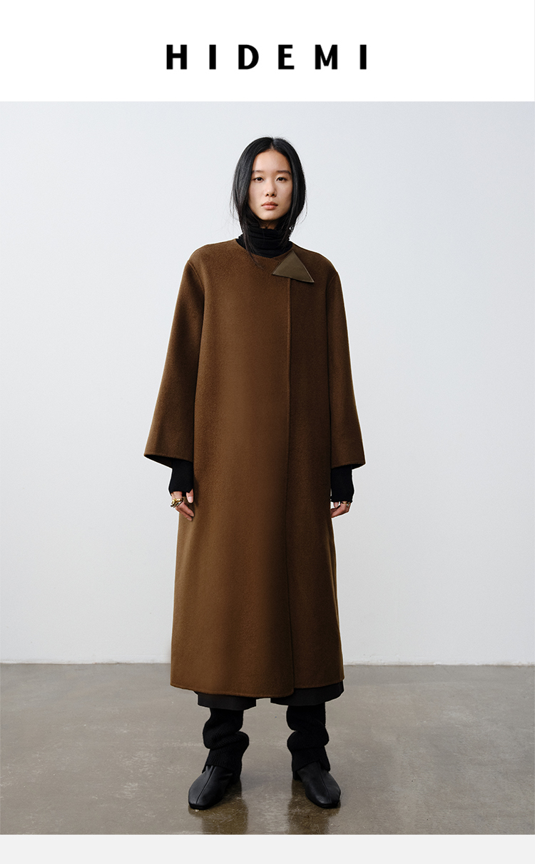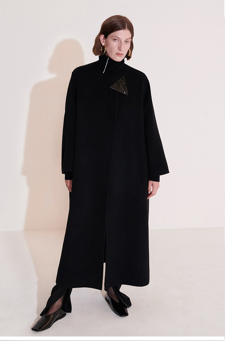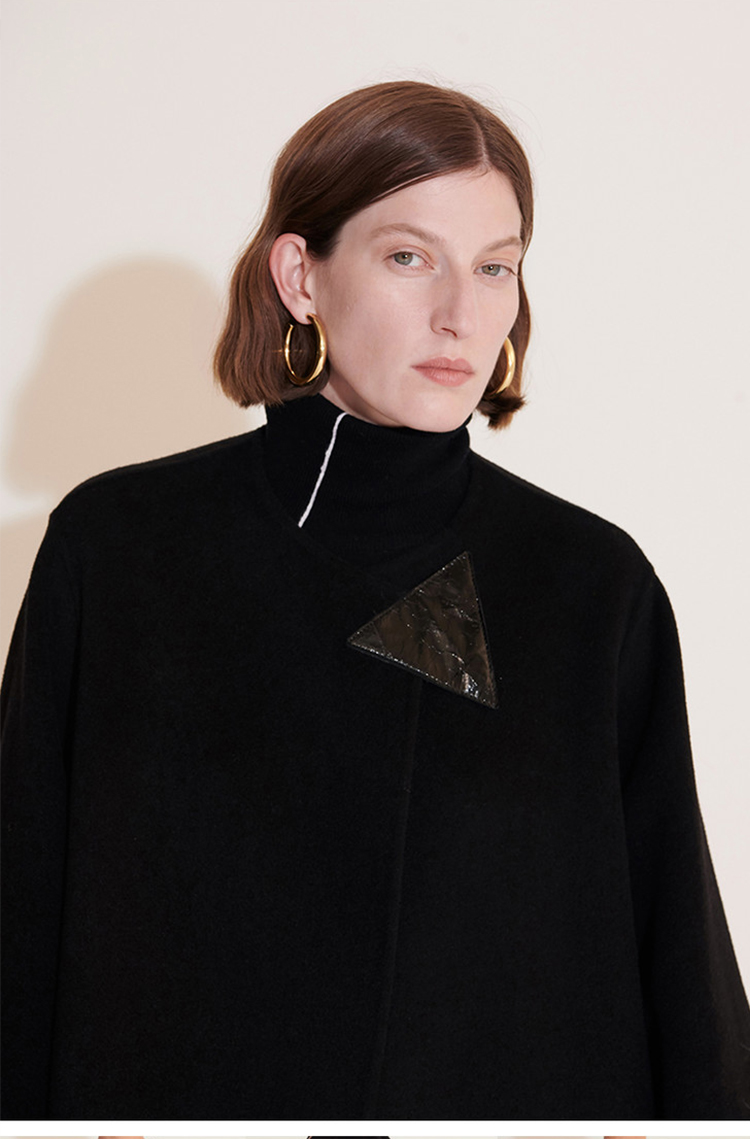 HIDEMI 几何三角形拼皮美利奴羊毛廓形大衣 长款/短款