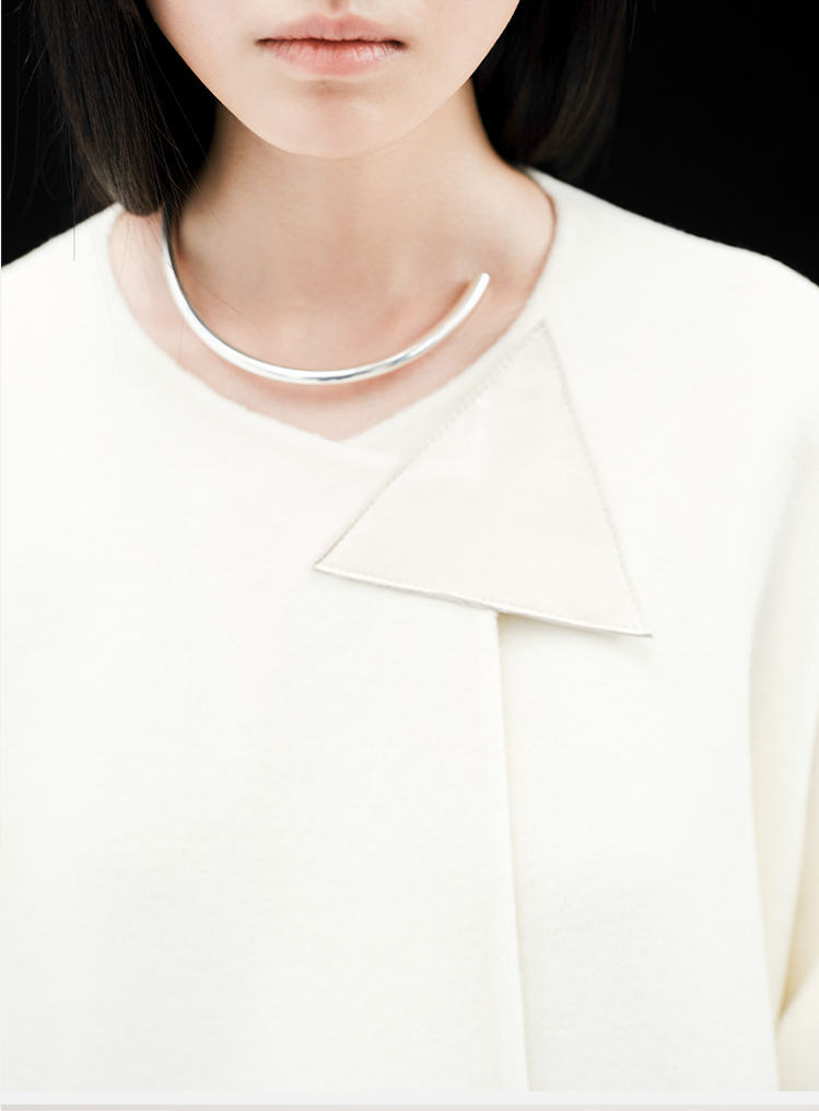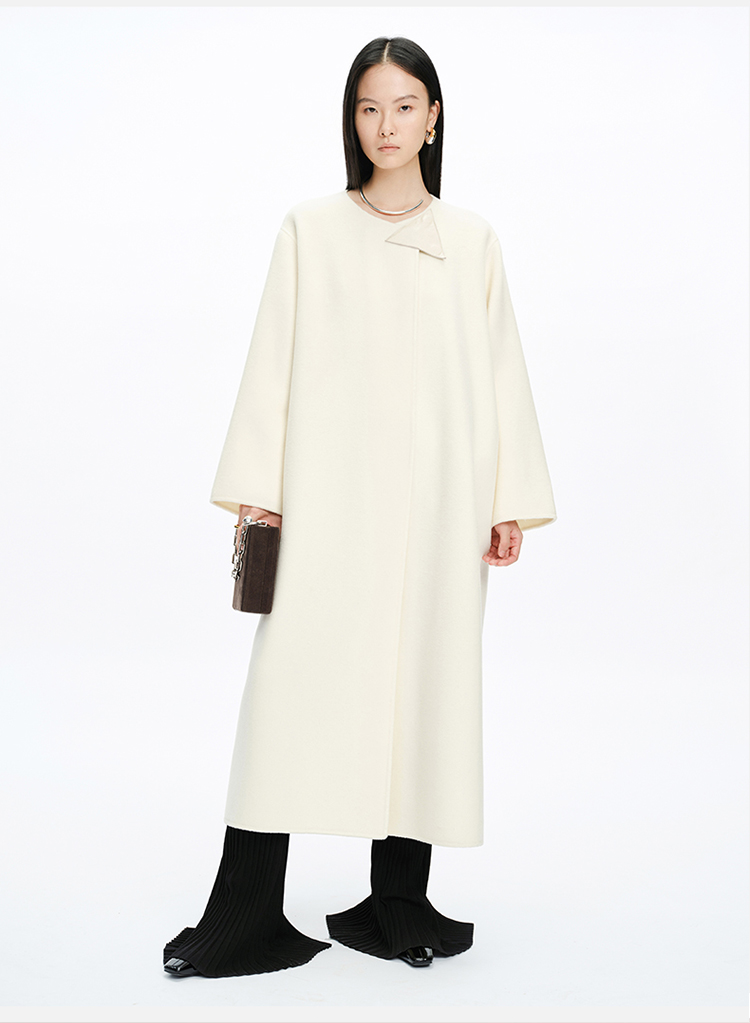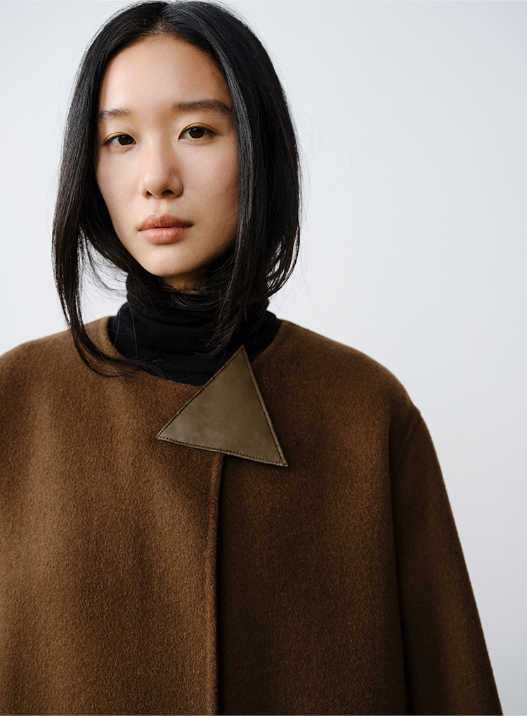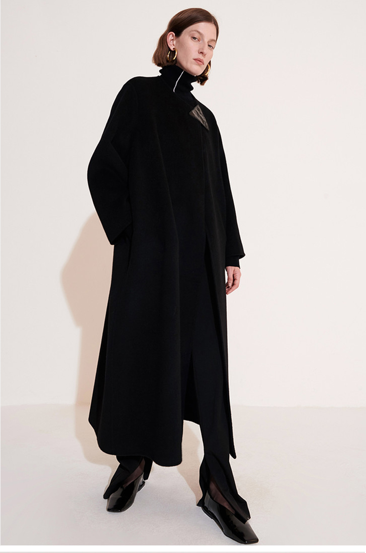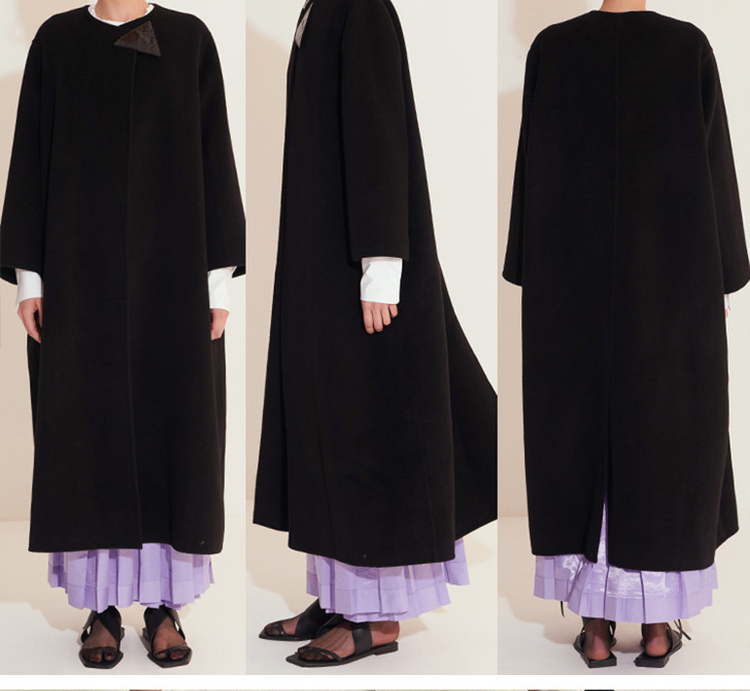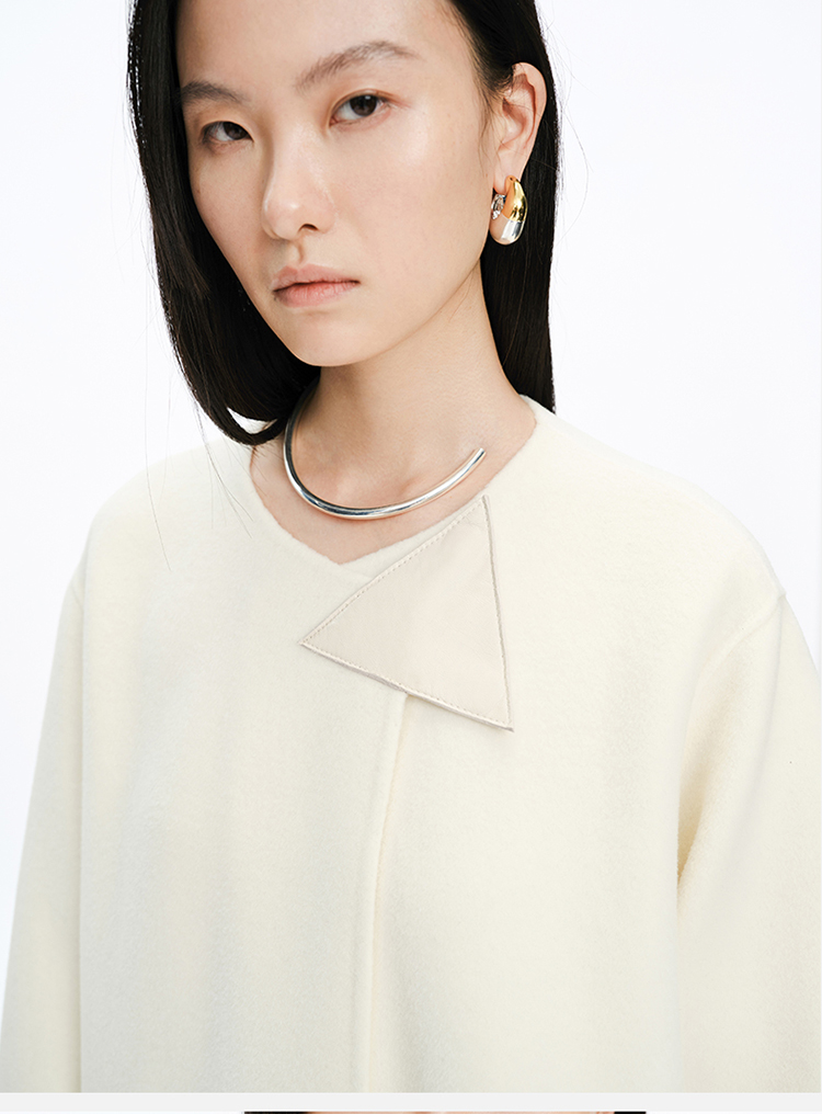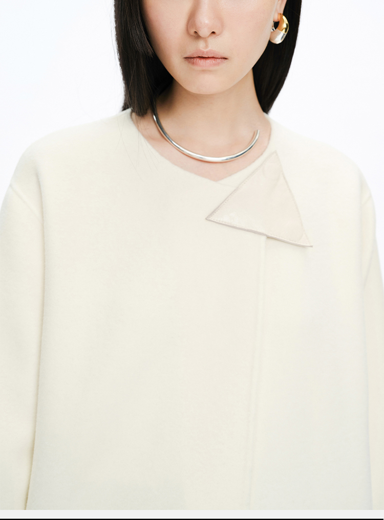 HIDEMI 几何三角形拼皮美利奴羊毛廓形大衣 长款/短款