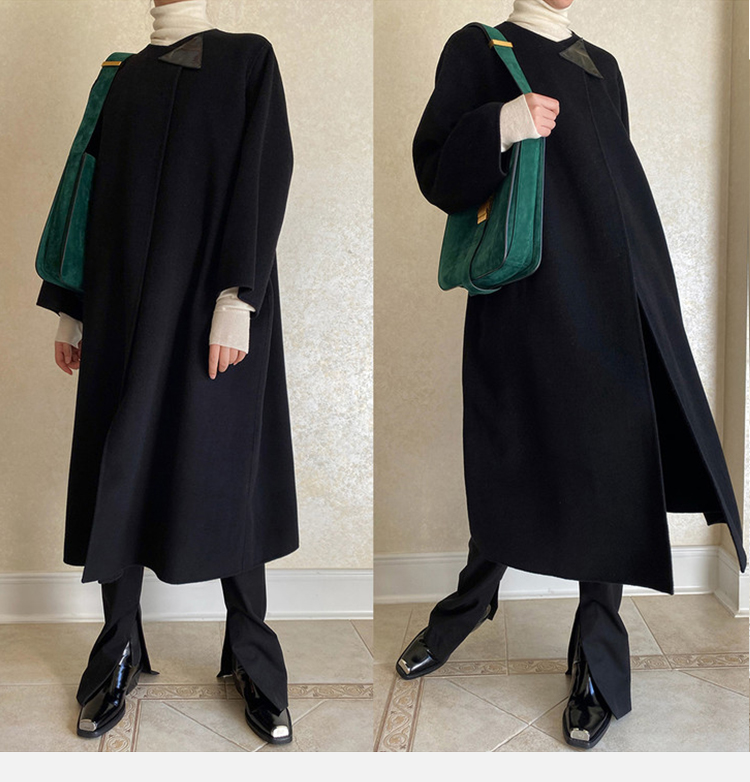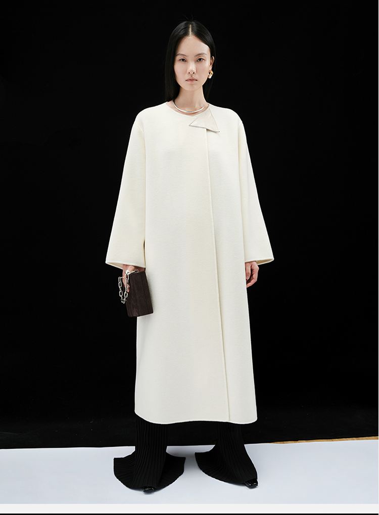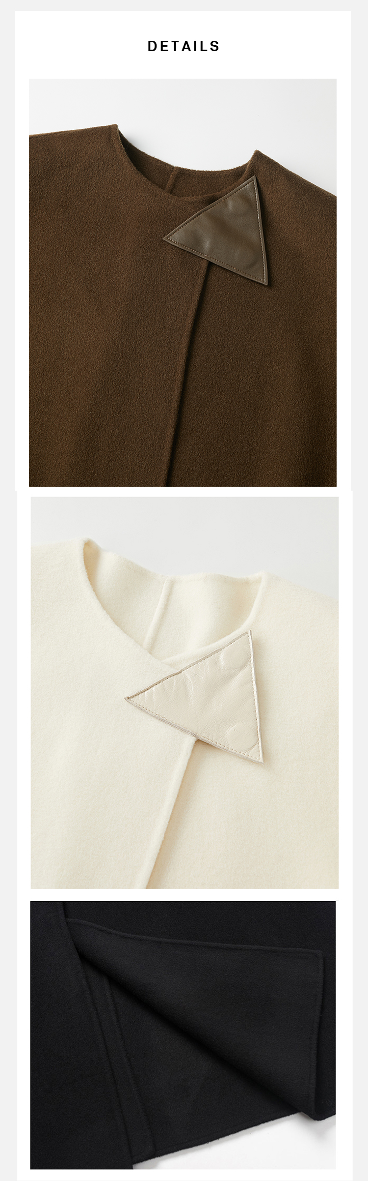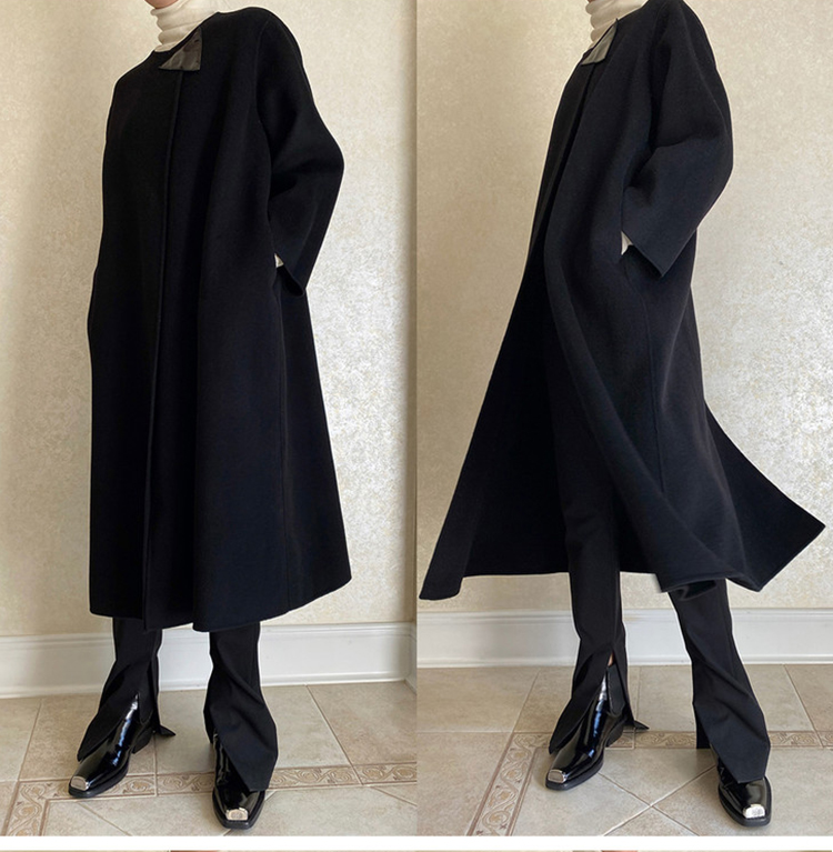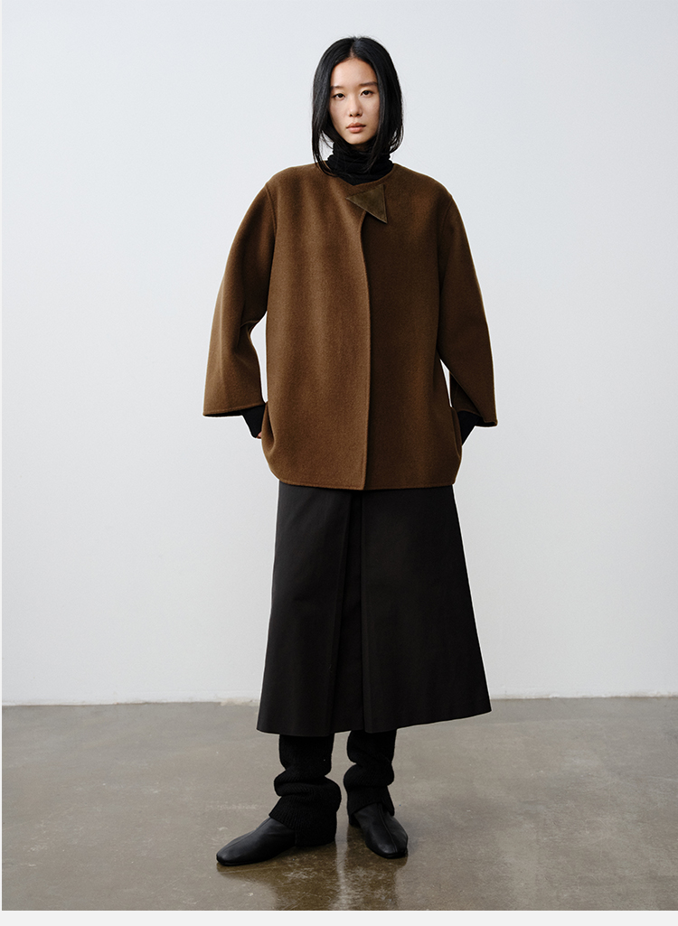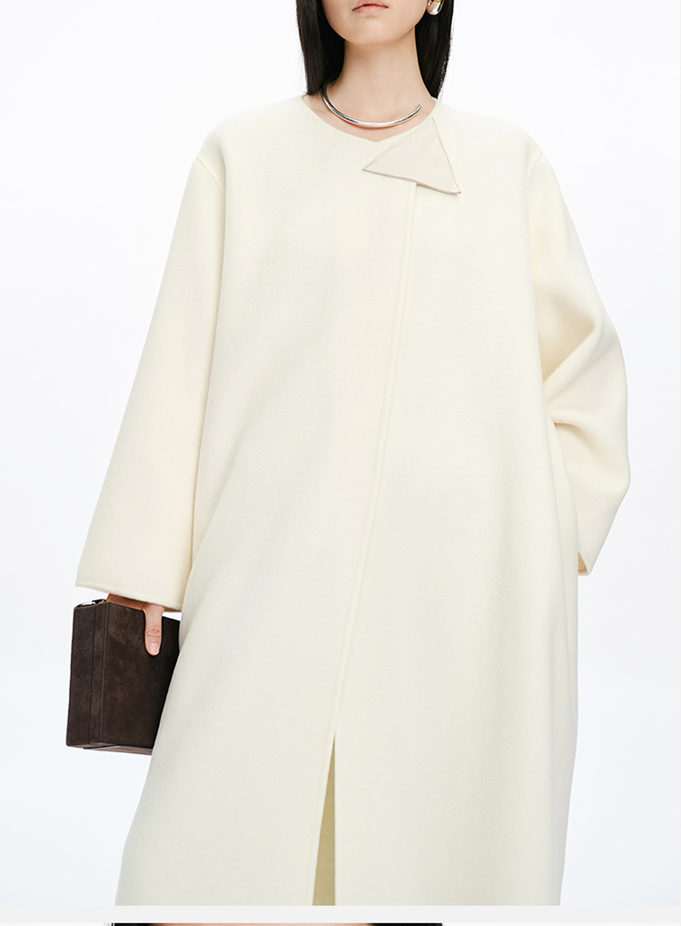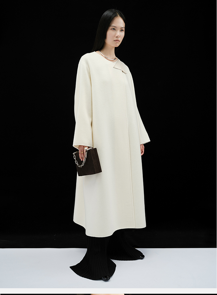 HIDEMI 几何三角形拼皮美利奴羊毛廓形大衣 长款/短款