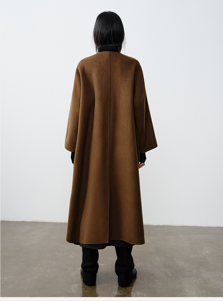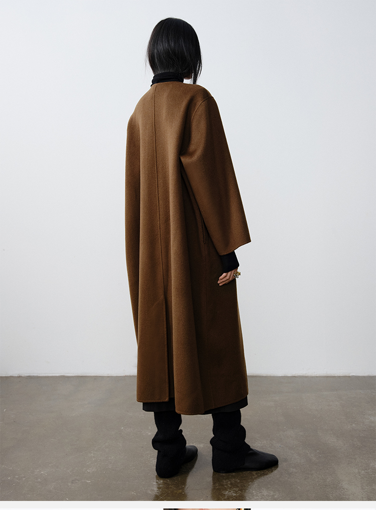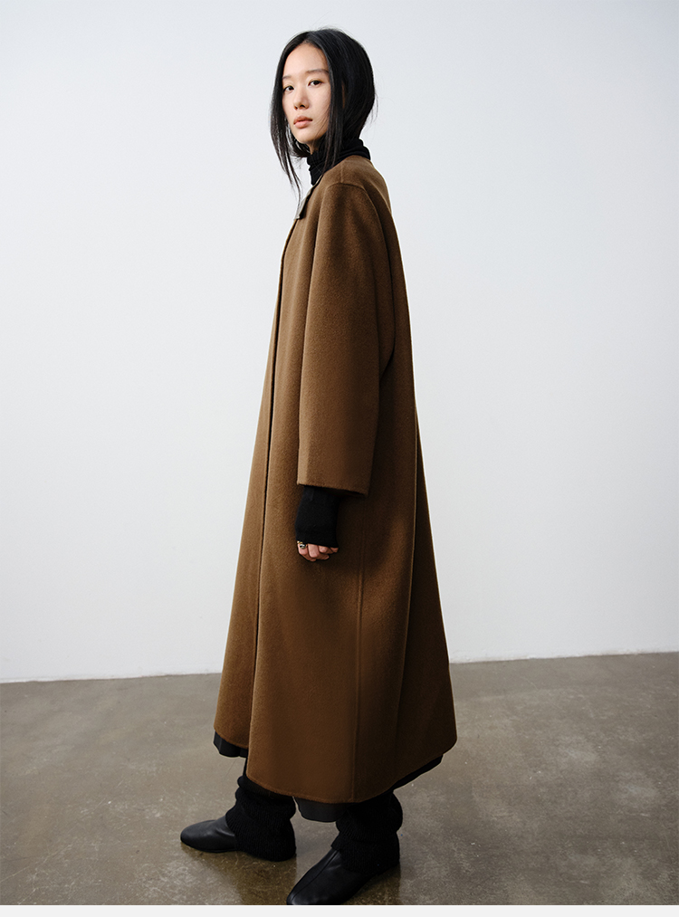 HIDEMI小羊皮抽绳设计感厚款大衣