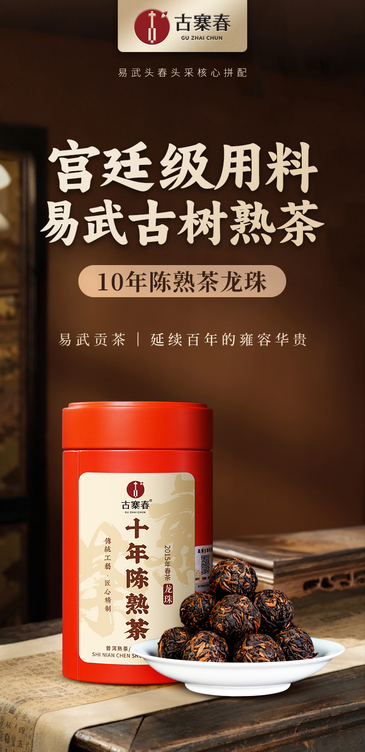 【十年陈熟茶龙珠】宫廷级用料2015年头春古树料山间活泉水发酵200克/罐,拍5发6拍20发25