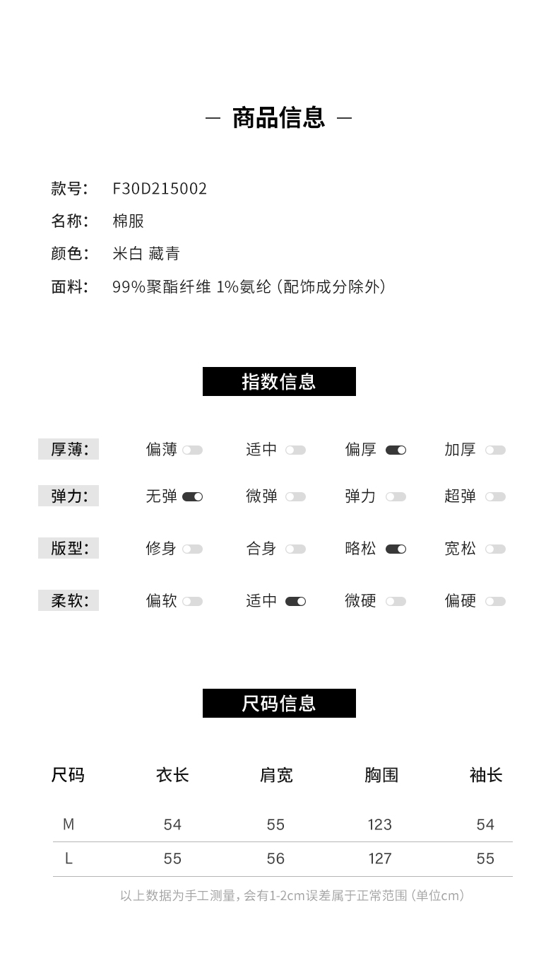 【撞色拼接】阿菁娜奶油派夹棉时尚宽松外套F30D215002
