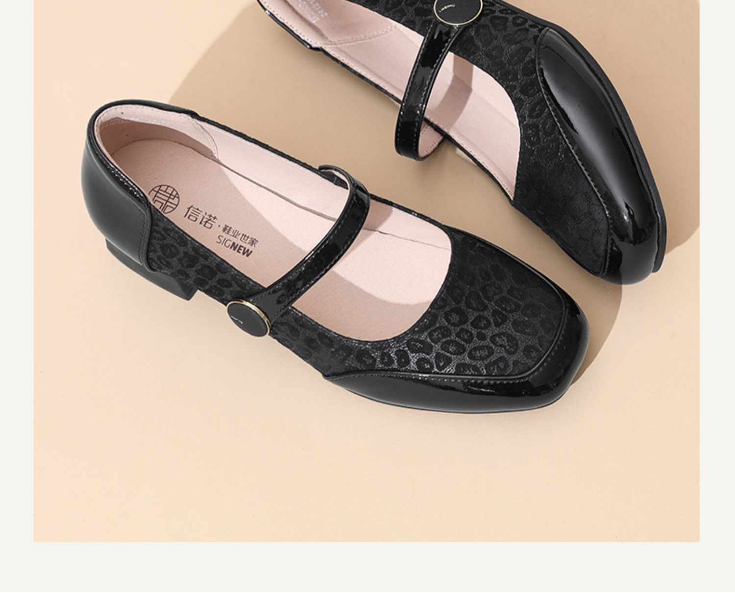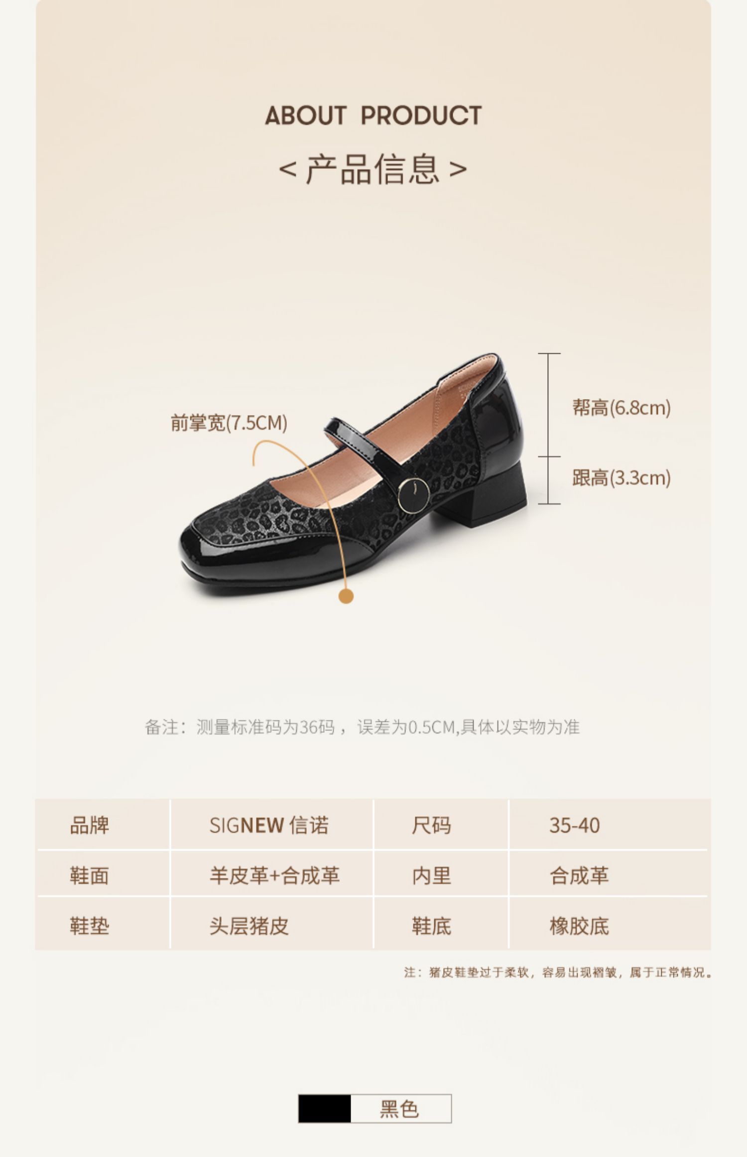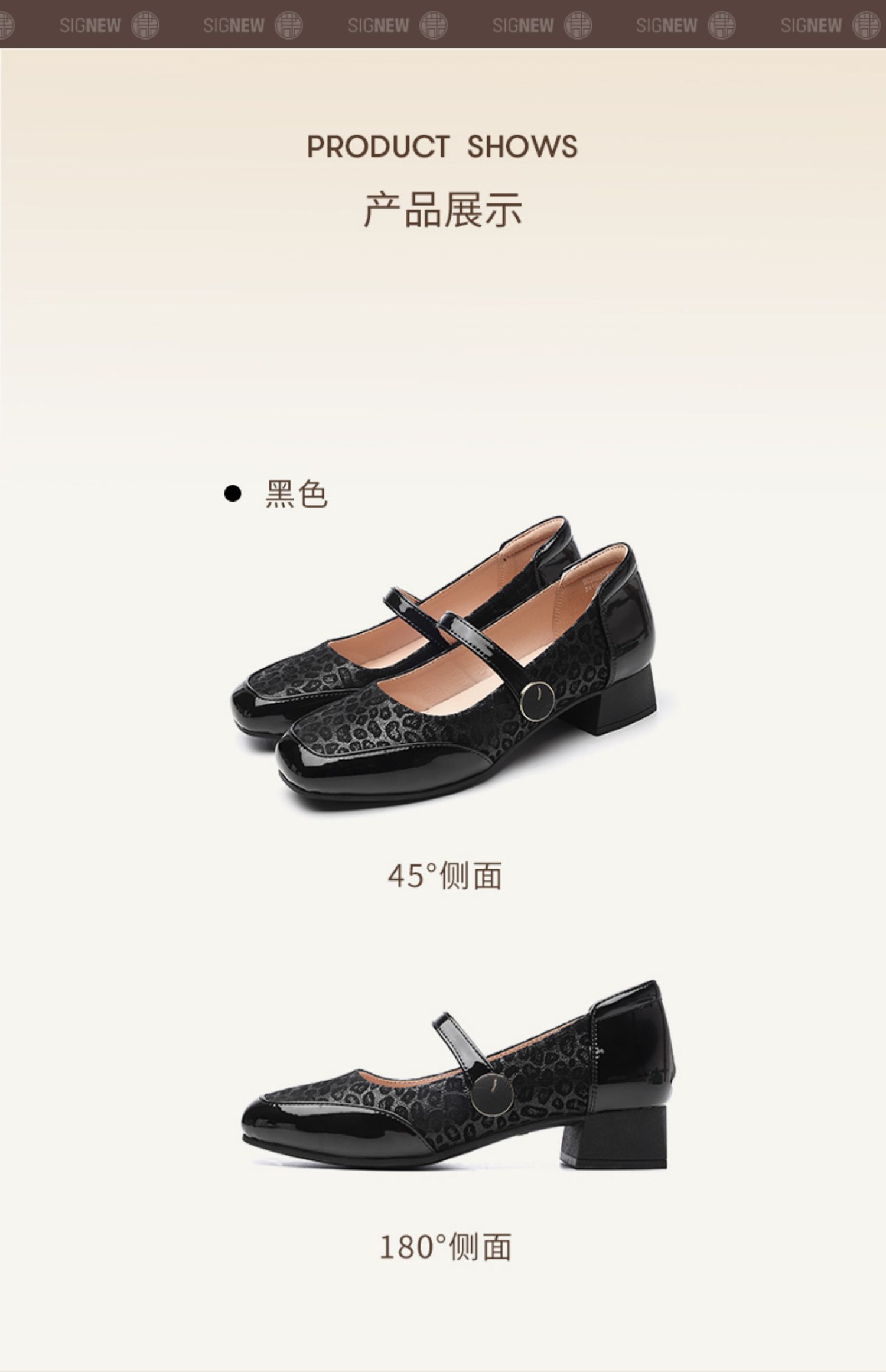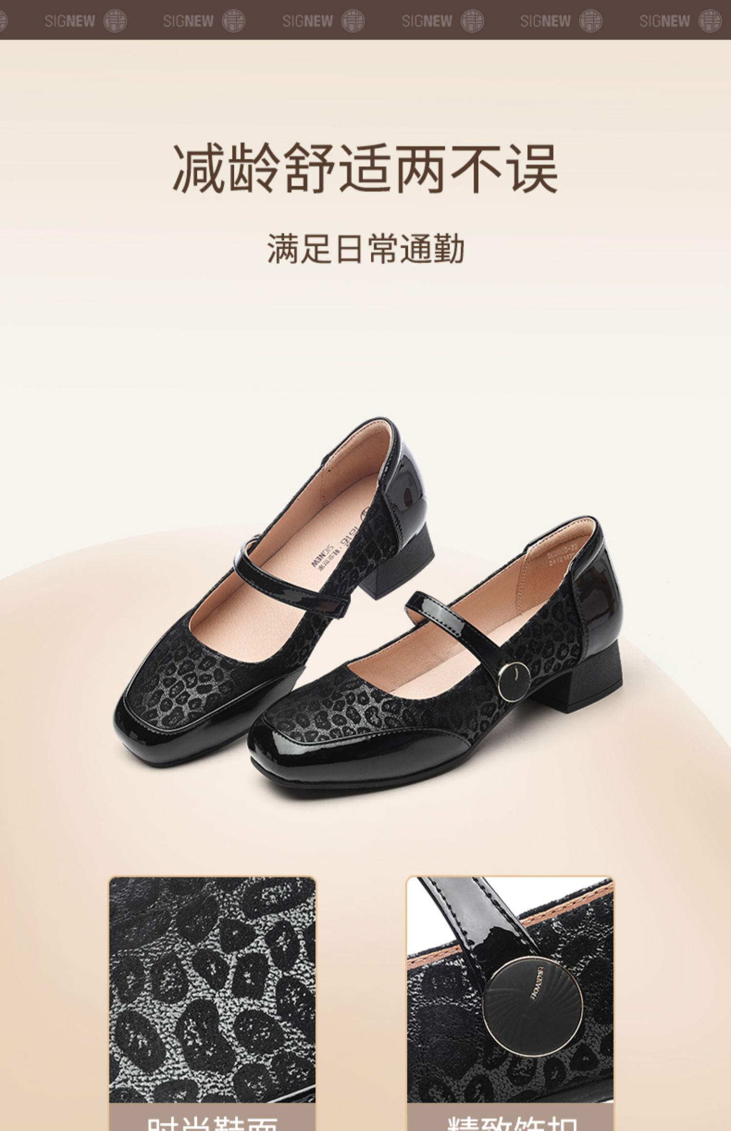 信诺舒适软底女鞋一字带玛丽珍鞋2025春季新款法式妈妈鞋粗跟皮鞋5C5009-22