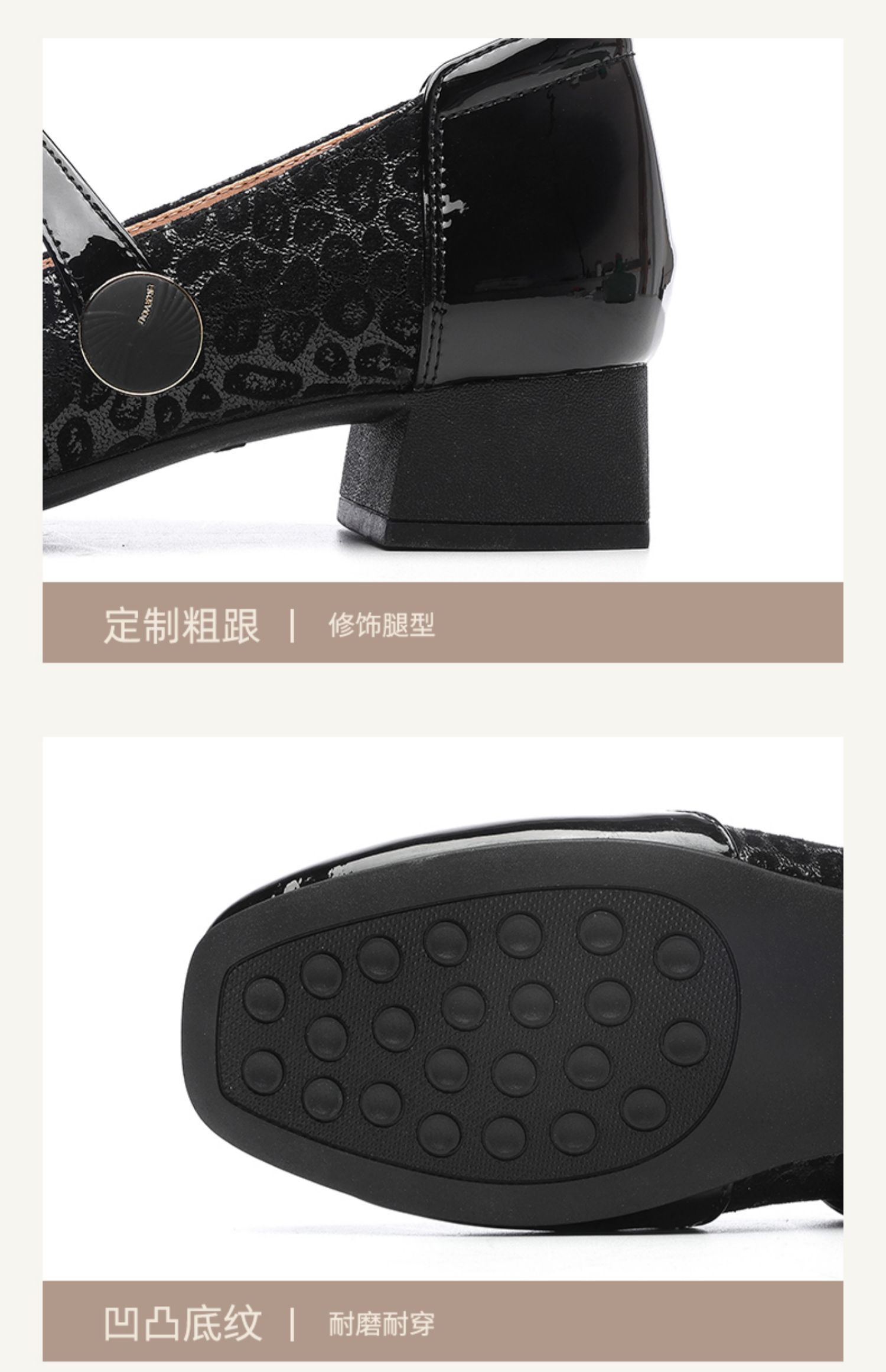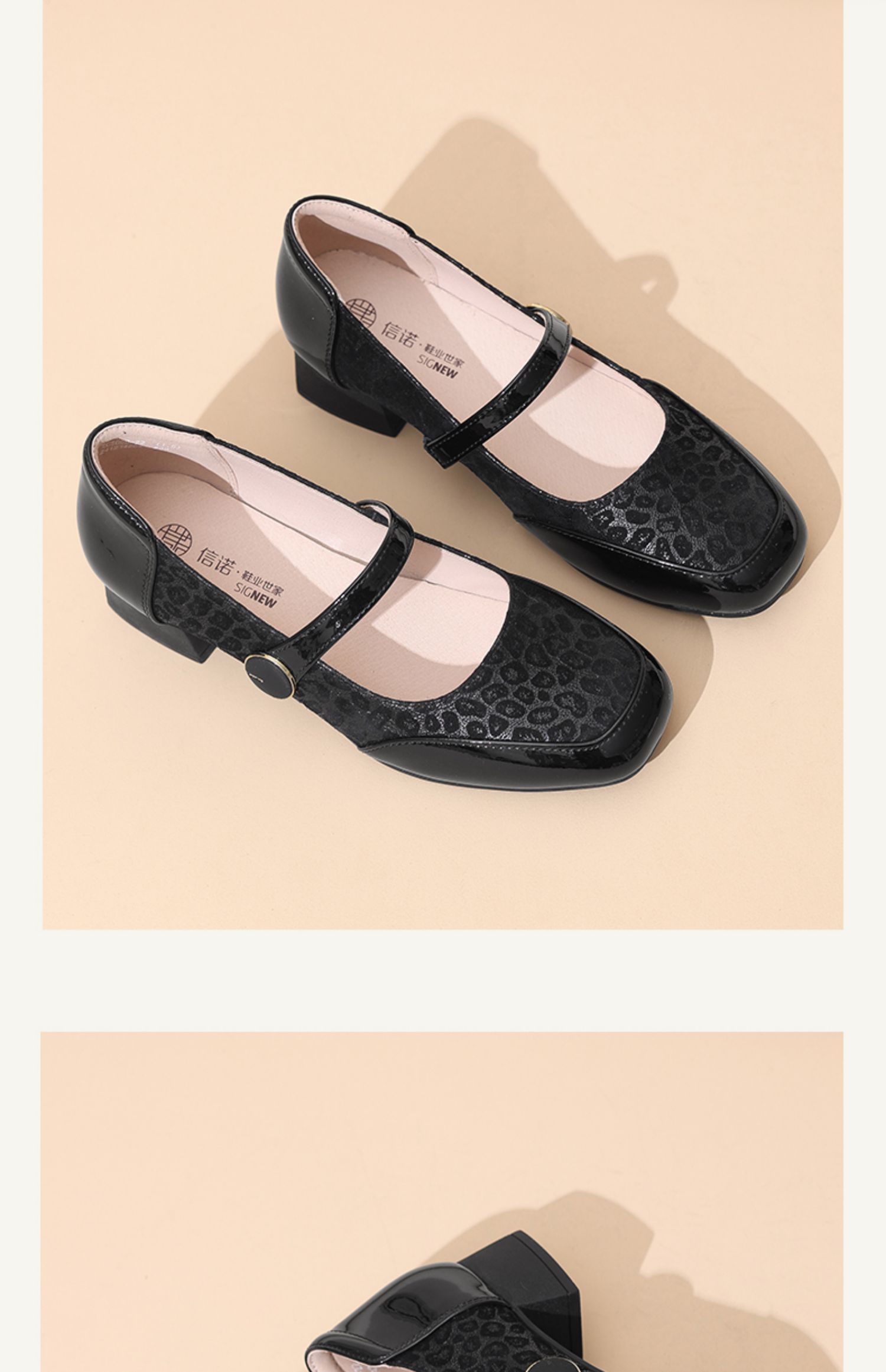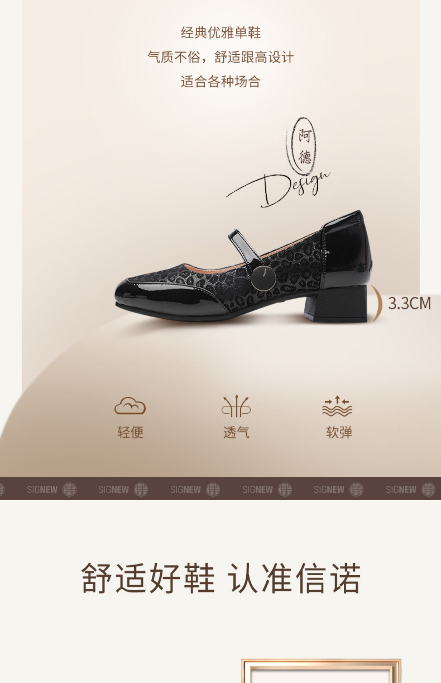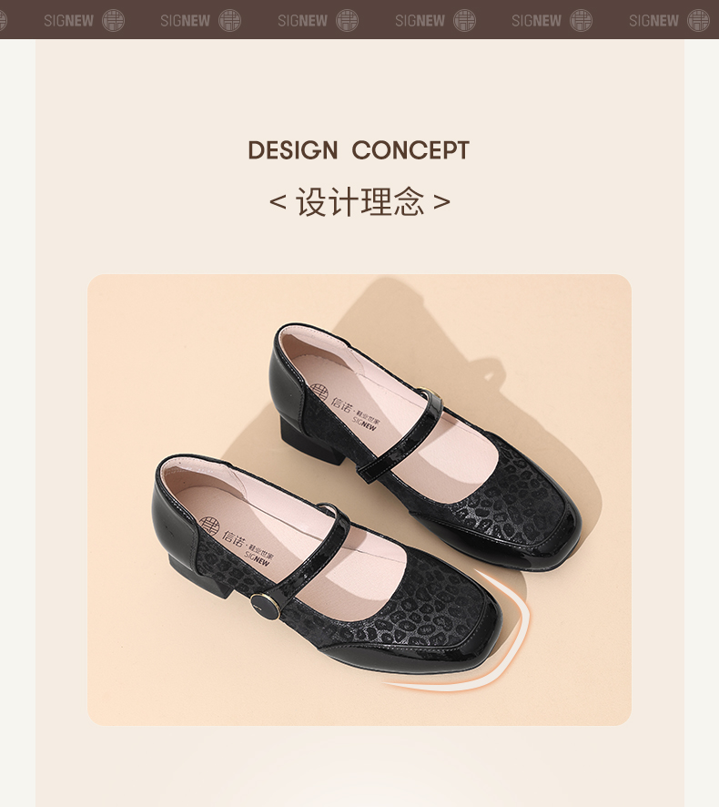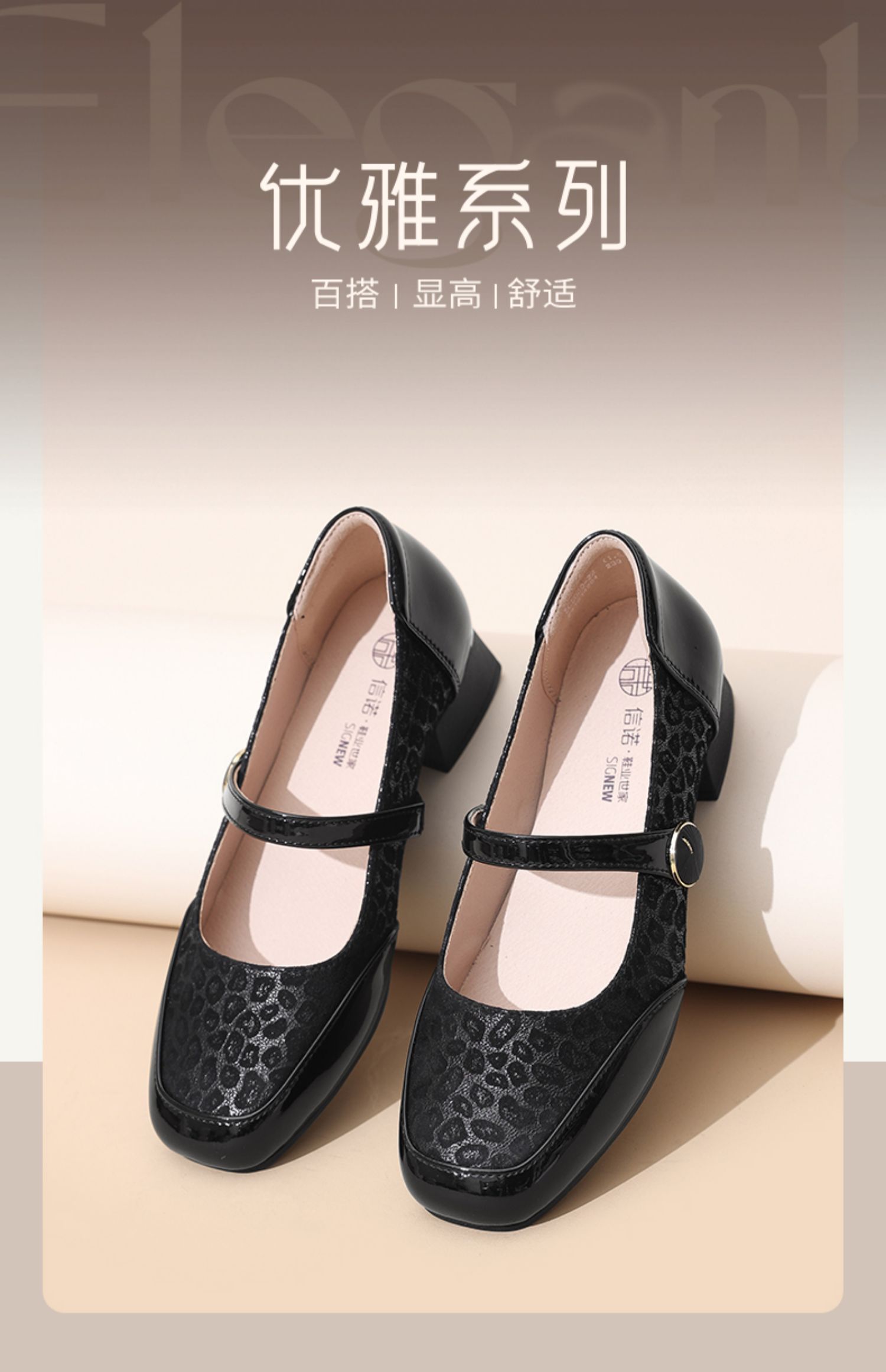 信诺舒适软底女鞋一字带玛丽珍鞋2025春季新款法式妈妈鞋粗跟皮鞋5C5009-22