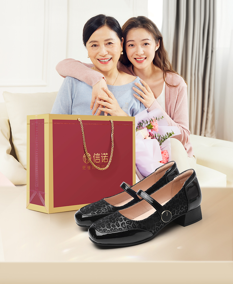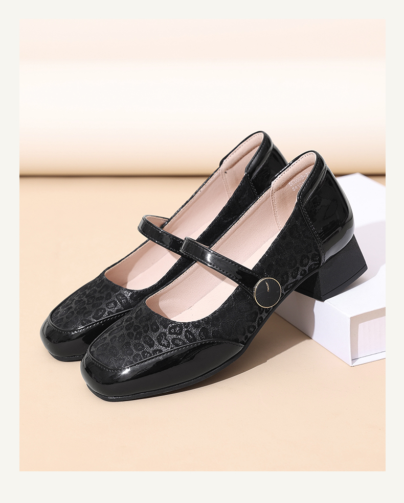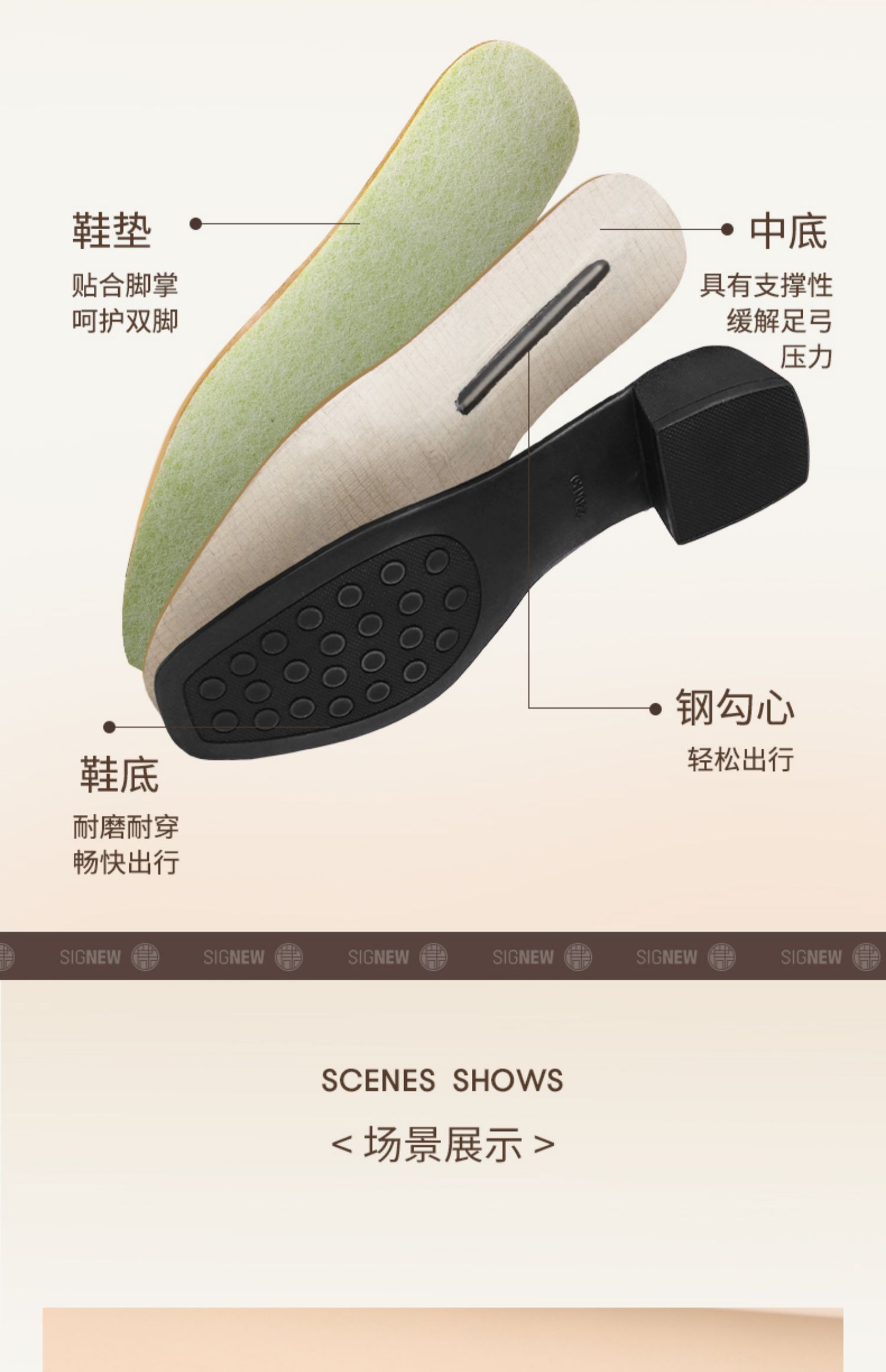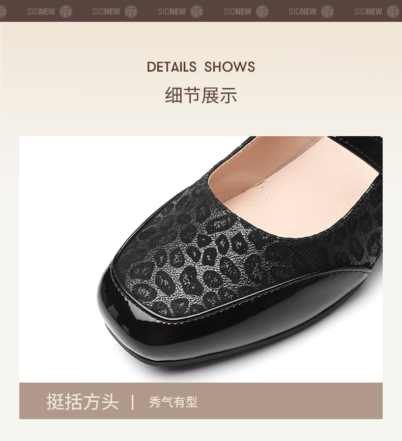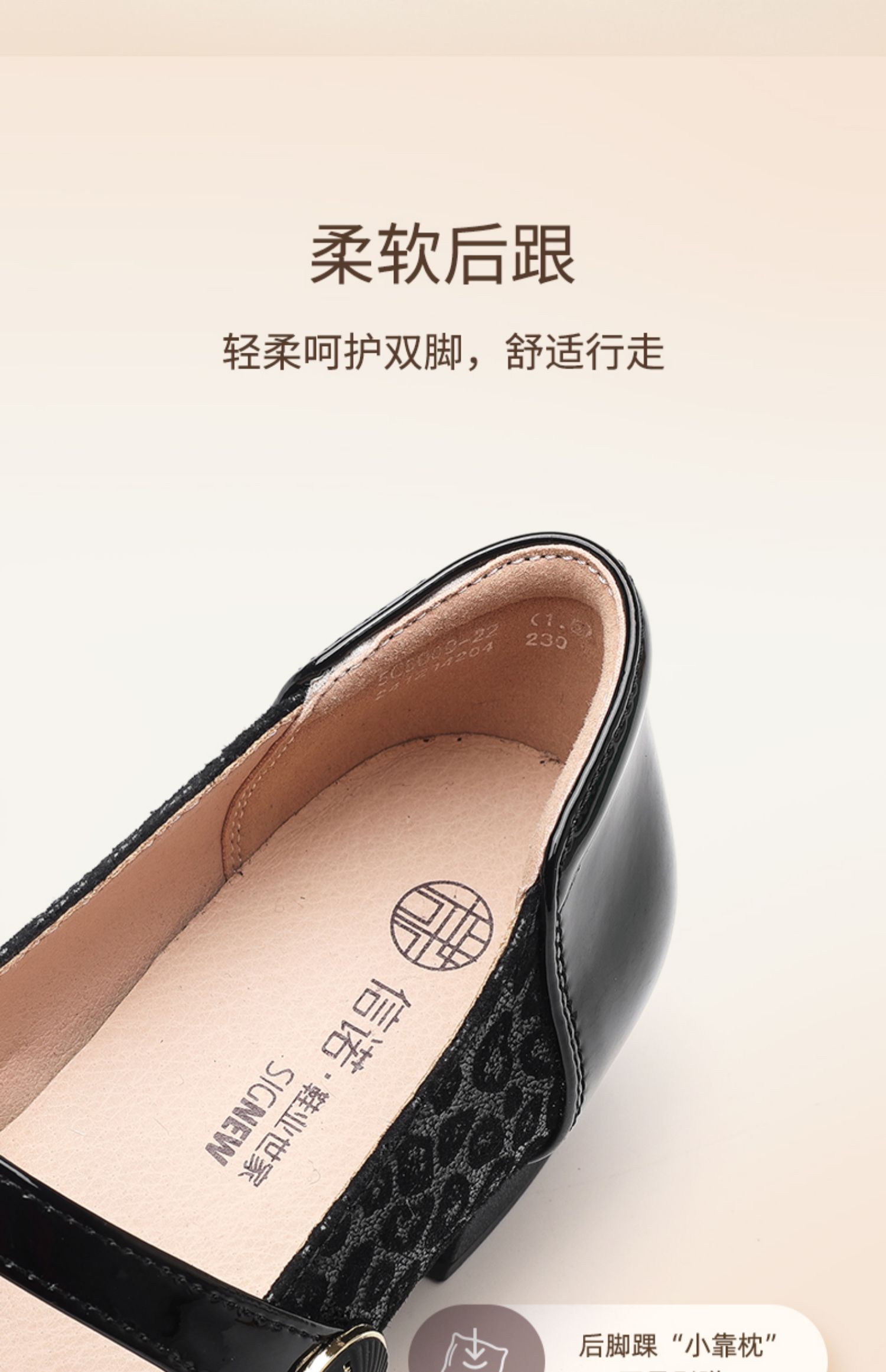 信诺舒适软底女鞋一字带玛丽珍鞋2025春季新款法式妈妈鞋粗跟皮鞋5C5009-22