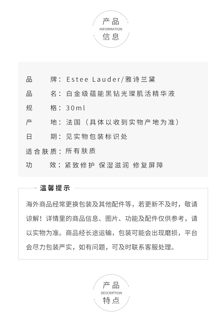 Estee Lauder/雅诗兰黛白金黑钻黑松露精华30ml 面部精华美白提亮修护紧致【CDF】