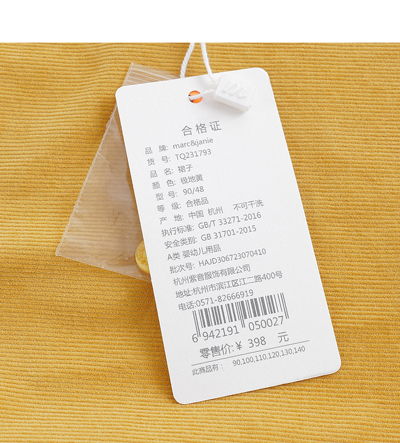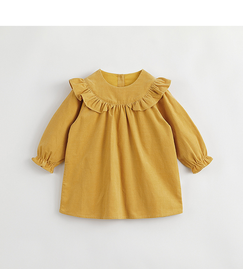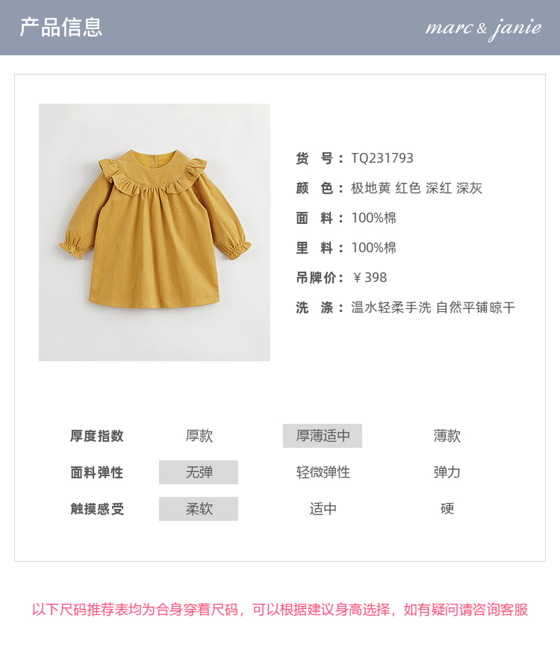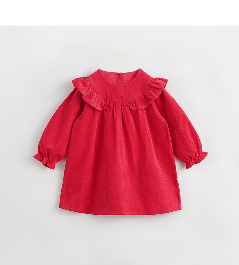 马克珍妮秋冬新款 女童花边领灯芯绒连衣裙 儿童裙子231793