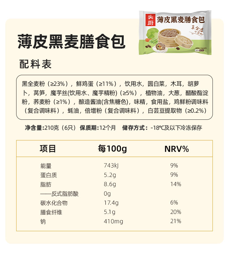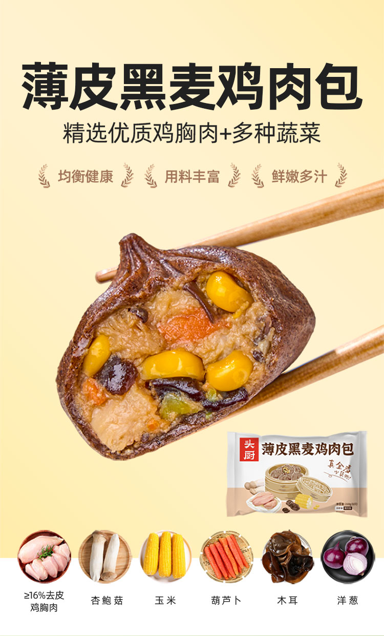 薄皮黑麦鸡肉包*1袋装(210G/6只/袋)