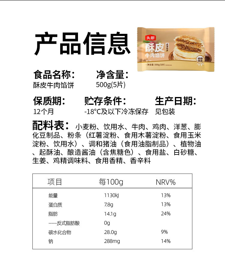 酥皮牛肉馅饼*1袋装(500G/5片/袋)