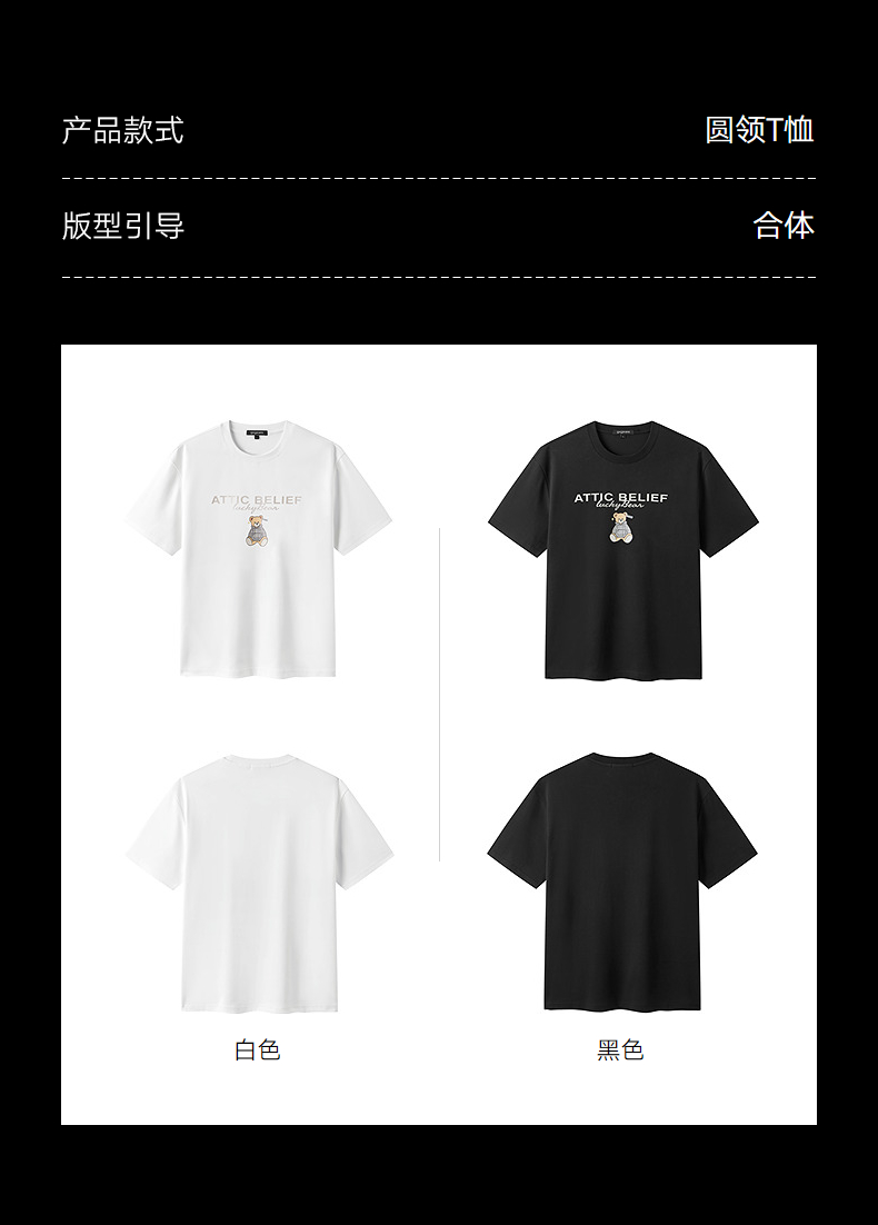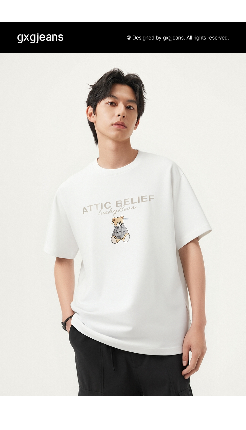 gxg.jeans男装 多色小熊印花时尚简约圆领短袖T恤男生 25年夏热卖