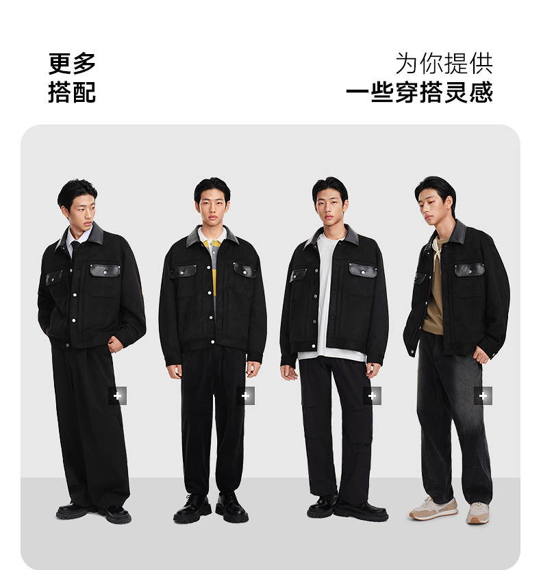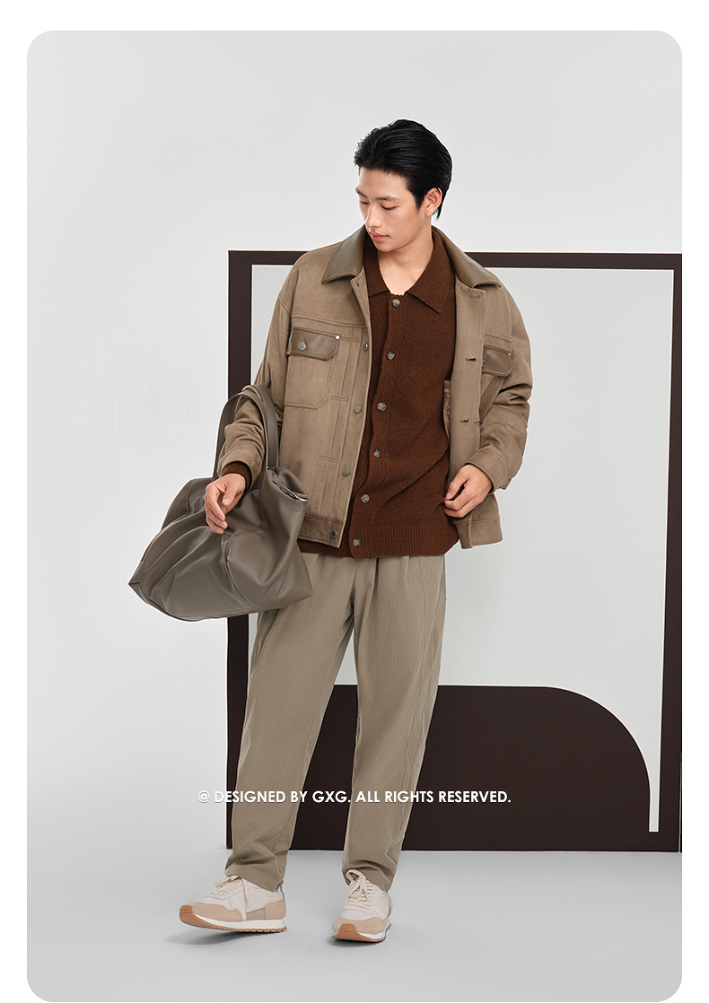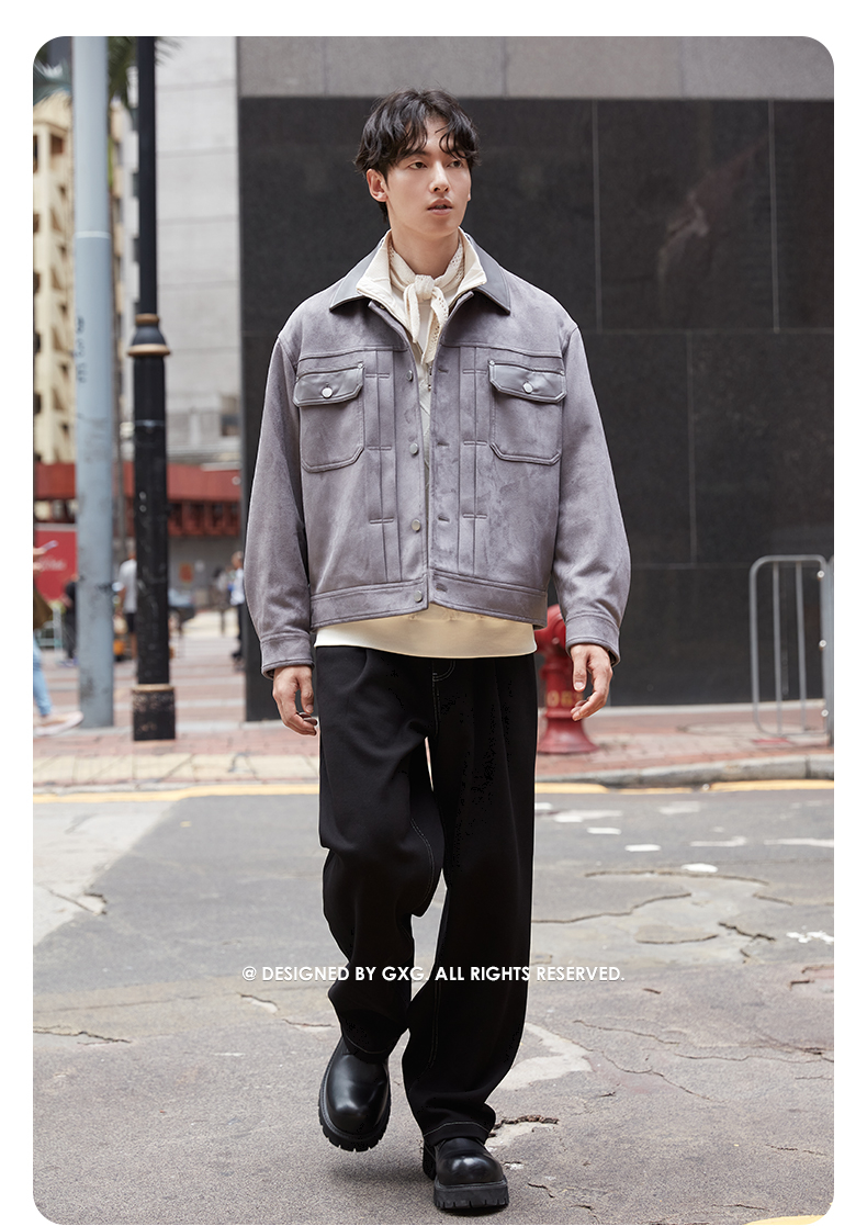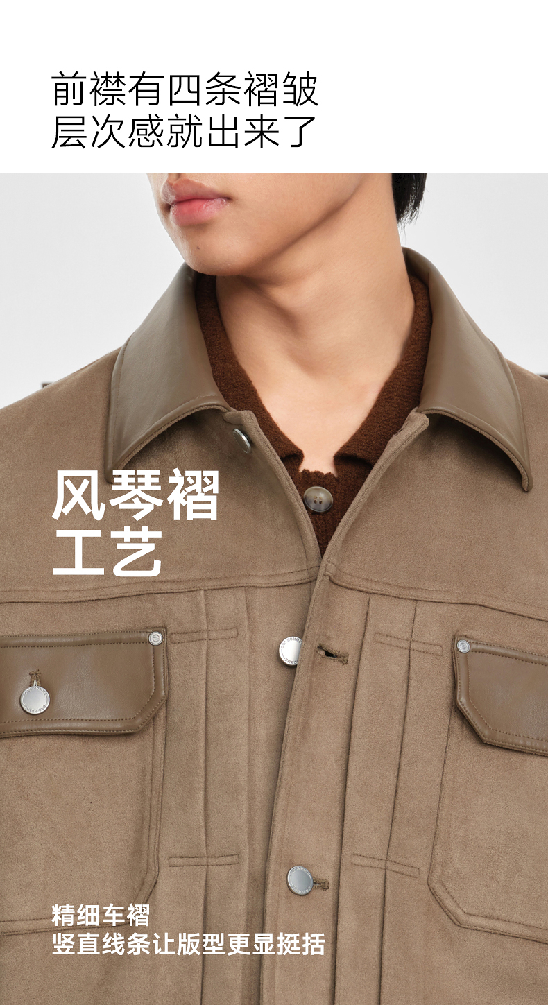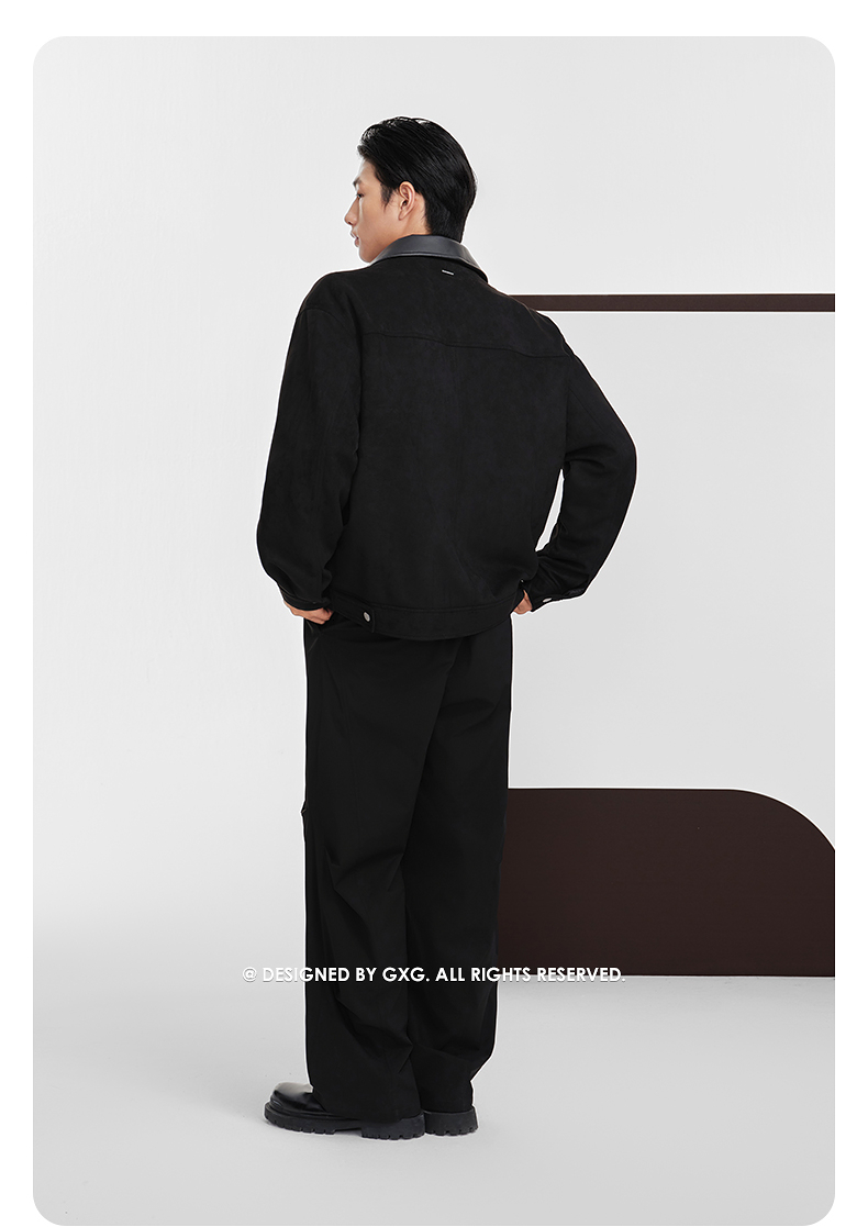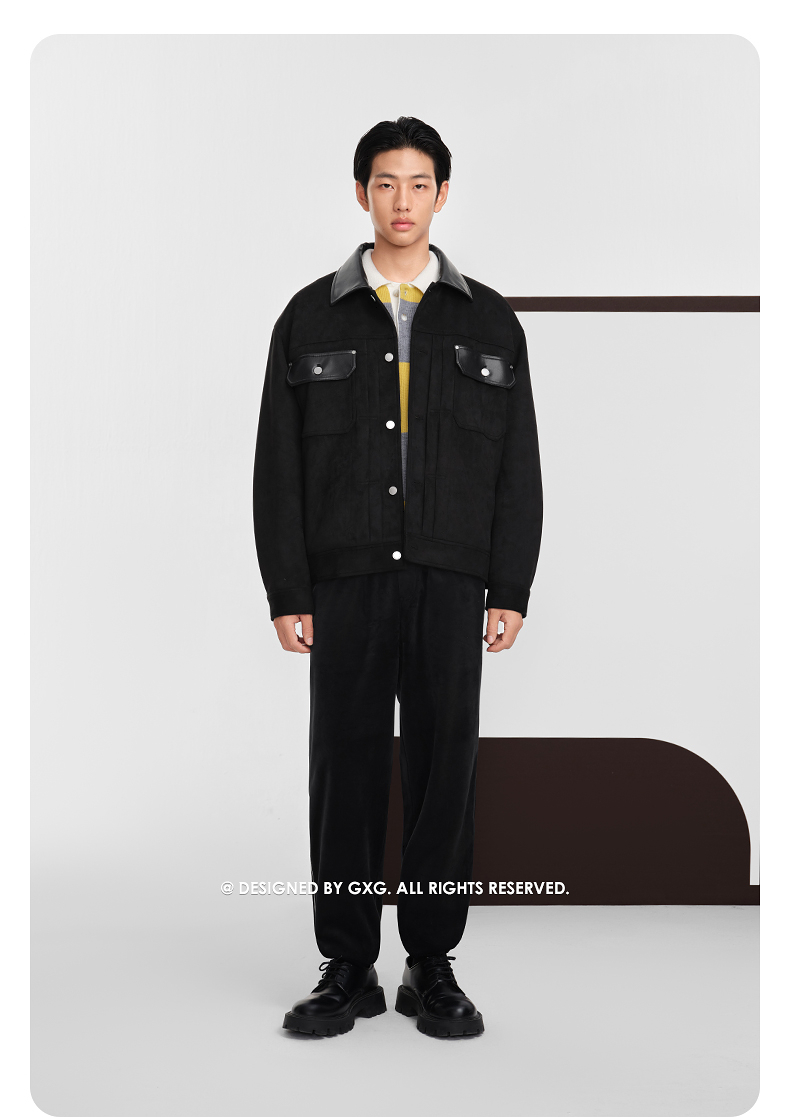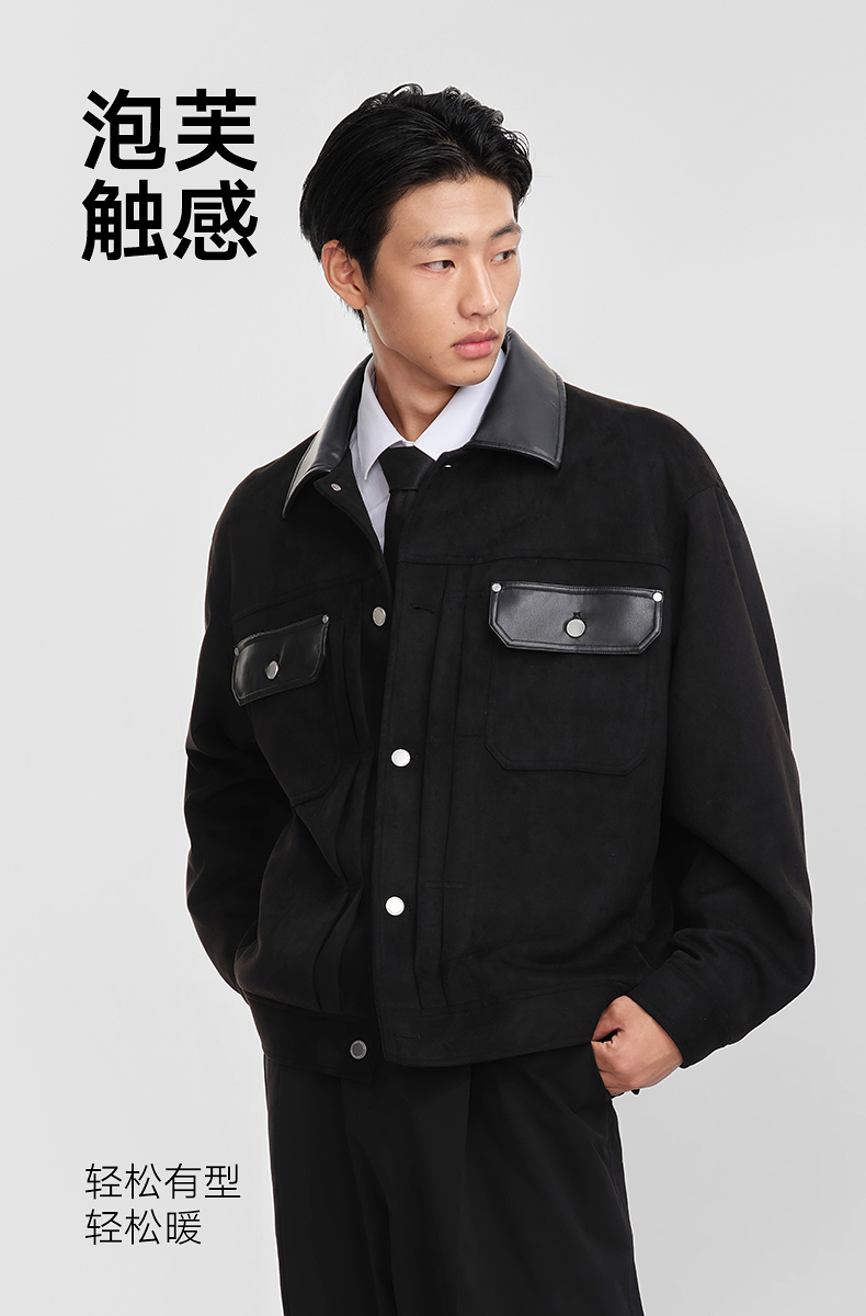 GXG男装 pu皮拼接仿麂皮夹克男工装设计感夹克休闲外套24秋季热卖