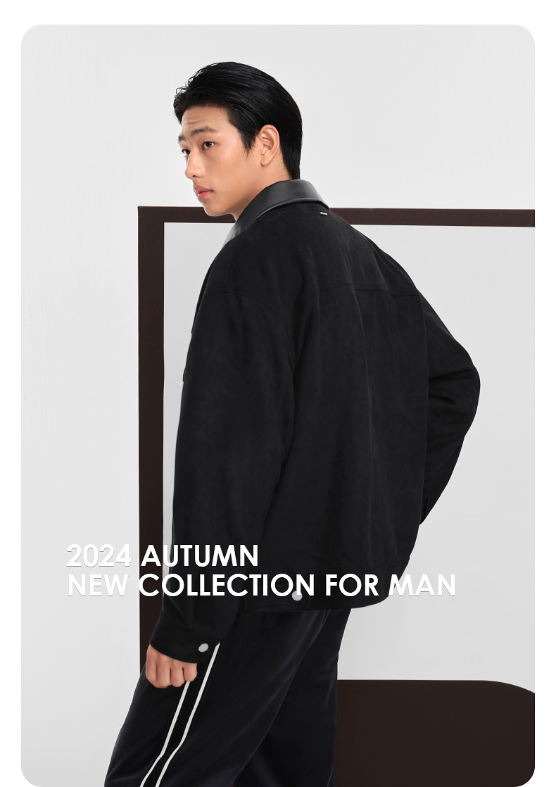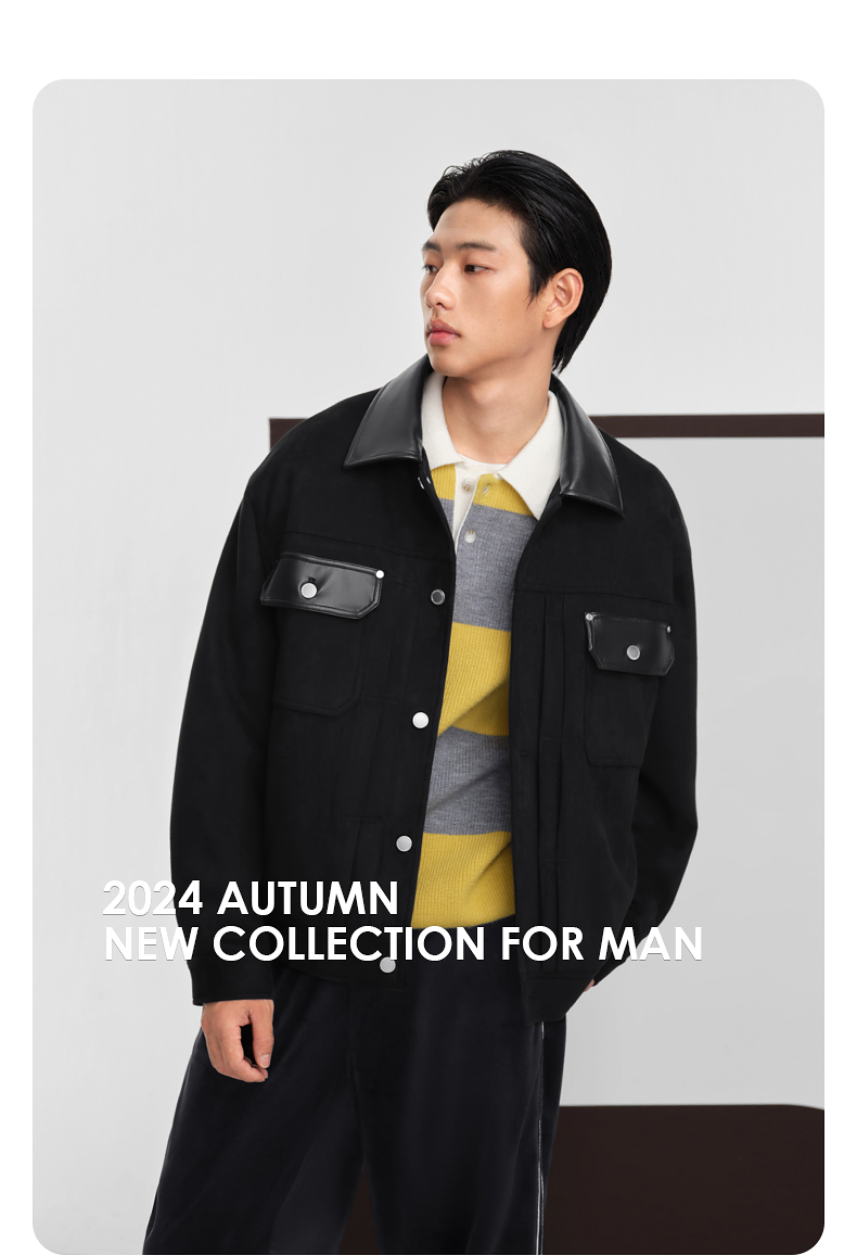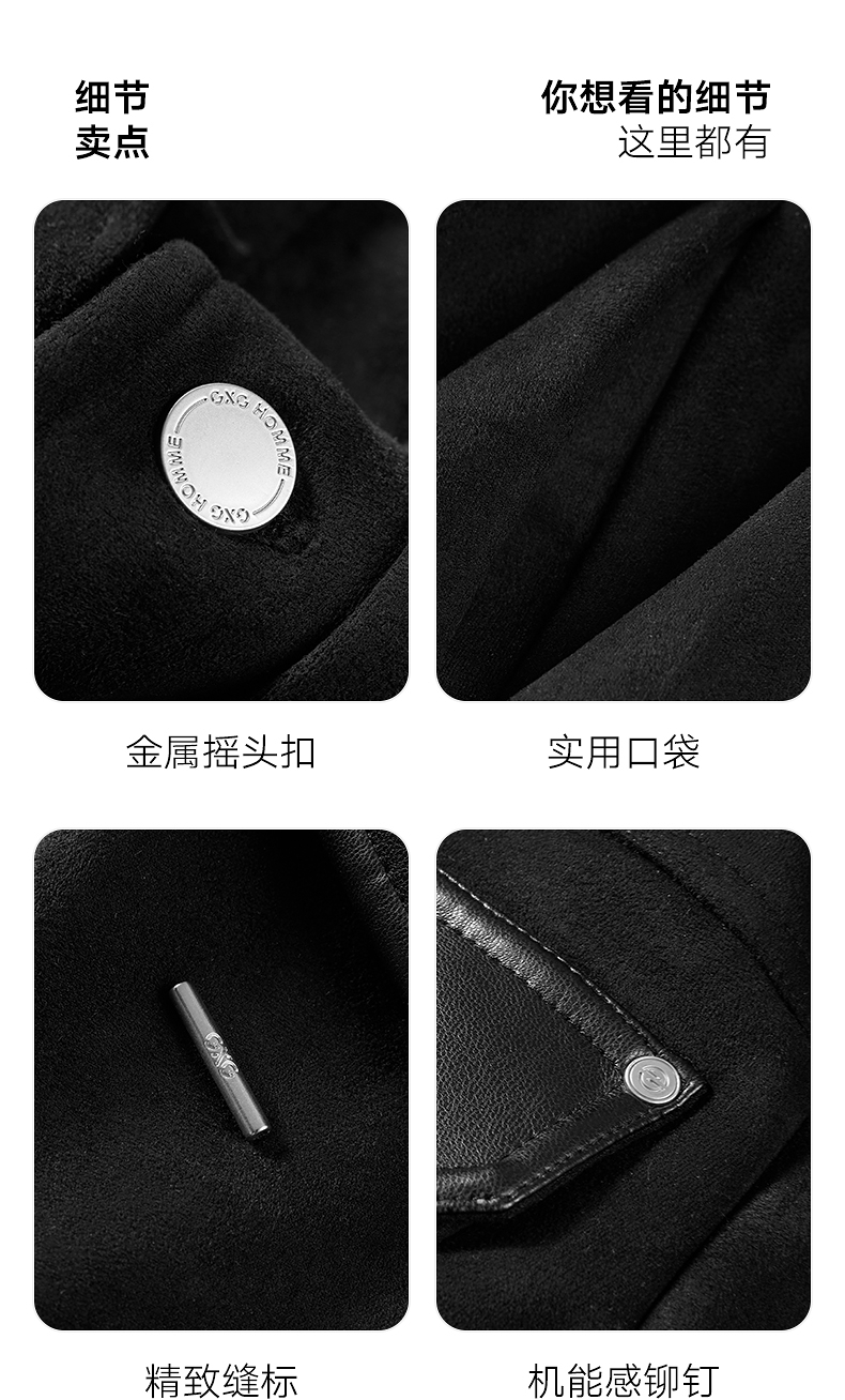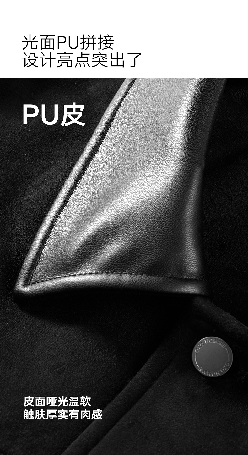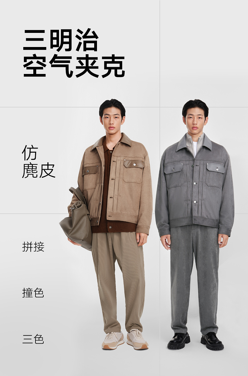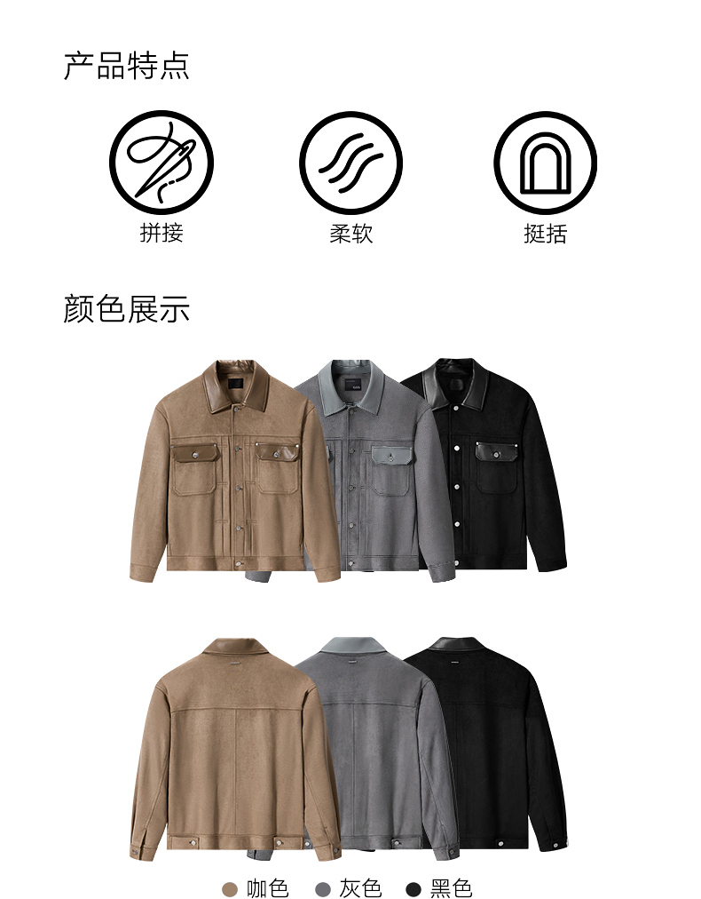 GXG男装 pu皮拼接仿麂皮夹克男工装设计感夹克休闲外套24秋季热卖